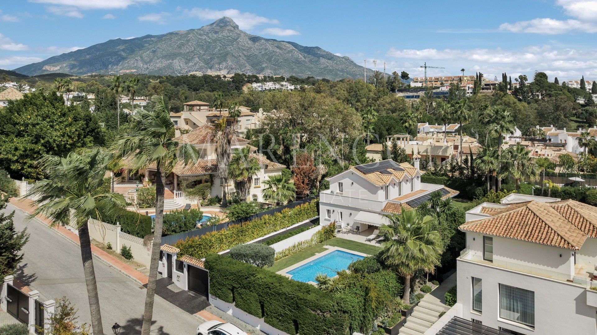 Im Herzen des prestigeträchtigen Golf Valley bietet diese elegante Villa in Nueva Andalucía, Marbella eine Lebensweise, die von Licht, Privatsphäre und einer natürlichen Verbindung zwischen Innen- und Außenbereichen geprägt ist. Die vollständig renovierte Immobilie vermittelt eine zeitgenössische und ruhige Ästhetik, mit klaren Linien, großen Fenstern und einer Atmosphäre, die dafür geschaffen wurde, den mediterranen Lebensstil das ganze Jahr über zu genießen. Vom ersten Moment an lädt sie dazu ein, sich entspannte Tage am Garten und am Swimmingpool vorzustellen, in einer der gefragtesten Wohnlagen Marbellas.