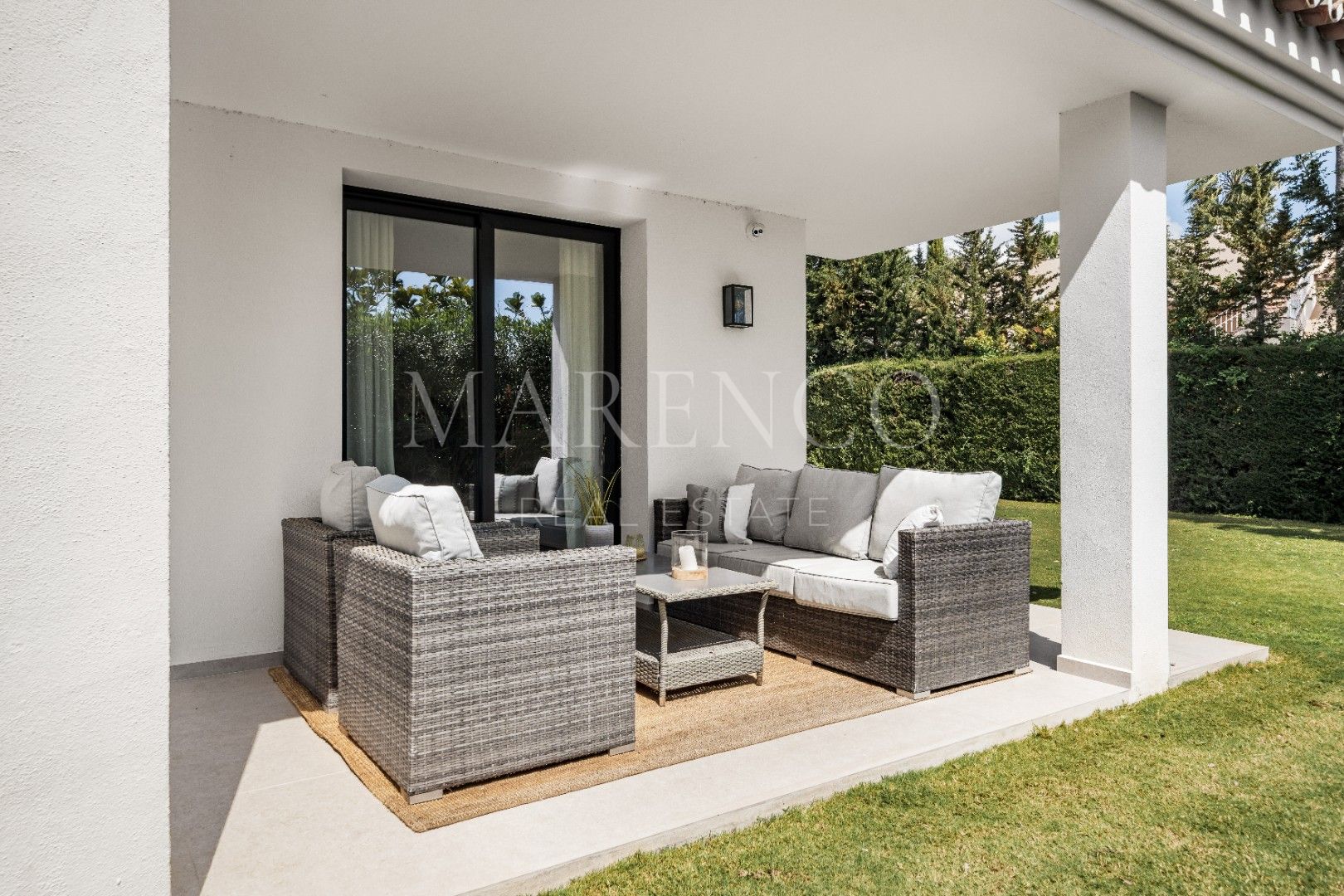 Im Außenbereich schaffen der private Garten und der Swimmingpool ein intimes und angenehmes Ambiente, ideal sowohl zum Abschalten als auch zum Empfangen von Gästen. Die renovierte Architektur in Verbindung mit dem fließenden Übergang zwischen den Innenräumen und den Terrassen verstärkt dieses Gefühl eines zeitgenössischen und einladenden Zuhauses, das bereit ist, Marbella zu jeder Jahreszeit zu genießen.