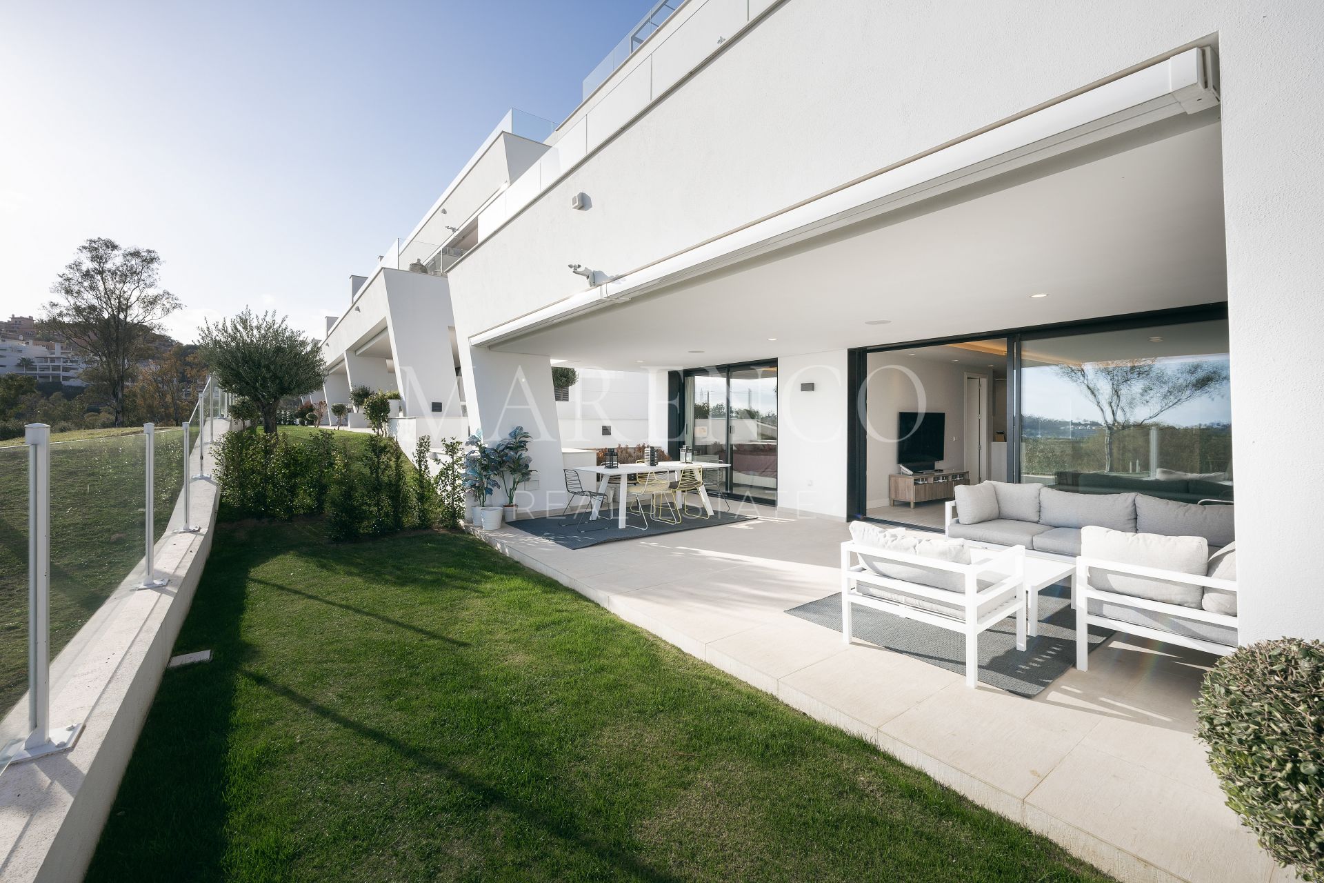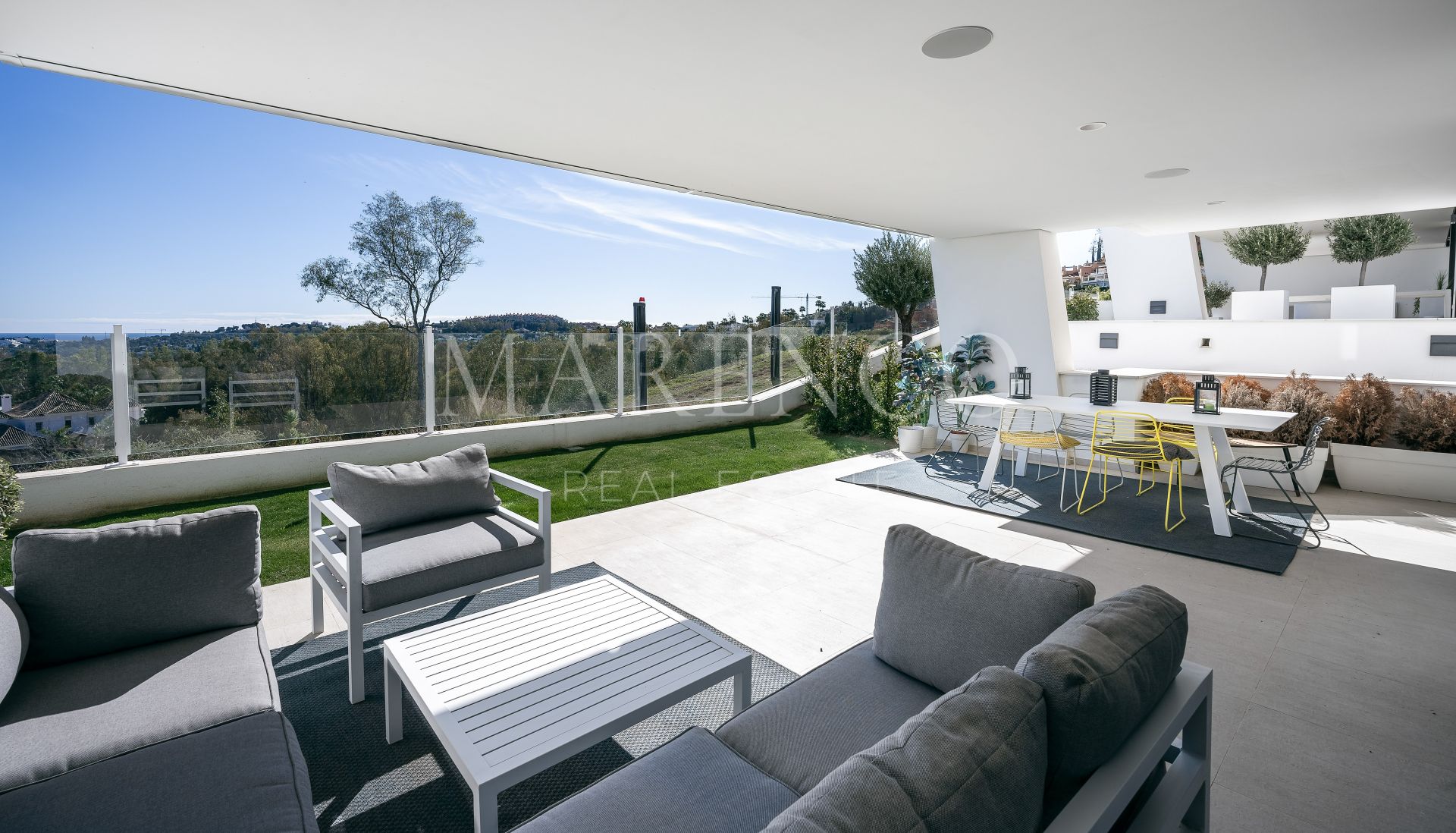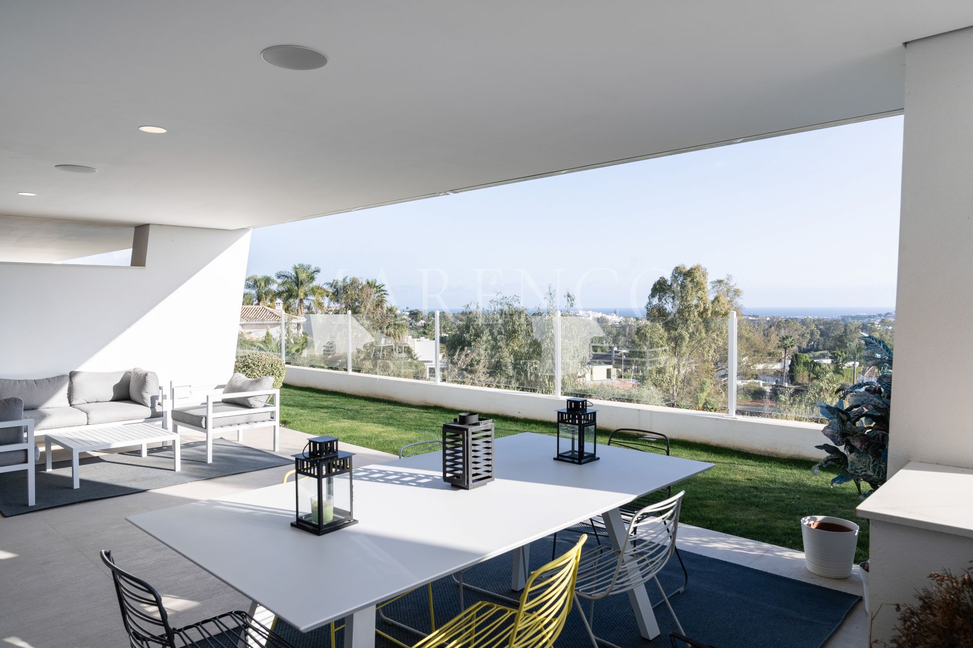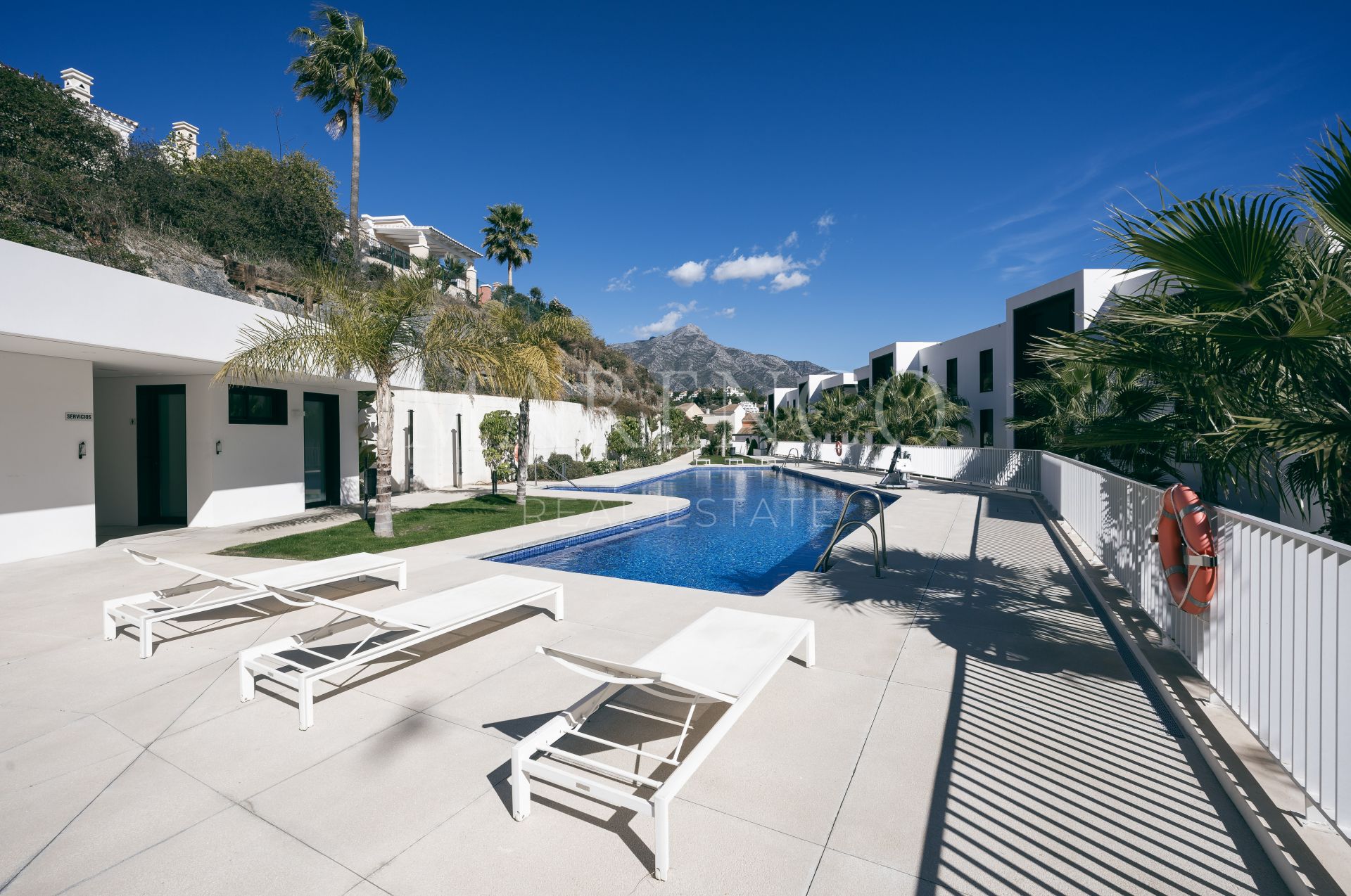 Wohnung zu verkaufen in Nueva Andalucia, Marbella mit 3 Schlafzimmer, 2 Badezimmer und hat Schwimmbad (gemeinschaftlich), garage (privat) und Garten (gemeinschaftlich). Maße: 128m² Gebaut und 38m² Terrasse.
