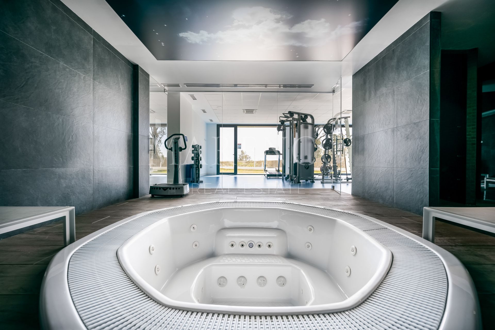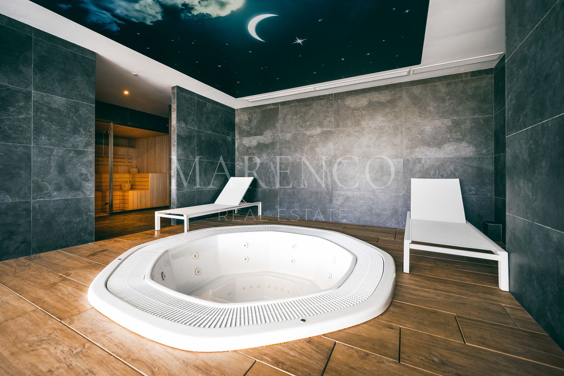 Diese Liegenschaft, orientation Südwesten, haben folgende Ausstattung: private terrasse, nahe ortszentrum, hafennähe, nahe schulen, meerblick, bergsicht, golfsicht, hausautomation, Überdachte terrasse, elektrische rollläden, einbauschränke, geschlossene wohnanlage, aufzug, nahe öffentlicher verkehrsmittel, klimaanlage, küche ausgestattet, jacuzzi, meer/strandnähe, sauna, nähe golfplatz, abstellraum, fitnessraum, alarm, möbel nach wahl, hervorragender zustand und 24std sicherheitsdienst.
