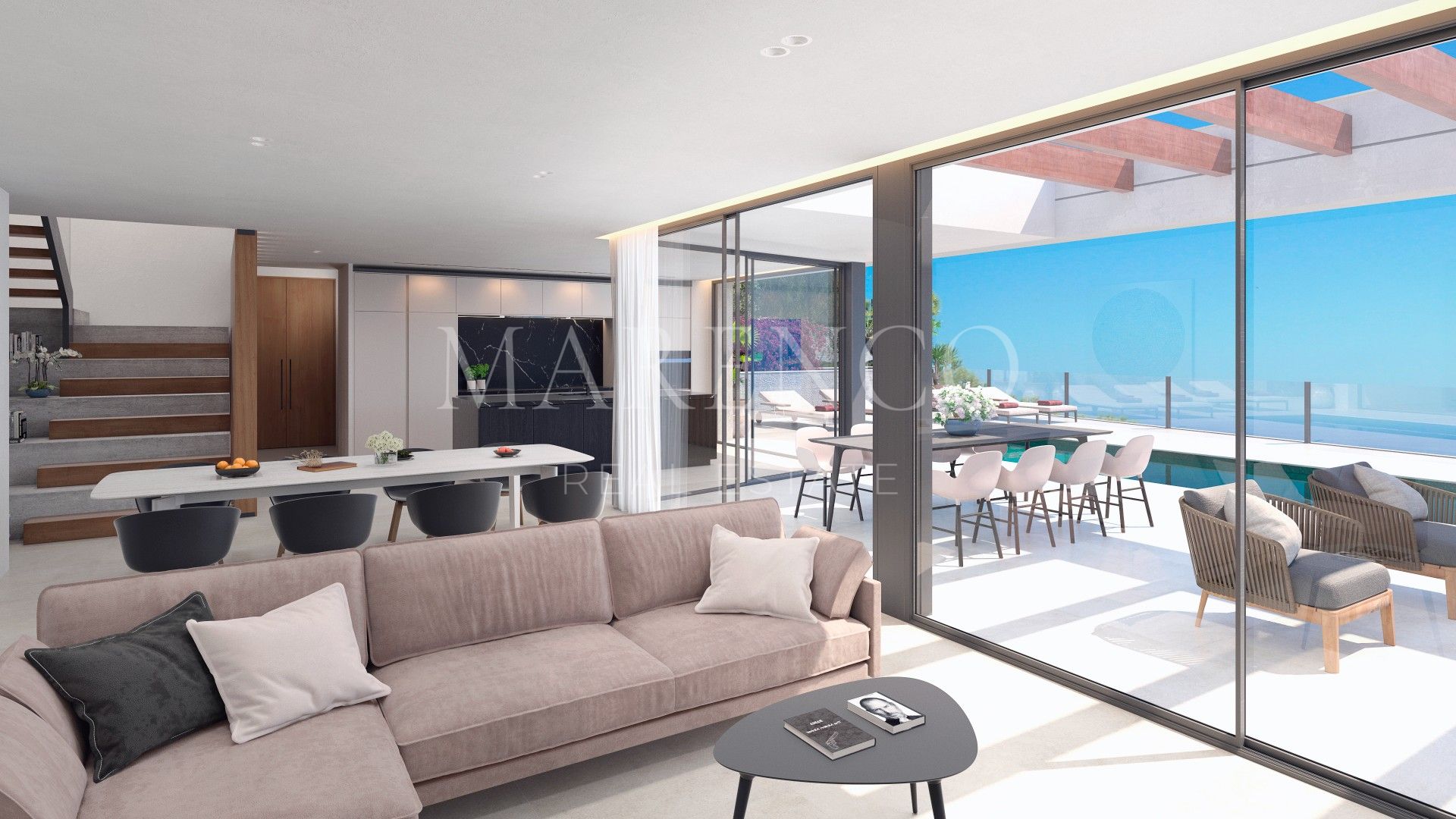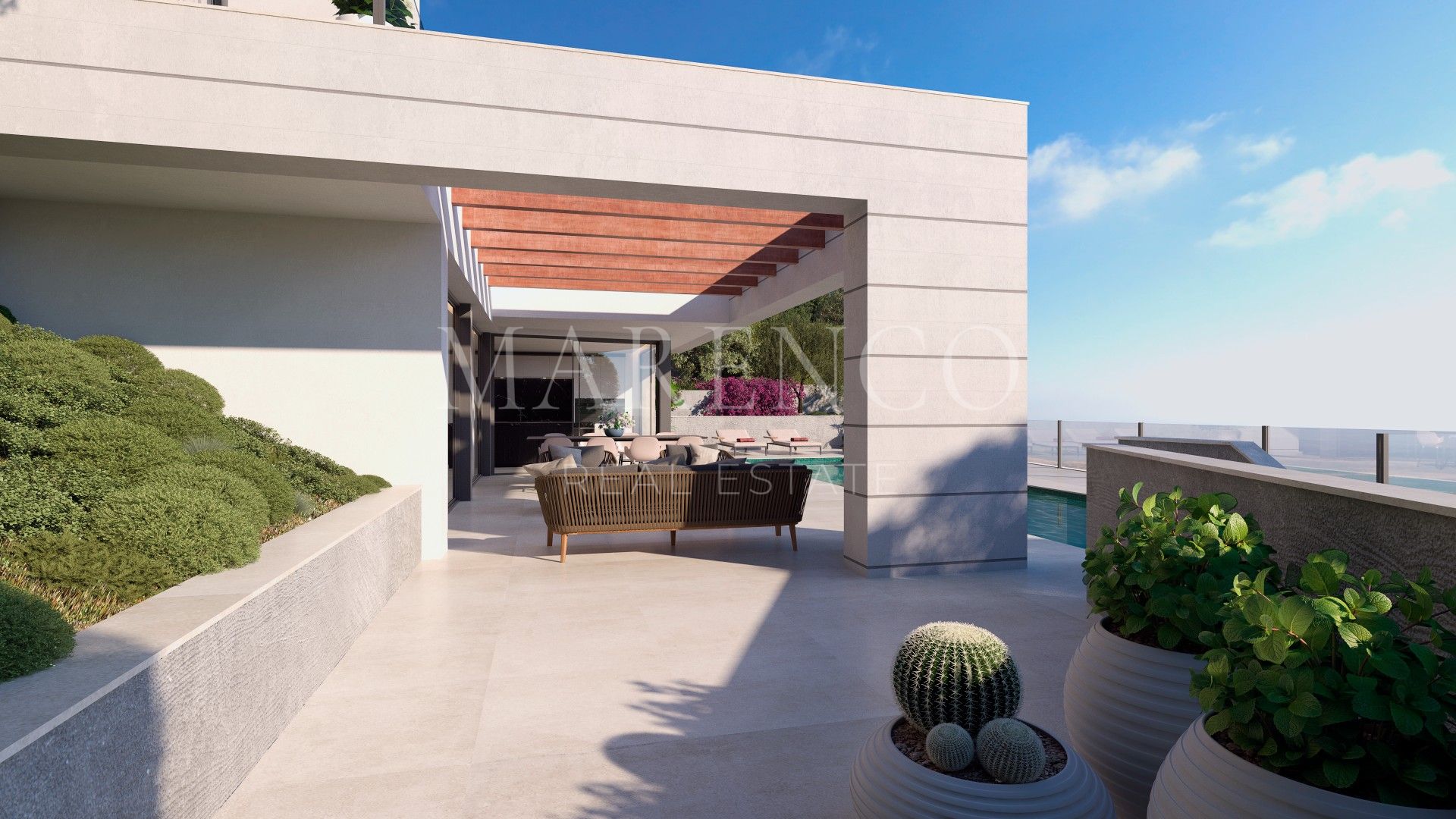Villa zu verkaufen in Pinares de San Antón, Malaga - Este mit 4 Schlafzimmer, 3 Badezimmer, eingebaut 2024 und hat Schwimmbad (privat), garage (privat) und Garten (privat). Maße: 611m² Gebaut, 921m² handlung, 348m² interior und 263m² Terrasse.