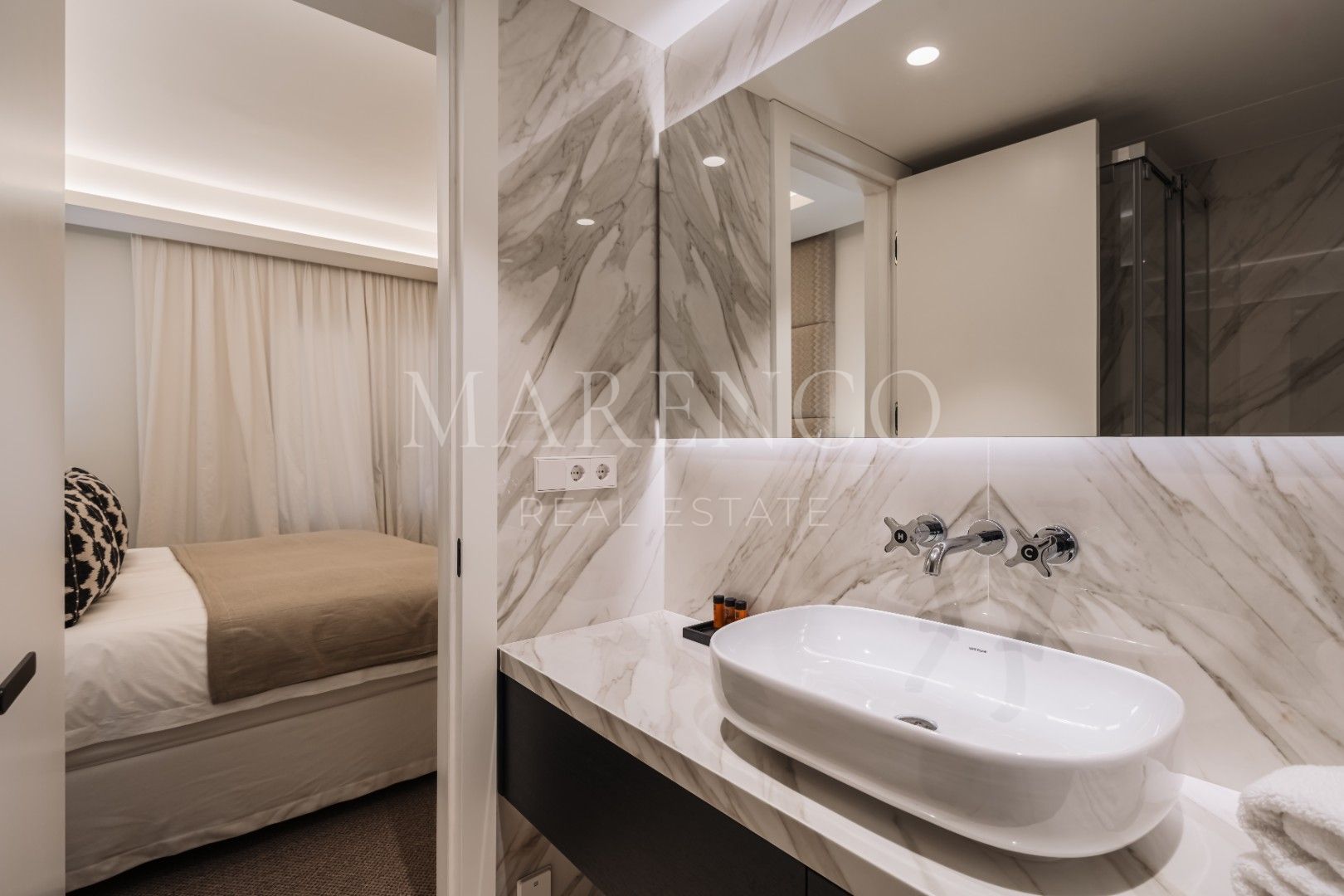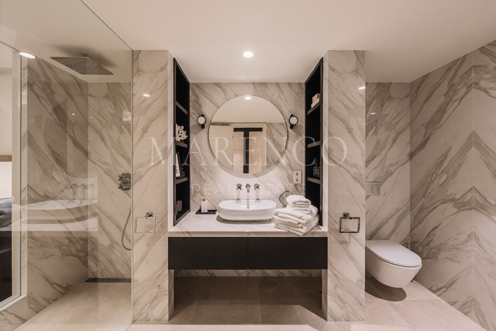 Diese elegante Wohnung in Puente Romano, Marbella Golden Mile, die 2023 renoviert wurde, vereint hochwertige Ausstattungen mit einer zeitlosen Ästhetik. Die Bäder und Schlafzimmer spiegeln eine sorgfältige Auswahl an Materialien wider, darunter großformatiger Stein und maßgefertigte Holzelemente, die dem Gesamtbild Charakter und Ausgewogenheit verleihen. Die Terrasse, die für das Leben im Freien konzipiert wurde, ist eine natürliche Erweiterung des Innenbereichs und eignet sich sowohl für entspannte Mahlzeiten als auch für ruhige Momente in exklusiver Umgebung. Darüber hinaus verfügt die Immobilie über einen privaten Garagenstellplatz, einen Gemeinschaftspool und Gemeinschaftsgärten – wesentliche Merkmale für höchsten Alltagskomfort.