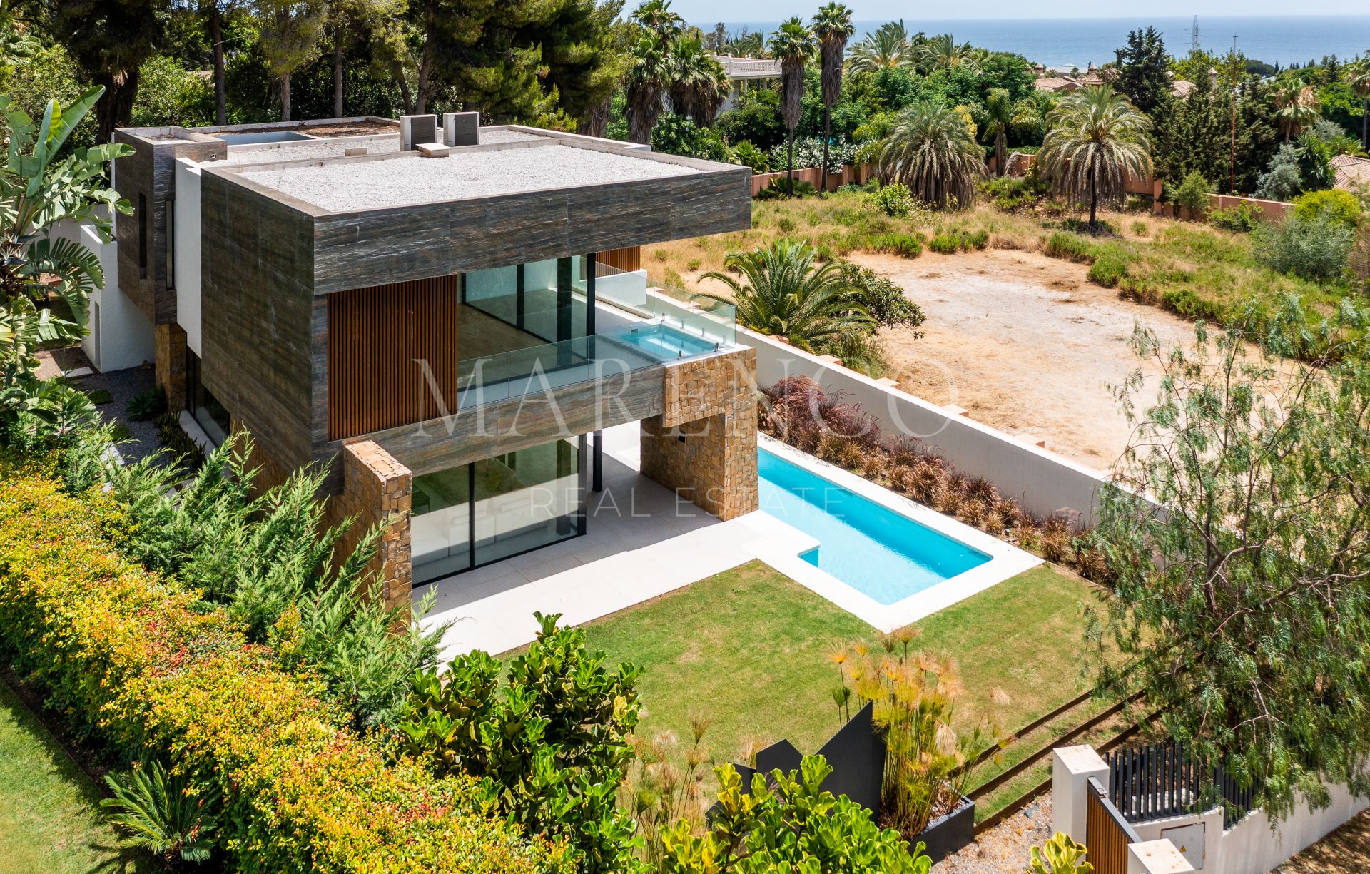 Villa zu verkaufen in Rocio de Nagüeles, Marbella Goldene Meile mit 5 Schlafzimmer, 5 Badezimmer und hat Schwimmbad (privat), garage (privat) und Garten (privat). Maße: 1281m² Gebaut, 683m² handlung und 197m² Terrasse.