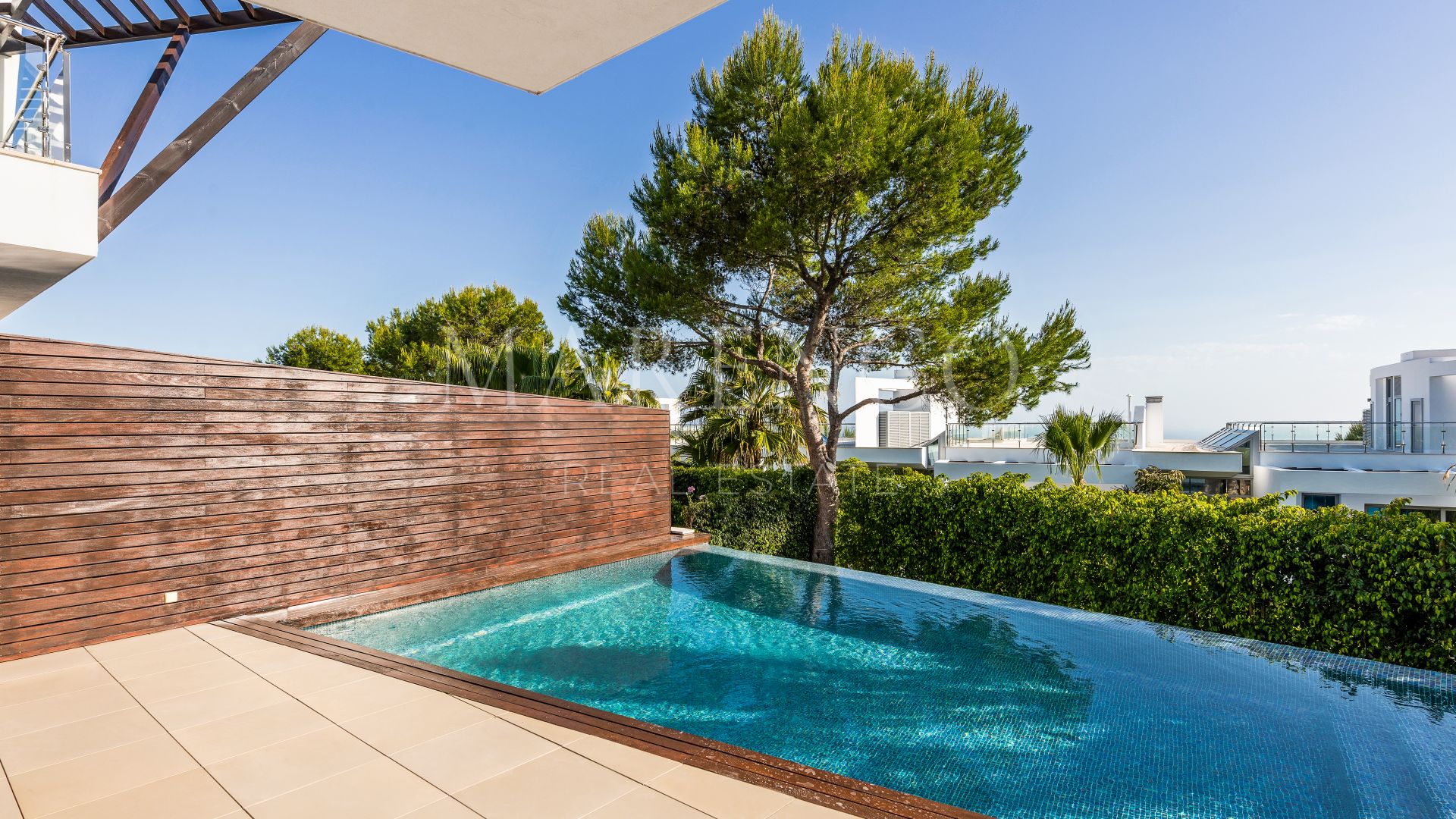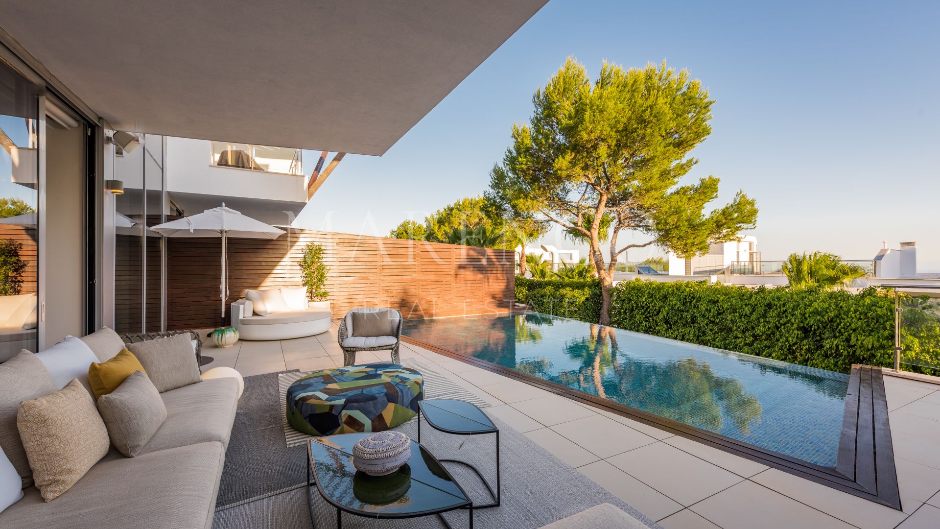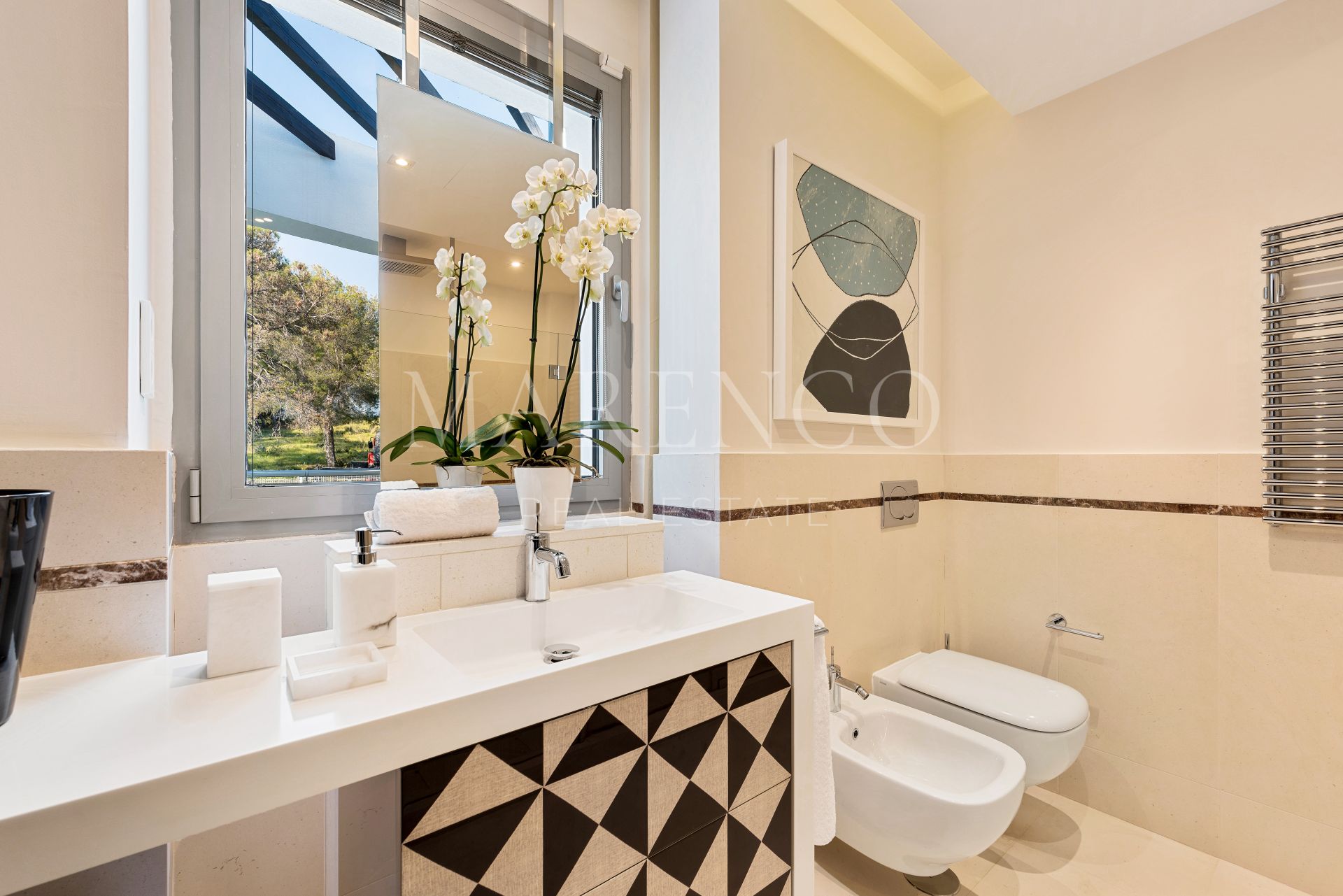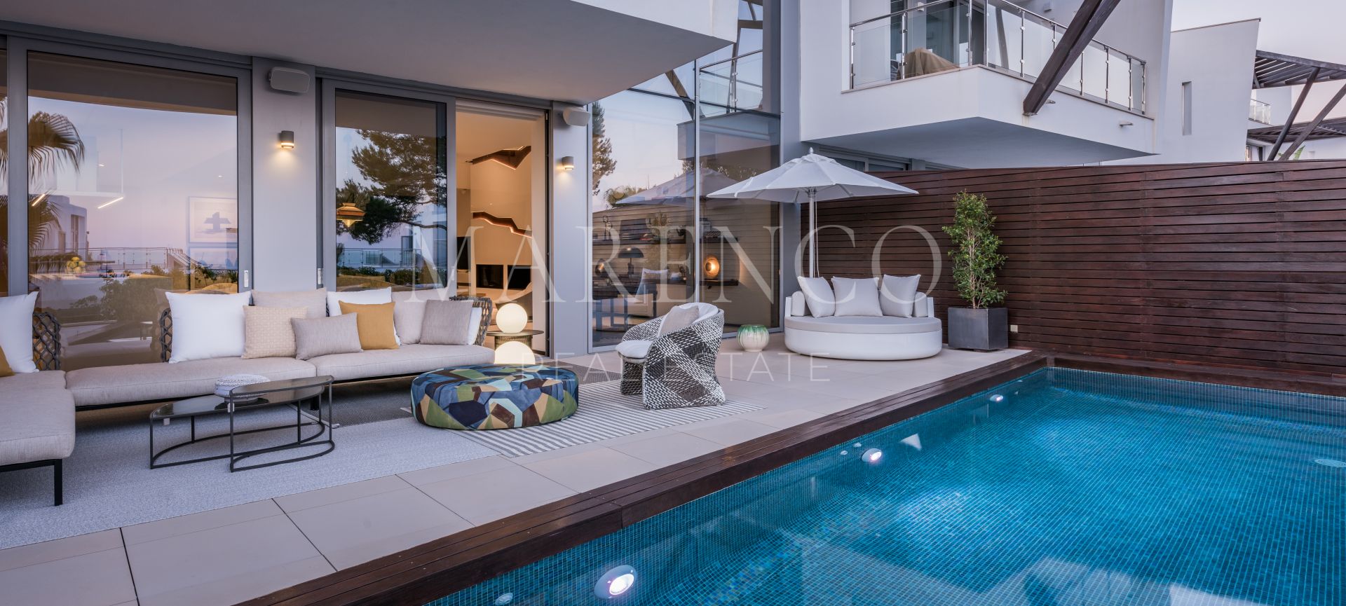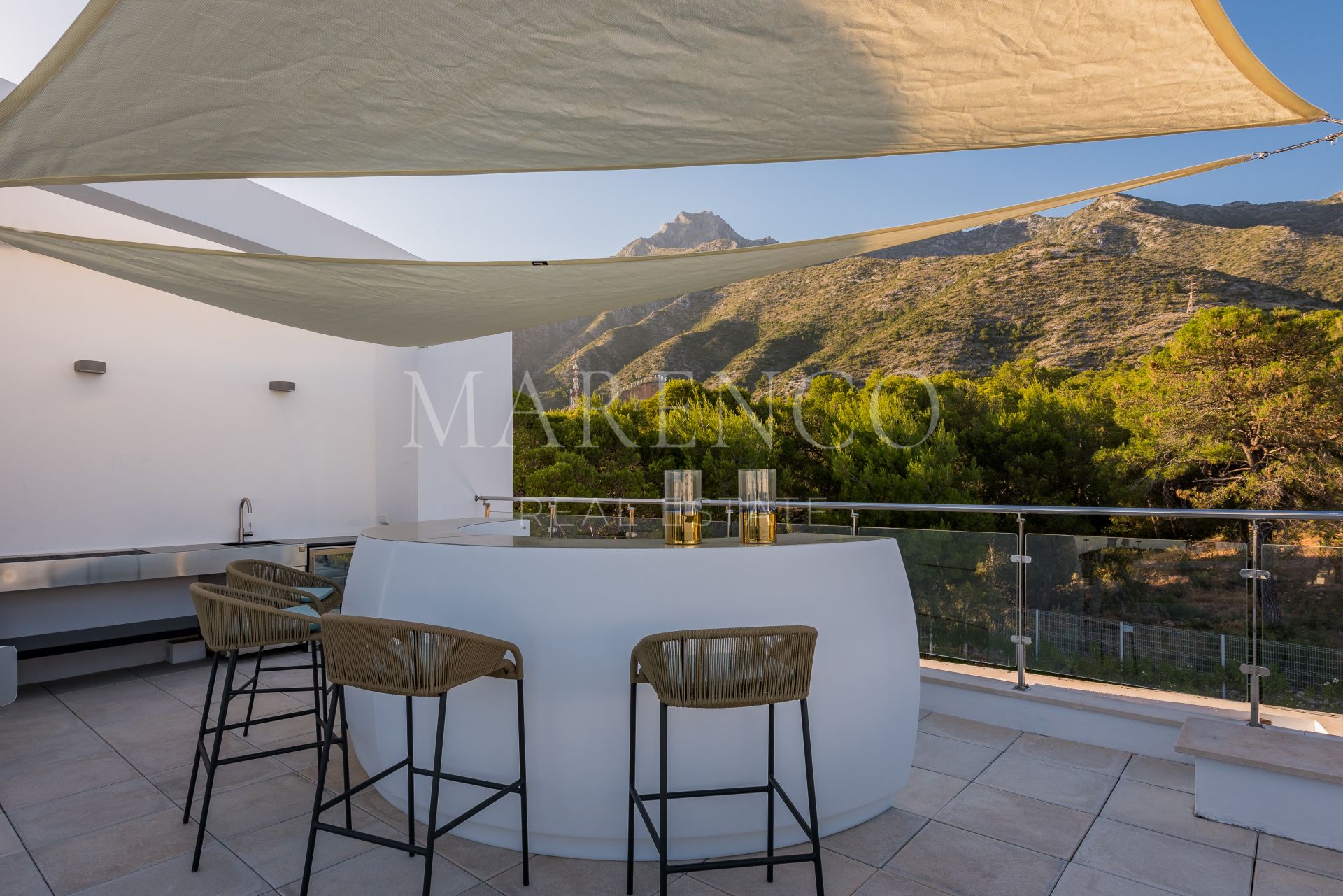 Einfamilienhaushälfte zu verkaufen in Sierra Blanca, Marbella Goldene Meile mit 3 Schlafzimmer, 3 Badezimmer und hat Schwimmbad (privat), garage (privat) und Garten (gemeinschaftlich). Maße: 644m² Gebaut.