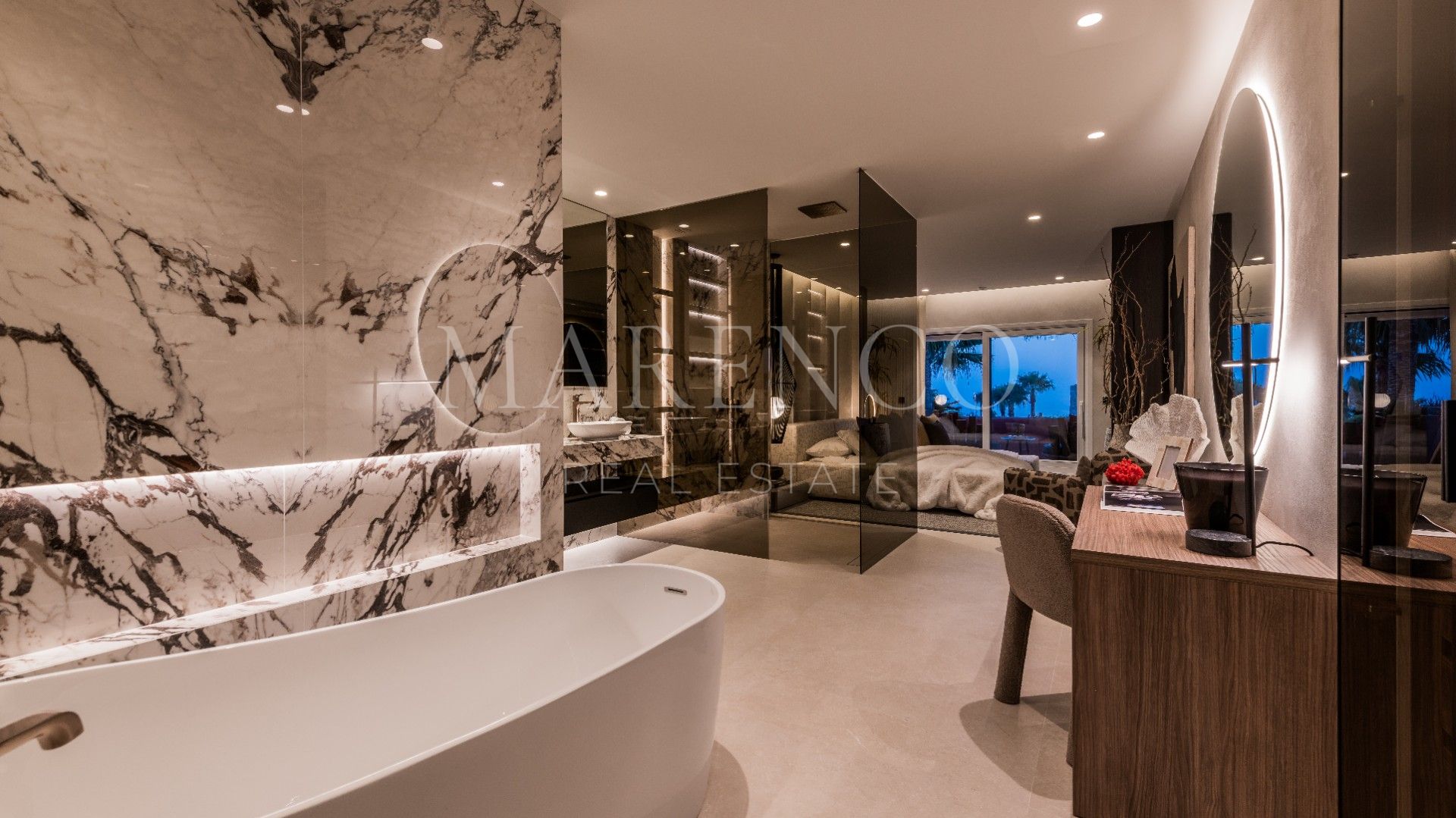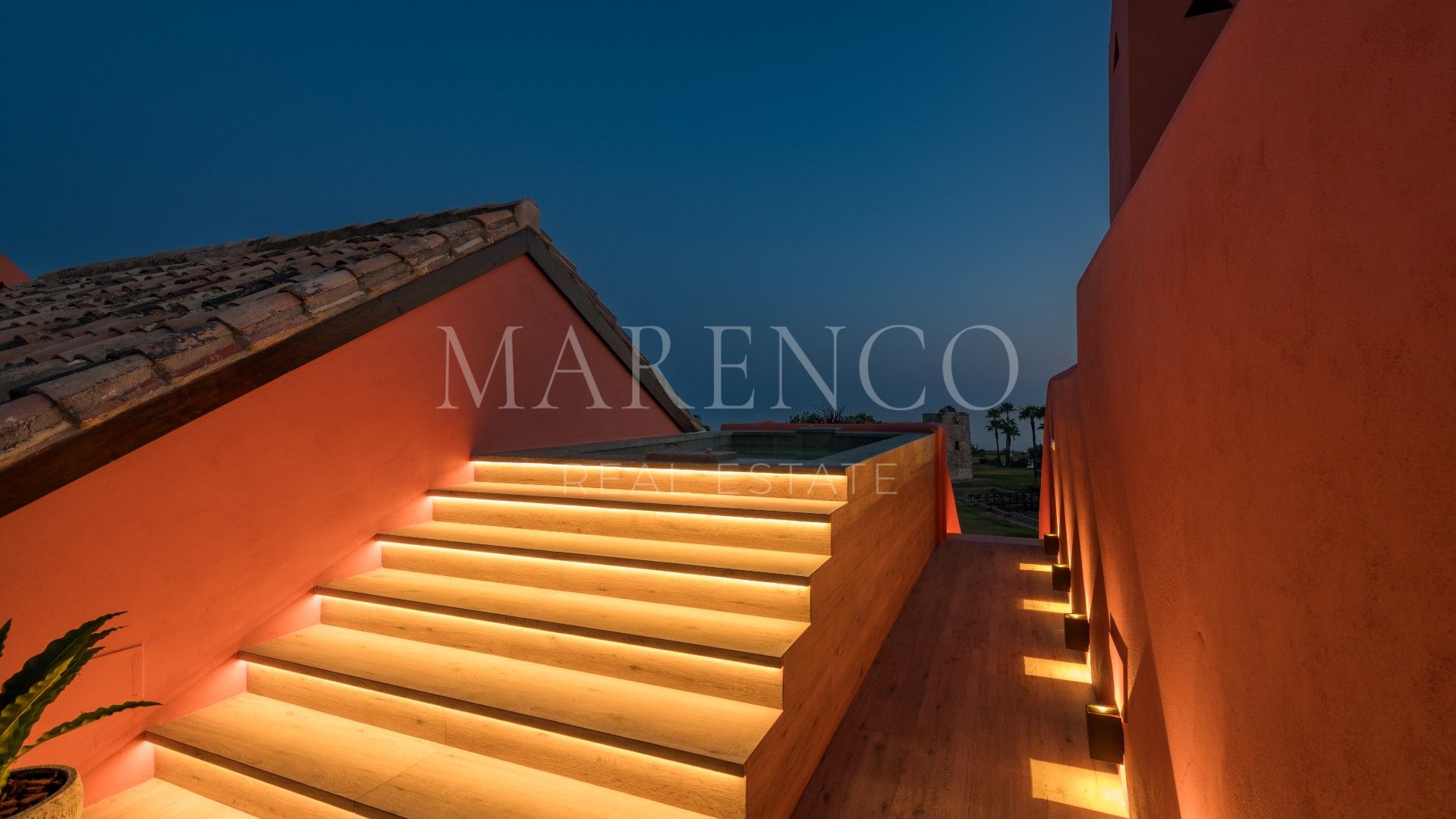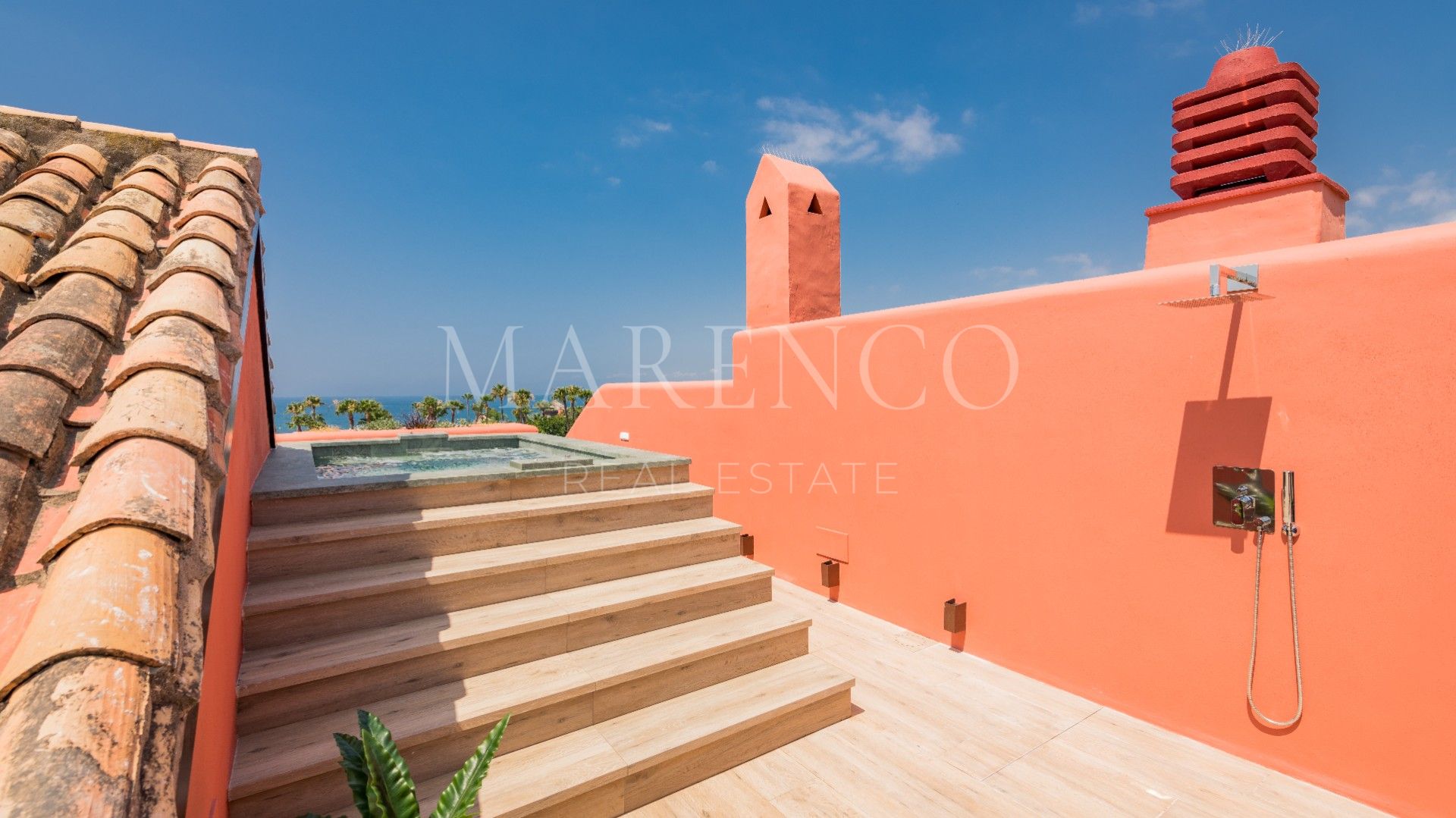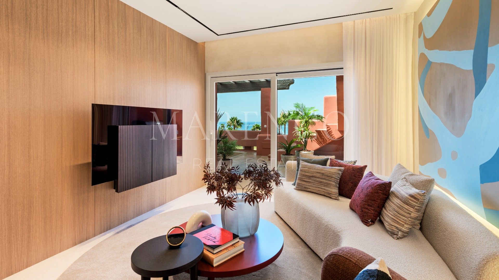 Erdgeschosswohnung zu verkaufen in Torre Bermeja, Estepona Ost mit 3 Schlafzimmer, 2 Badezimmer und hat Schwimmbad (gemeinschaftlich), garage (privat) und Garten (privat). Maße: 146m² Gebaut und 55m² Terrasse.