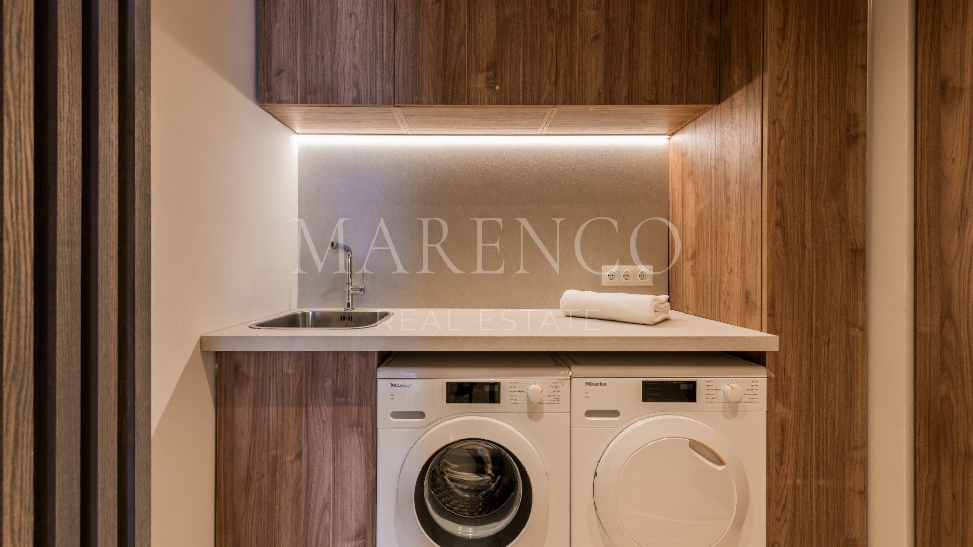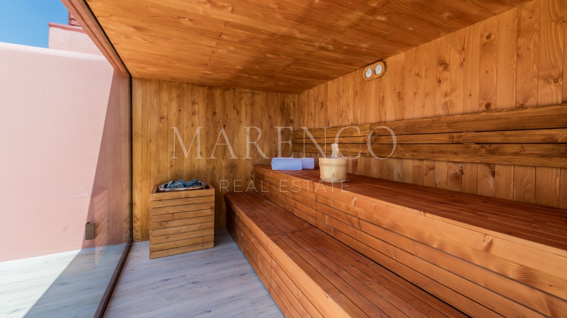 Diese Liegenschaft, orientation Südwesten, haben folgende Ausstattung: private terrasse, strandseite, abstellraum, fitnessraum, nahe ortszentrum, geschlossene wohnanlage, offener kamin, aufzug, hallenschwimmbad, kürzlich renoviert, 24std sicherheitsdienst und sauna.