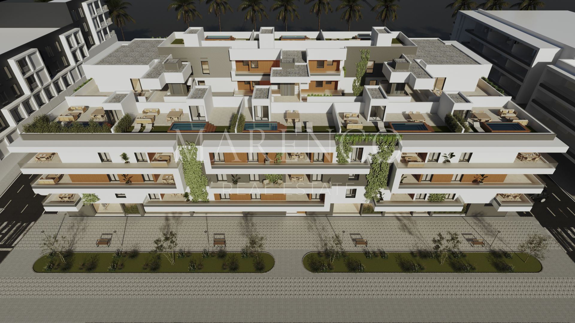 Ontdek een exclusieve nieuwbouwontwikkeling in het bruisende centrum van San Pedro de Alcántara, Málaga. Dit boutiquecomplex biedt slechts 35 elegante woningen, met een zorgvuldige selectie van appartementen, penthouses en duplexen met 2 en 3 slaapkamers. Alle woningen zijn ontworpen met moderne verfijning en profiteren van hoogwaardige afwerkingen en materialen van topkwaliteit. De terrassen variëren van 10 m² tot 144 m² en de bebouwde oppervlakten liggen tussen 97 m² en 130 m², waardoor lichte, open ruimtes ontstaan die perfect zijn voor comfortabel wonen.