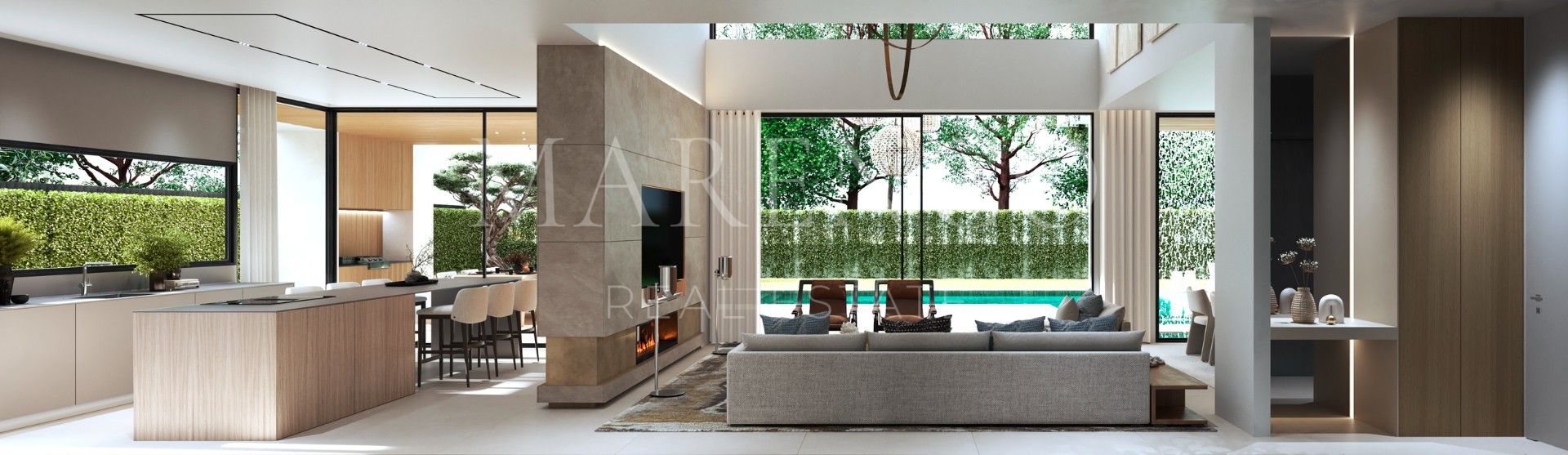 Les villas bénéficient d’une collaboration spéciale avec BANG & OLUFSEN pour offrir une expérience sensorielle supérieure en matière de son et d’image. L’entrée principale mène à un vaste salon et salle à manger, séparés par une cheminée à double face. La cuisine, équipée de la prestigieuse marque BULTHAUP et d’appareils Siemens, est idéale pour les passionnés de gastronomie.