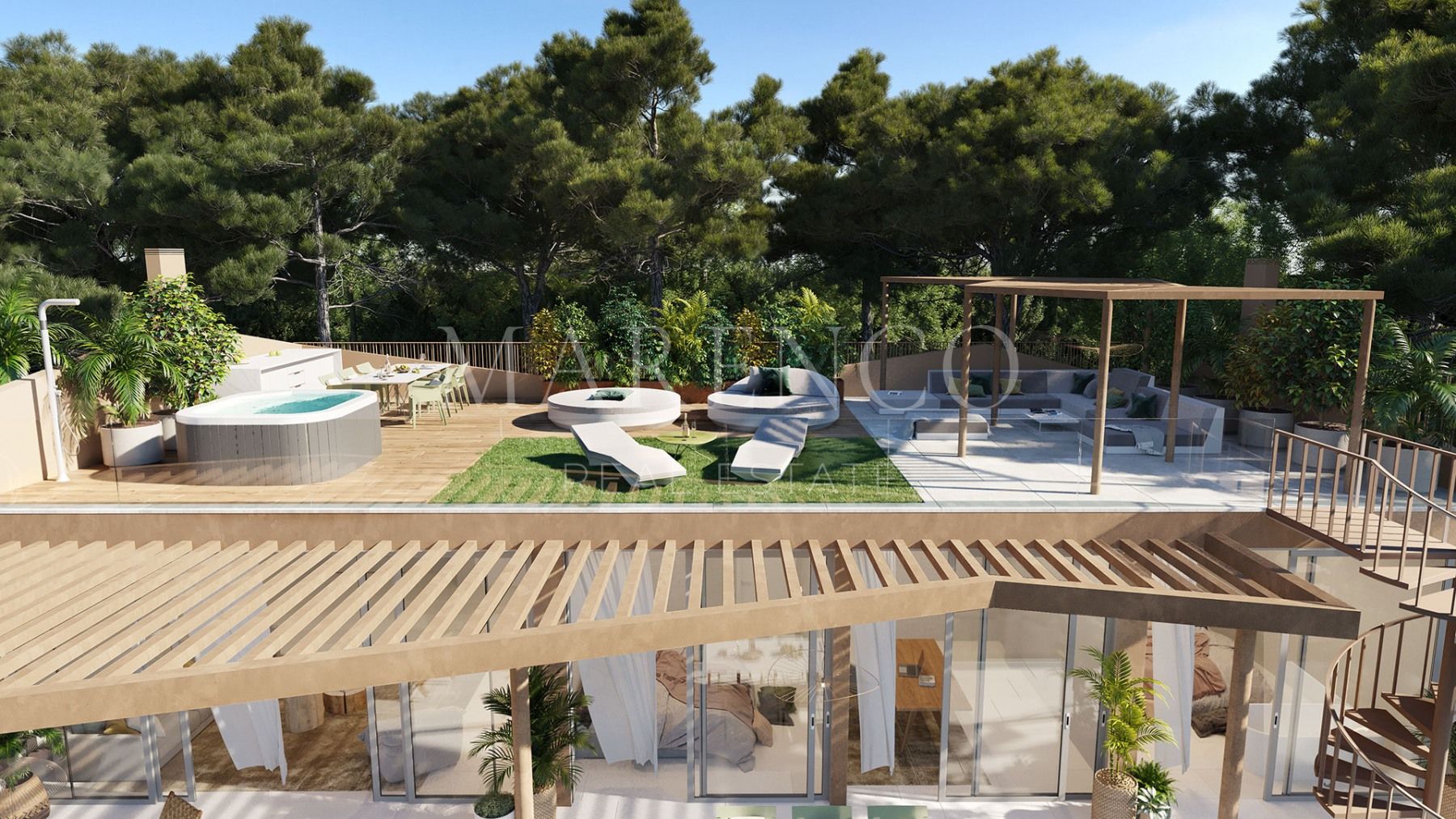 Parmi ses caractéristiques distinctives figurent les différentes typologies proposées — Garden Villas, Garden Villas Plus, Sky Villas et Sky Villas avec solarium — permettant de profiter de jardins privés jusqu’à 400 m² ou de solariums jusqu’à 130 m², selon le logement. Toutes les résidences bénéficient de 16 mètres linéaires de façade, d’une orientation sud-ouest et d’une intégration soignée dans l’environnement naturel, favorisant une luminosité optimale tout au long de la journée. Le projet comprend également une piscine infinity, des espaces paysagers, deux places de parking, un local de rangement et un espace de co-working, offrant confort et polyvalence au mode de vie actuel.