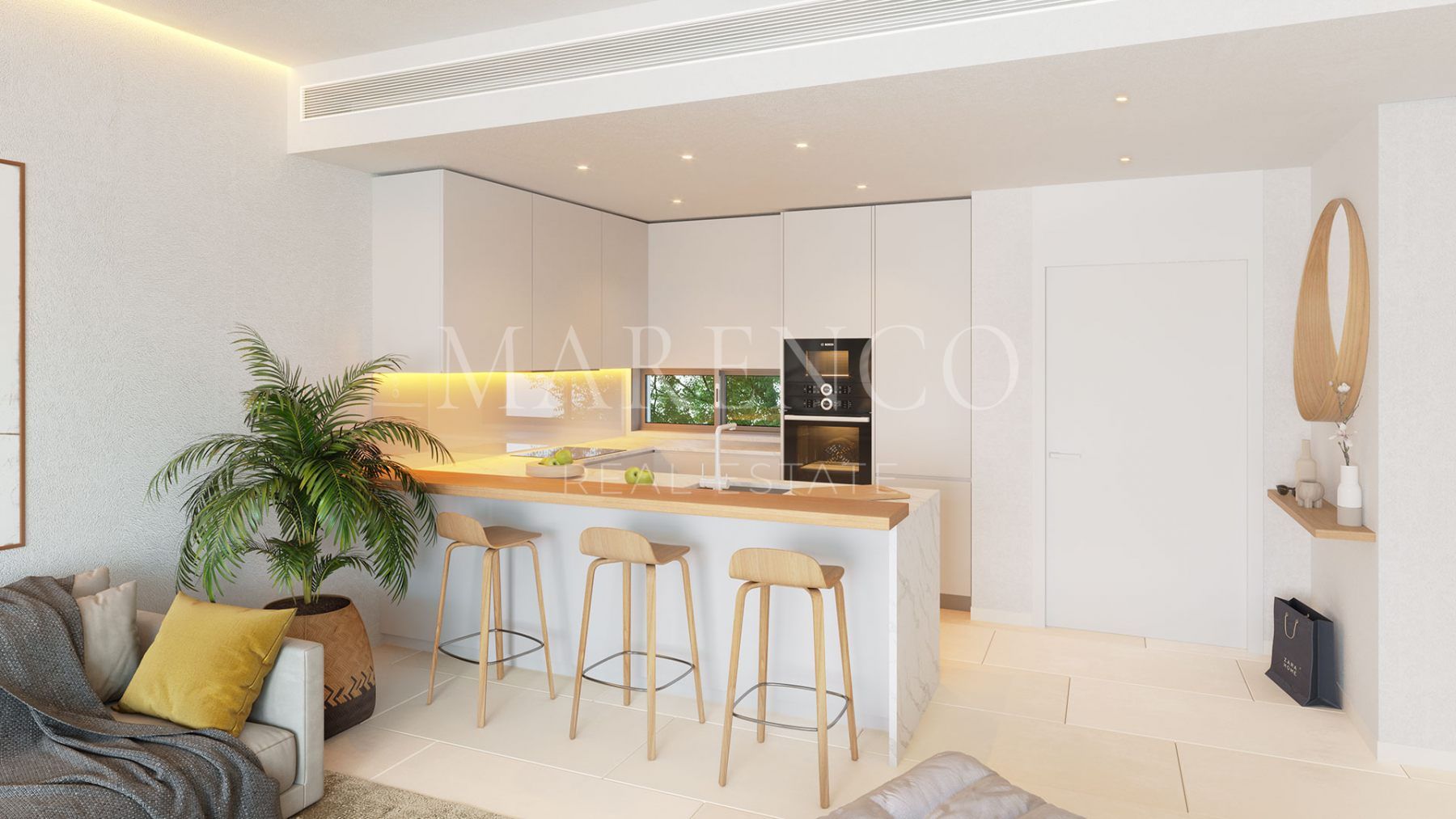 Le projet se compose d’une collection limitée de résidences réparties sur des modules de deux étages, avec des intérieurs spacieux d’environ 130 m², conçus pour offrir des espaces équilibrés et fonctionnels. Les logements disposent de trois chambres, deux salles de bains et des toilettes invités, d’un séjour-salle à manger ouvert et d’une cuisine intégrée, créant des espaces lumineux et fluides qui s’ouvrent naturellement sur de généreuses terrasses extérieures grâce à de larges baies vitrées.