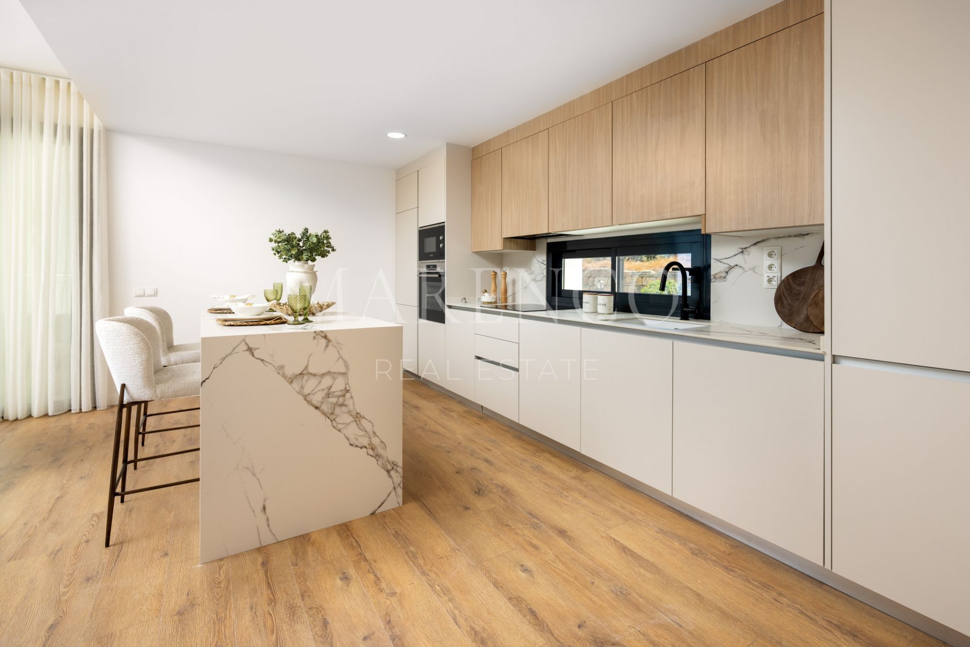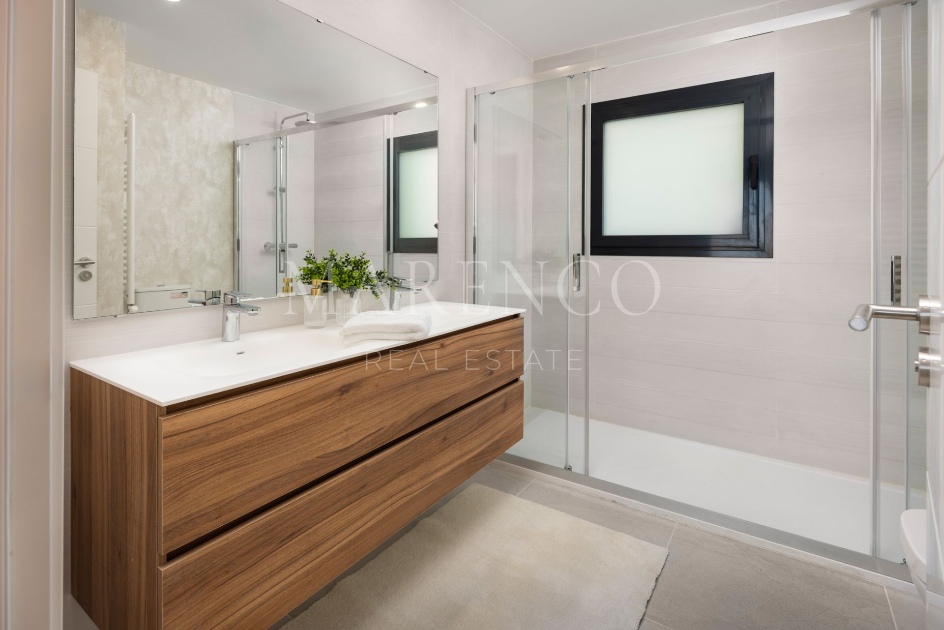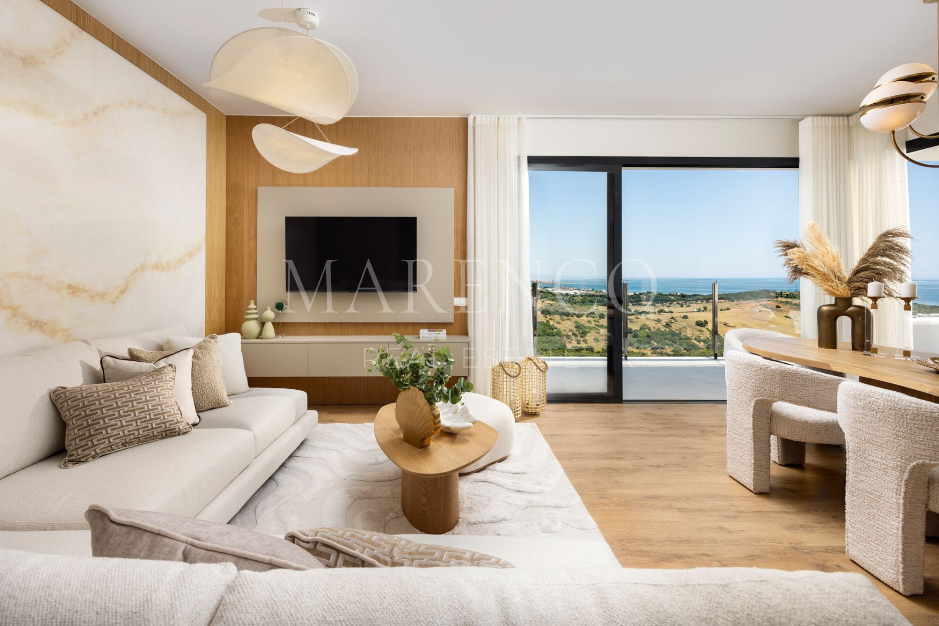 Esta residencia forma parte de un exclusivo conjunto de solo 51 apartamentos y áticos de 2 y 3 dormitorios, distribuidos en seis elegantes edificios de arquitectura moderna. Cada vivienda destaca por su amplitud, luminosidad y acabados meticulosos. Las estancias principales fluyen con naturalidad hacia las terrazas, creando una sensación de continuidad entre interior y exterior, ideal para disfrutar del clima templado de la Costa del Sol durante todo el año.
