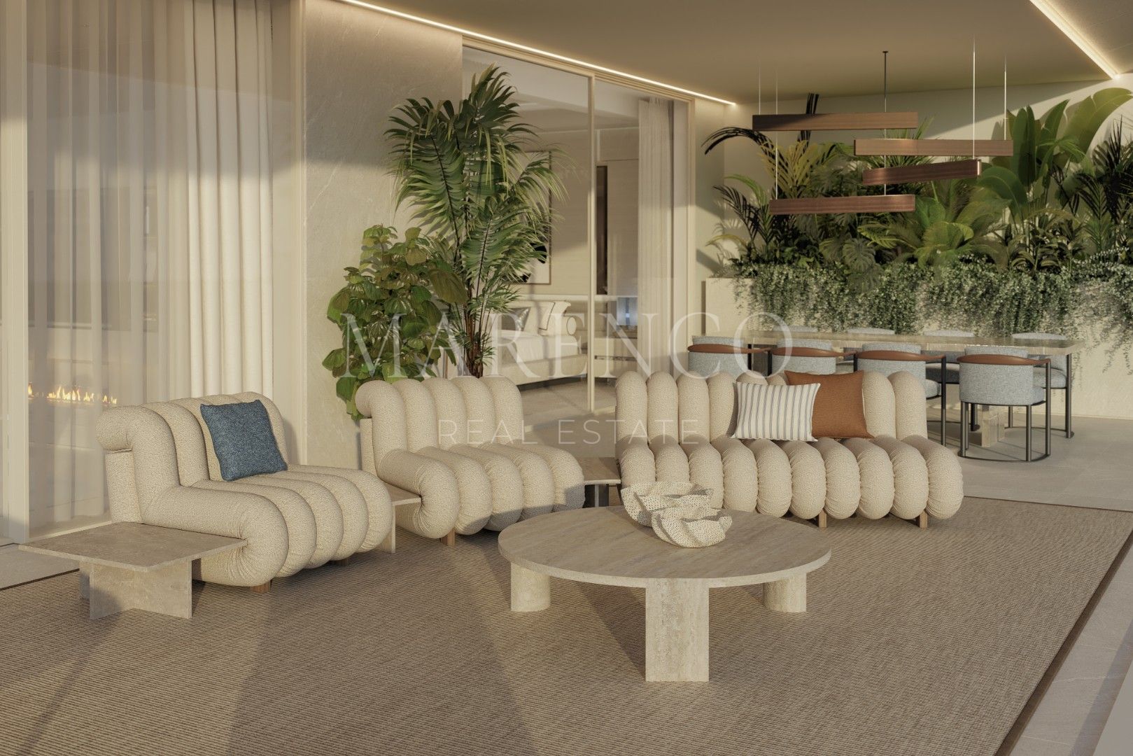 Además, el proyecto ofrece servicios premium como seguridad 24 horas, residential manager, entrenadores personales, clases de yoga y fitness, así como servicios domésticos, creando una experiencia residencial similar a la de un hotel de lujo. Todo ello en un entorno ajardinado cuidadosamente diseñado, donde la arquitectura se integra de forma natural con el paisaje mediterráneo.