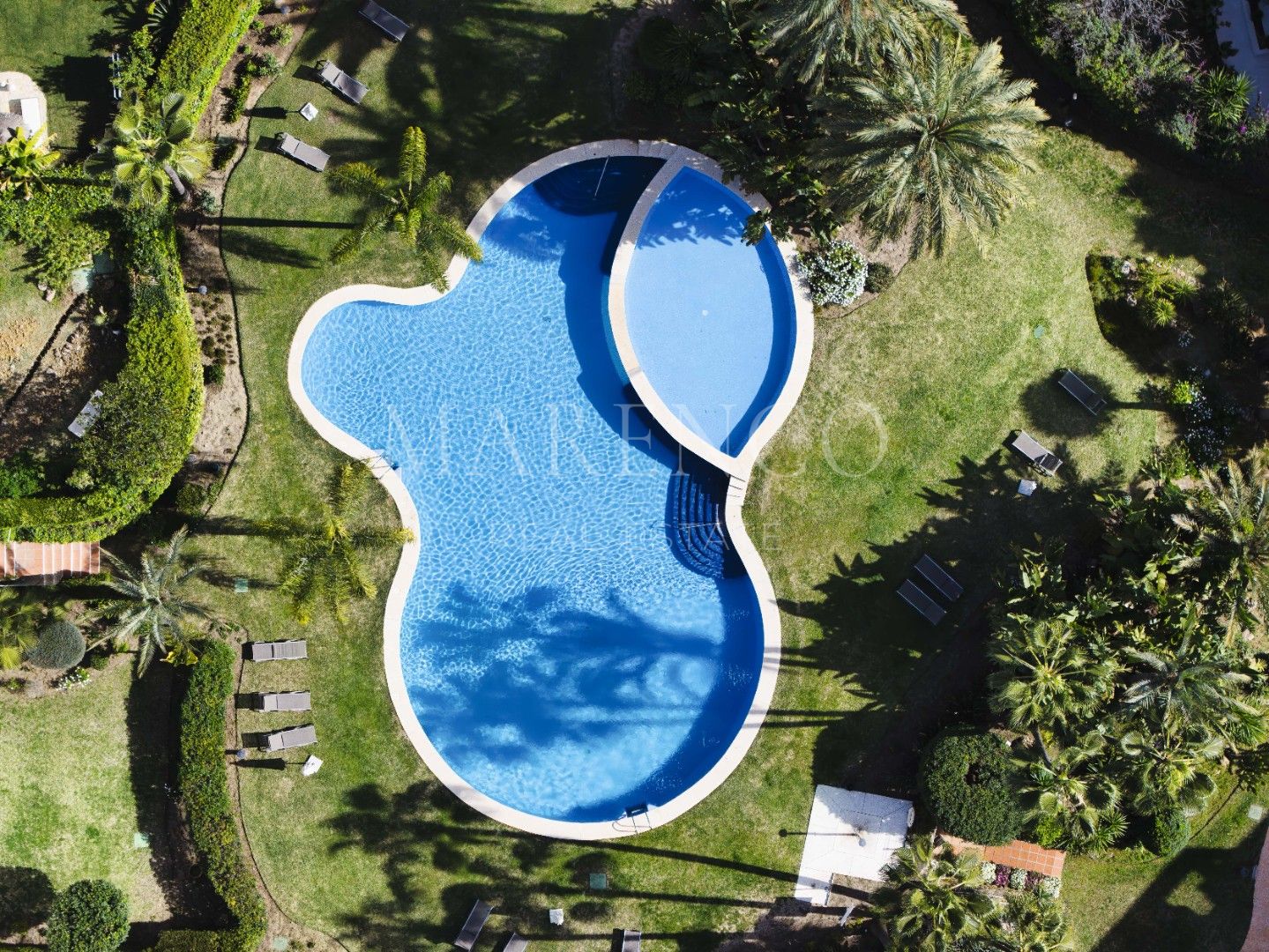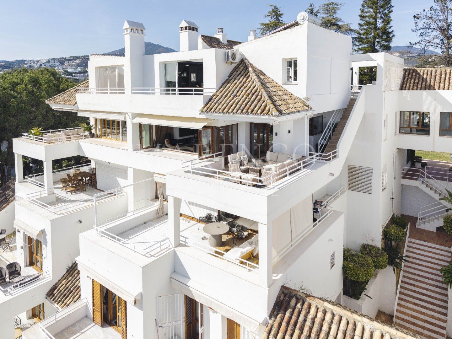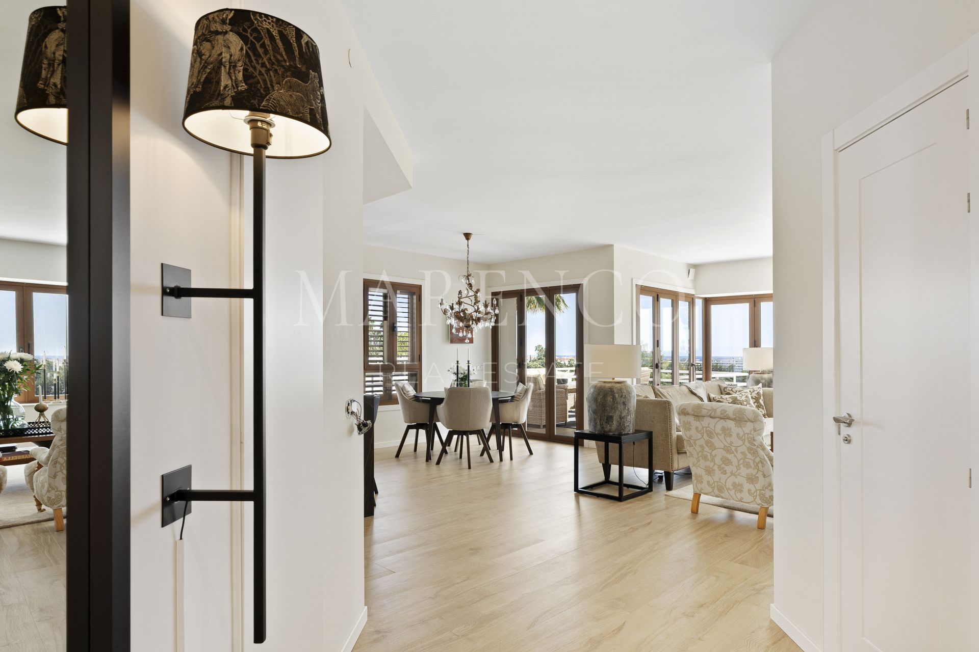 Introducing the remarkable Alcores Penthouse, a distinguished luxury residence located within the esteemed Alcores del Golf urbanization in Nueva Andalucía. This extraordinary penthouse, seamlessly blending luxury and sophistication, offers an inviting environment for those who cherish the finer aspects of life. Initially constructed in 1991, it was thoughtfully renovated in 2020 to embrace modern elegance while maintaining its timeless charm.