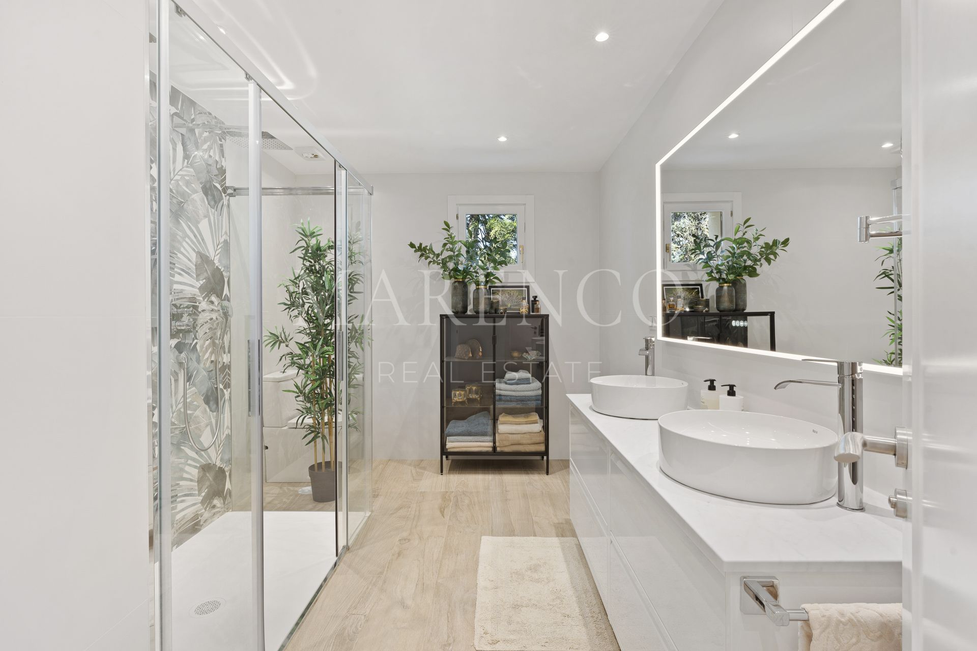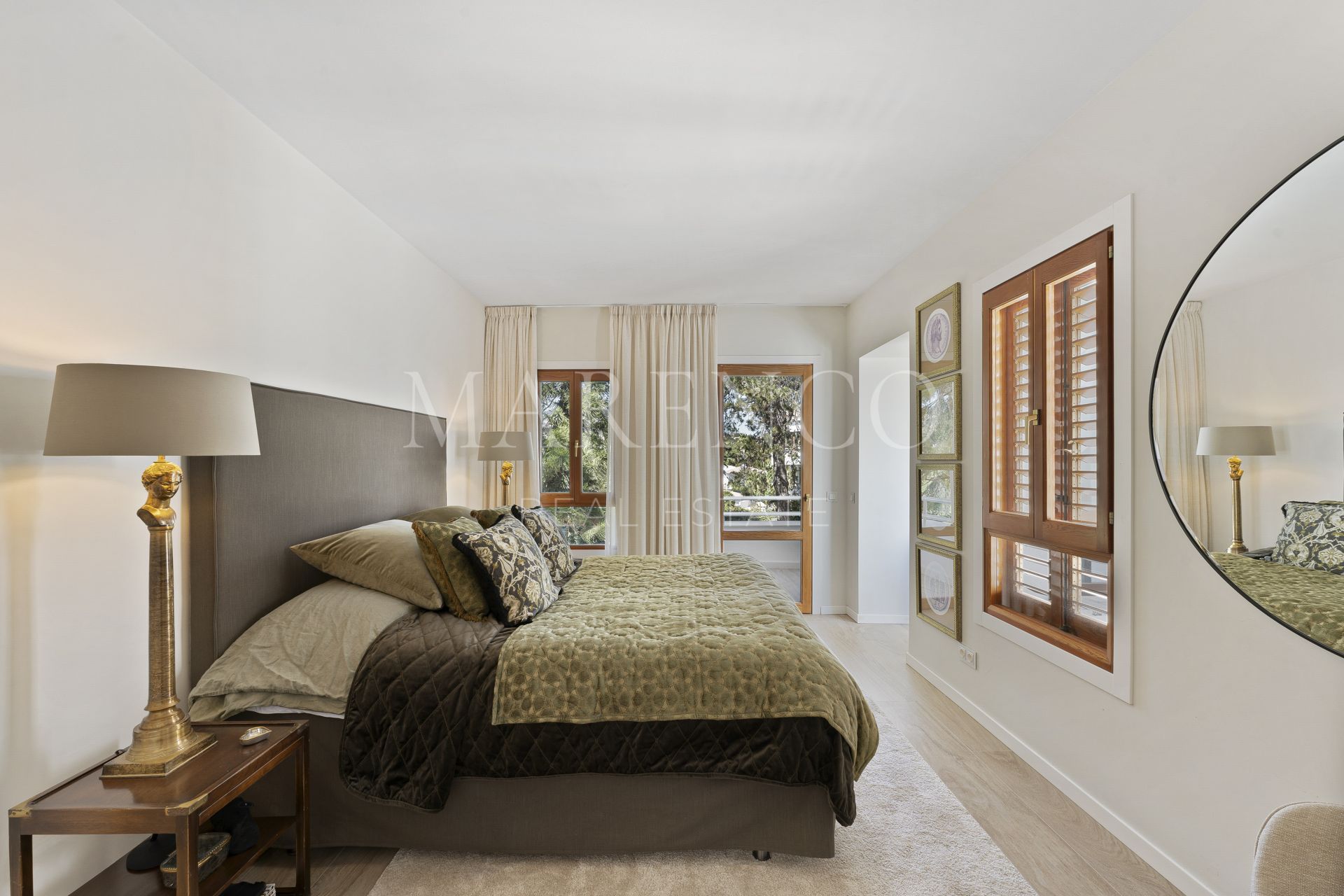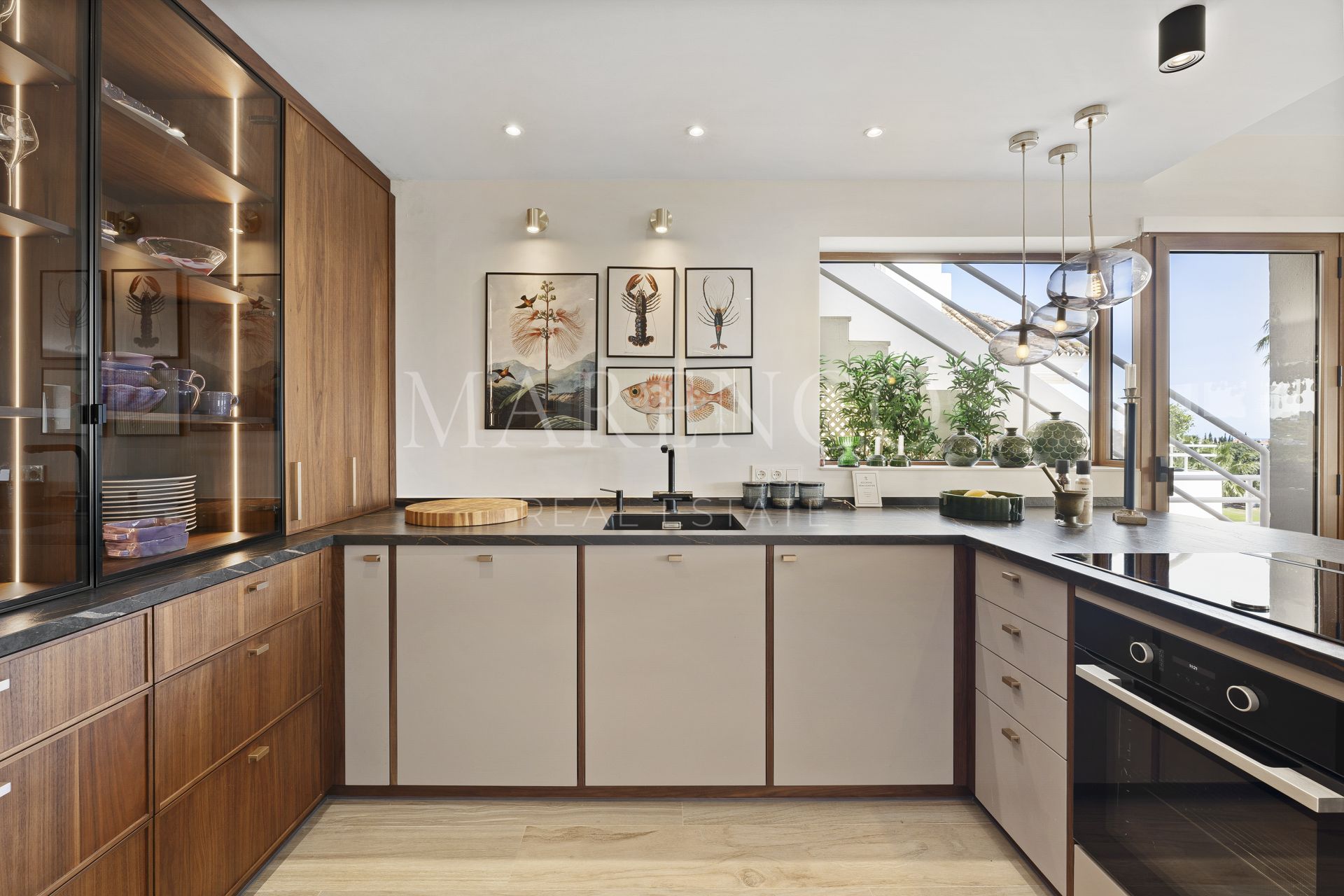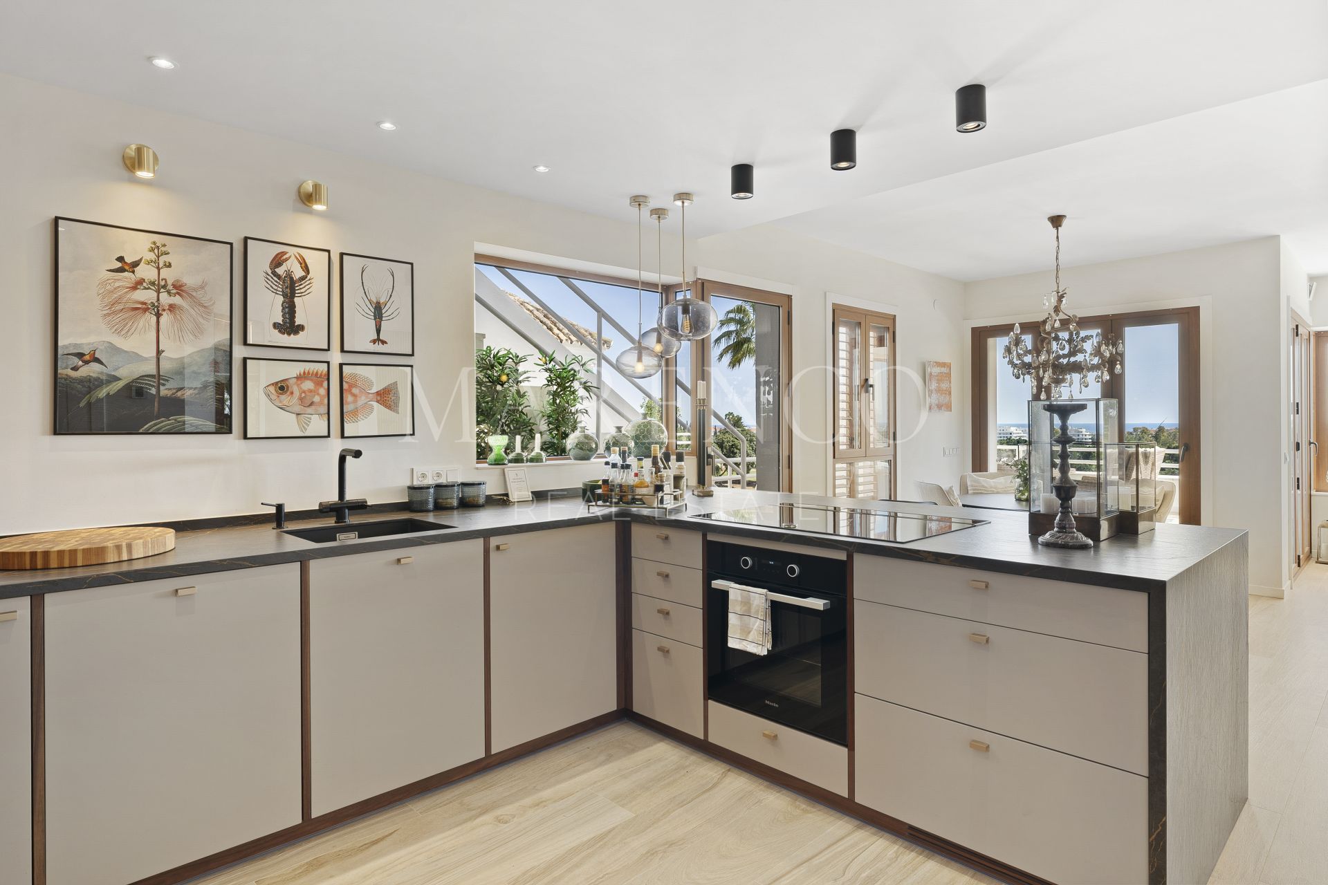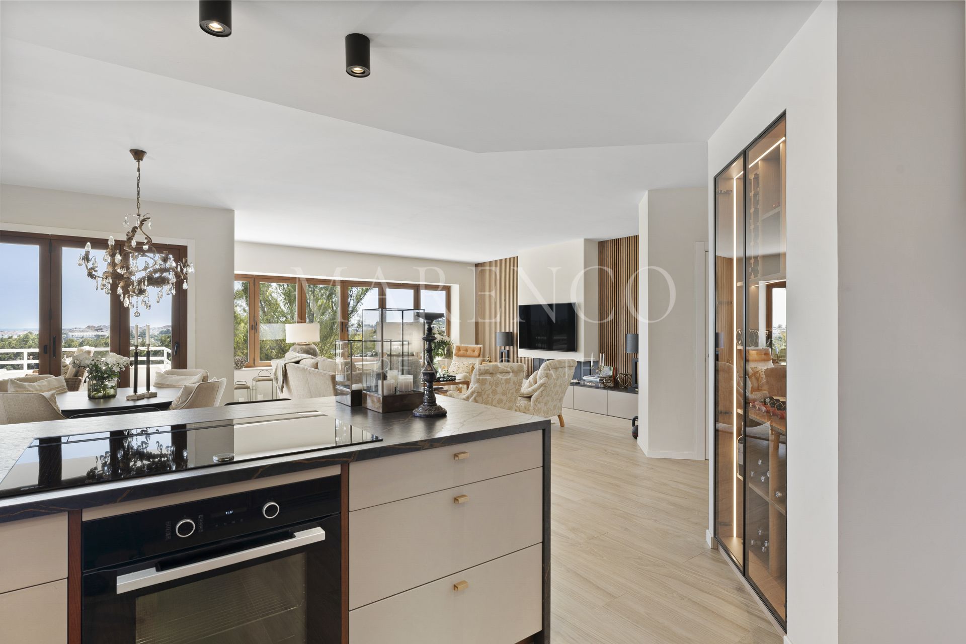 The interiors of Alcores Penthouse are a testament to modern design and functionality. A fully furnished open-plan kitchen seamlessly integrates with the living spaces, all of which are adorned in a classic style defined by understated elegance. A standout feature is the guest apartment, providing an added layer of luxury and privacy for visitors.