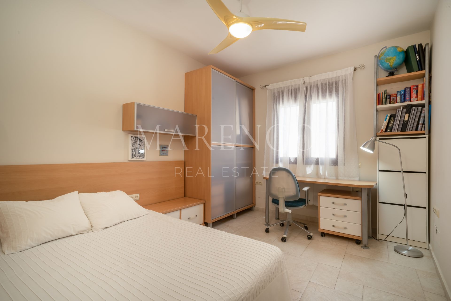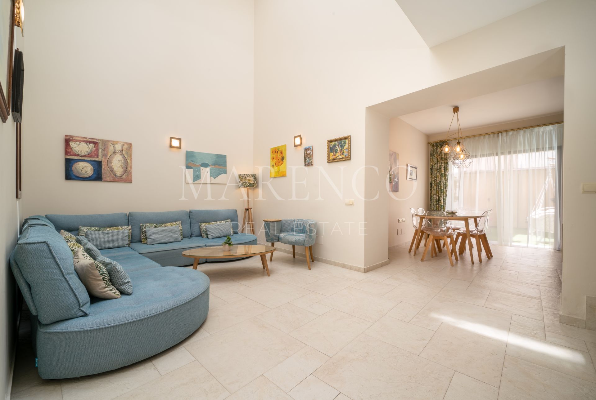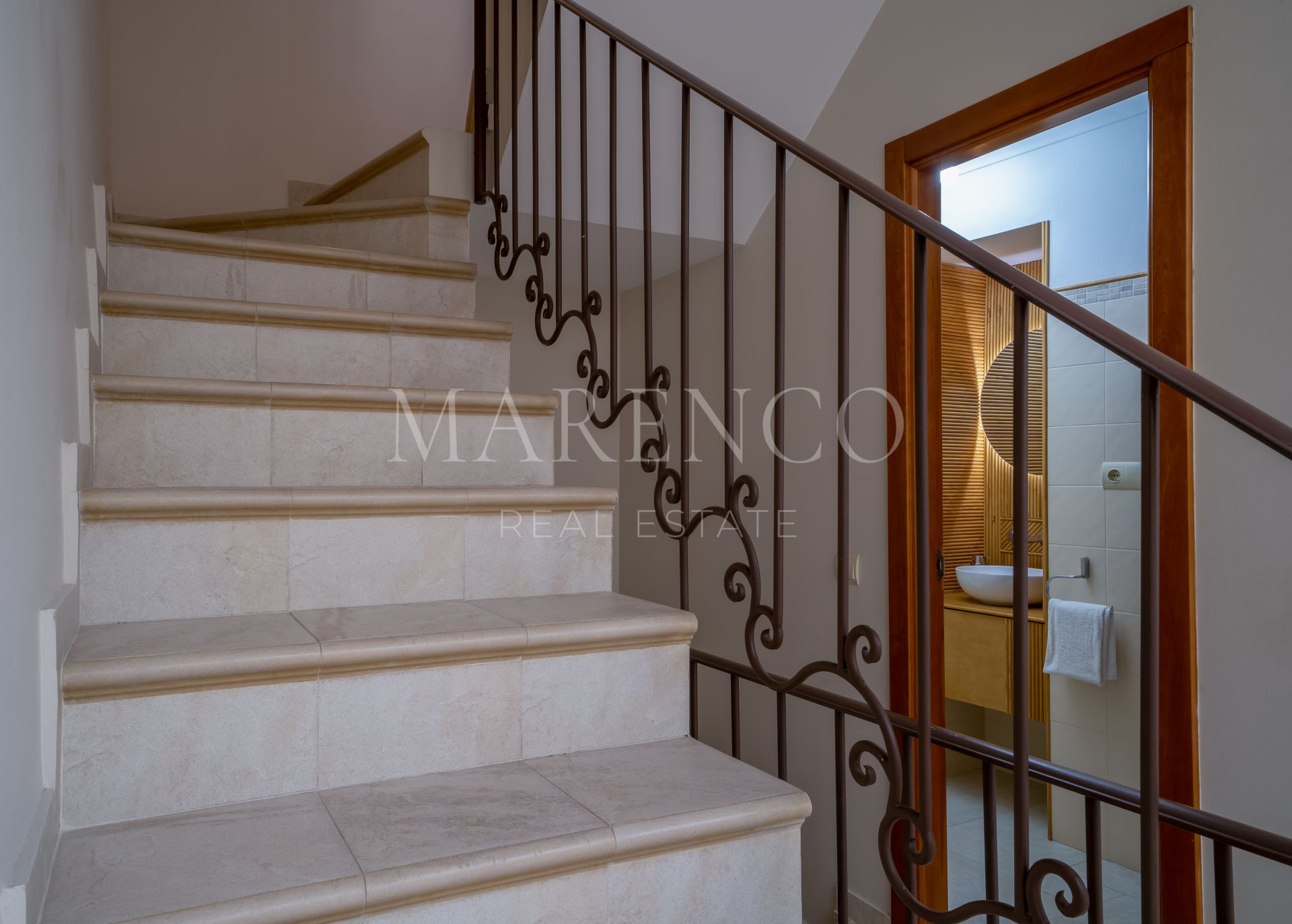 Distributed over 3 levels, it has 4 bedrooms and 3 bathrooms, a bright double-height living room with a dining area and direct access to the private terrace on the first floor, and also, a fully fitted kitchen.