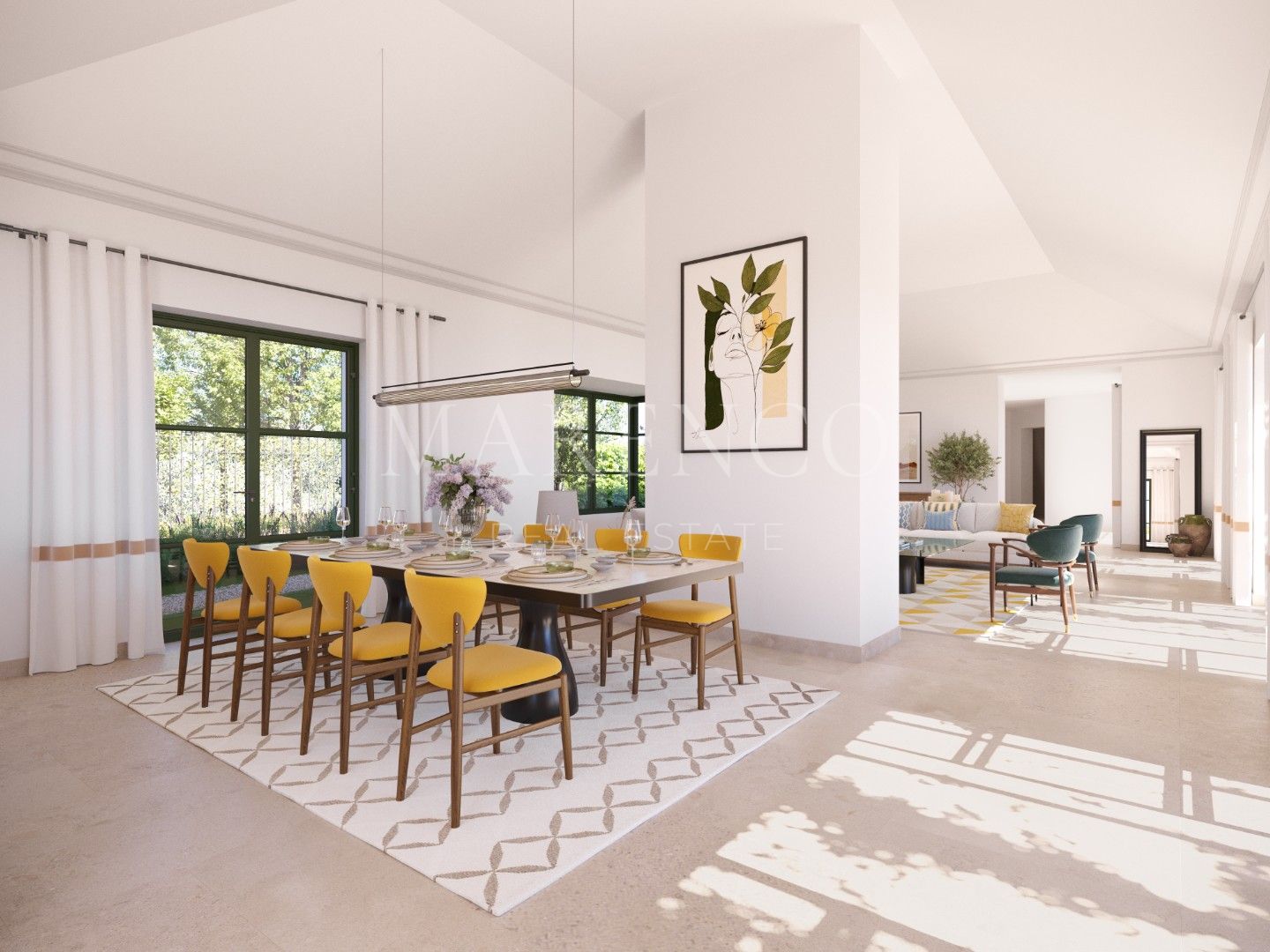 The exterior of the villa, with its landscaped garden and private pool, is designed to maximize enjoyment of the natural surroundings. The pool and extensive terraces invite relaxation under the sun while enjoying the privacy and beauty of the location. Additionally, the villa is equipped with state-of-the-art home automation, allowing you to control the lighting, temperature, and security from anywhere.
