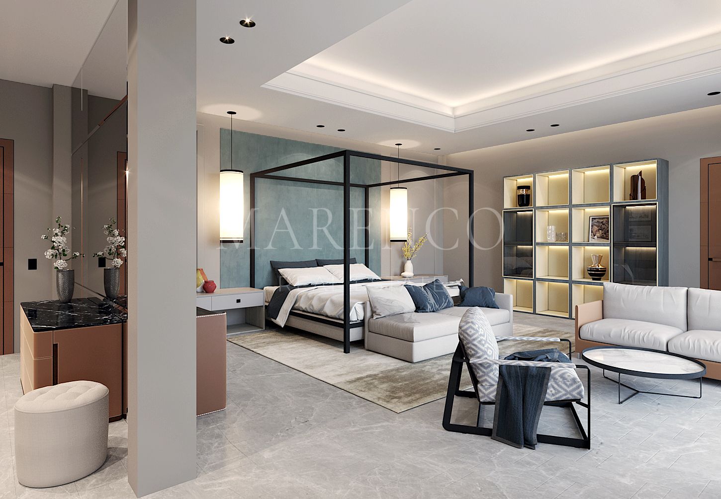 This impressive villa consists of spacious lounge area, fully fitted and equipped kitchen, 10 bedrooms and 11 bathrooms. There are also different entertainment areas: a wine bodega with the bar, Spa with indoor pool, fitness zone, a gym and a garage. You will enjoy the lifestyle of Costa del Sol and contemplate the views from the sunny terraces on both levels.