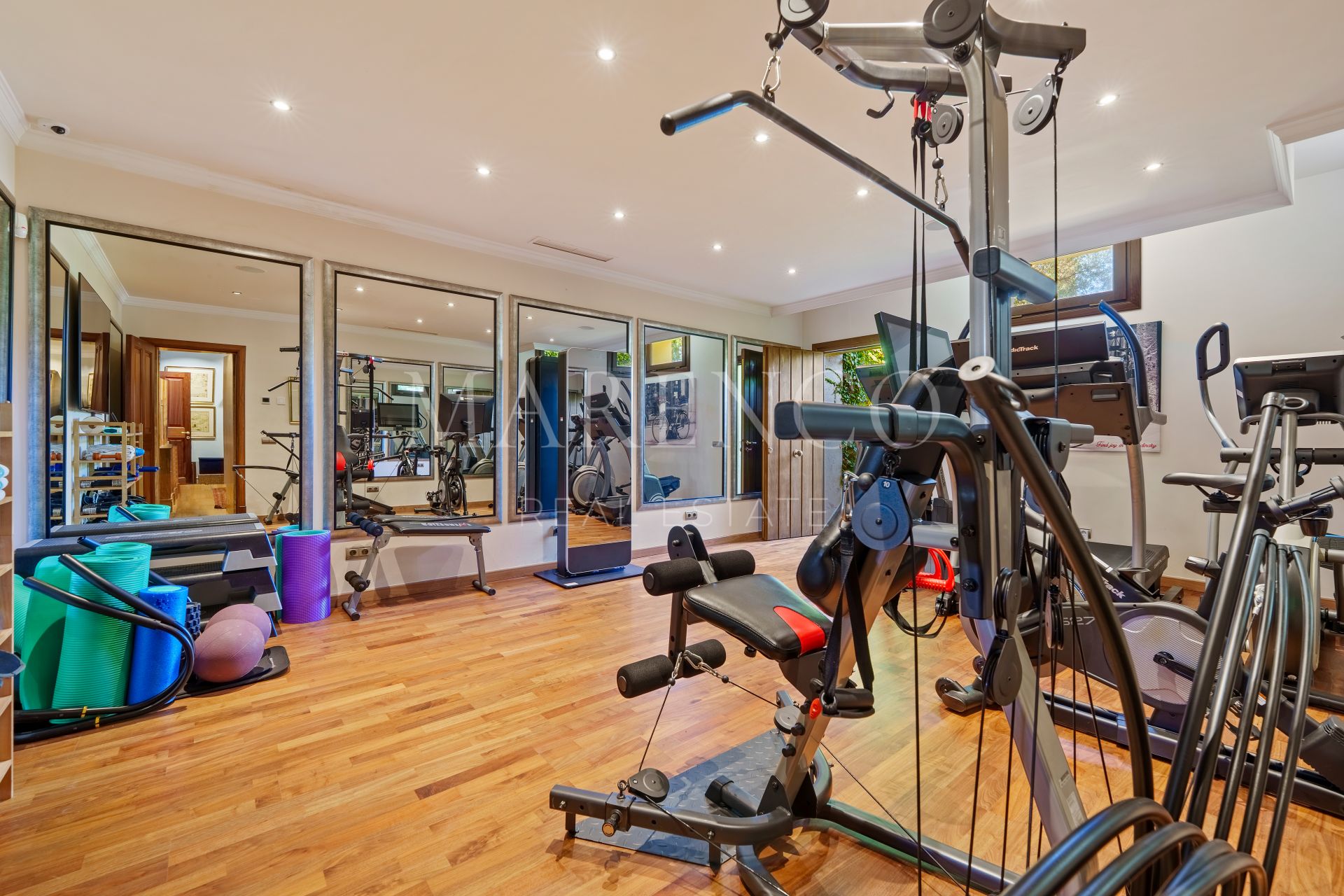 With a built area of 712 m² and a generous plot of 1,811 m², this residence offers exceptional living space. It consists of six spacious bedrooms, seven bathrooms, and two guest toilets, ensuring more than enough space for the whole family and their guests. The impressive master bedroom stands out for its size and privacy, while the villa’s design favors open, flowing spaces. The property’s basement includes a cinema room, wine cellar, gym, and office, perfect for entertainment and relaxation.
