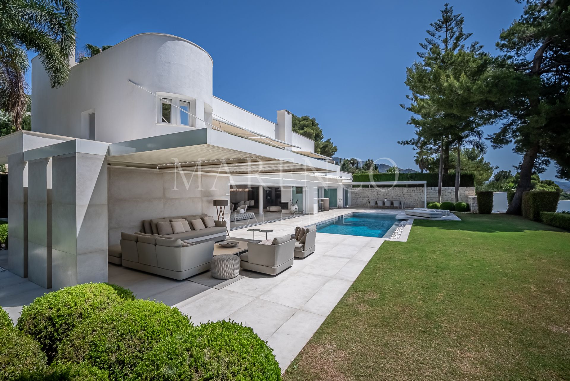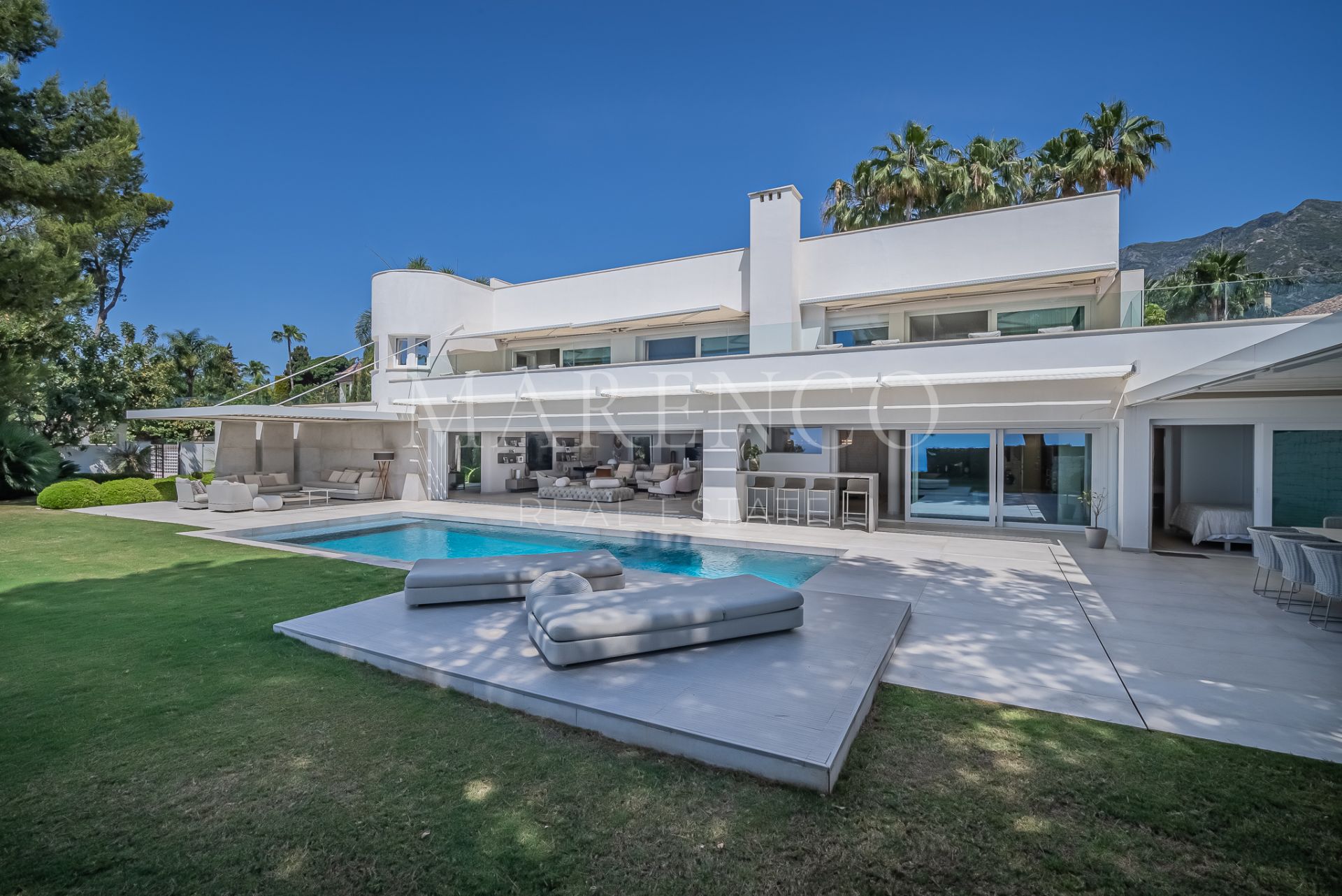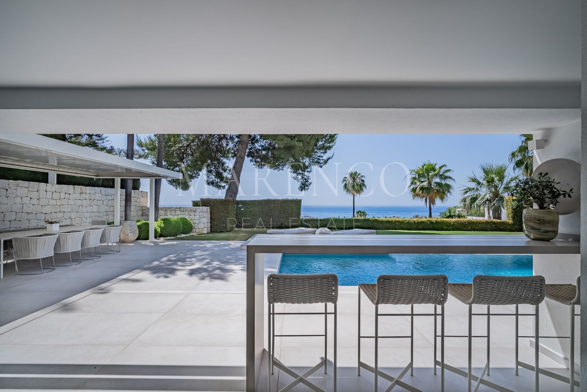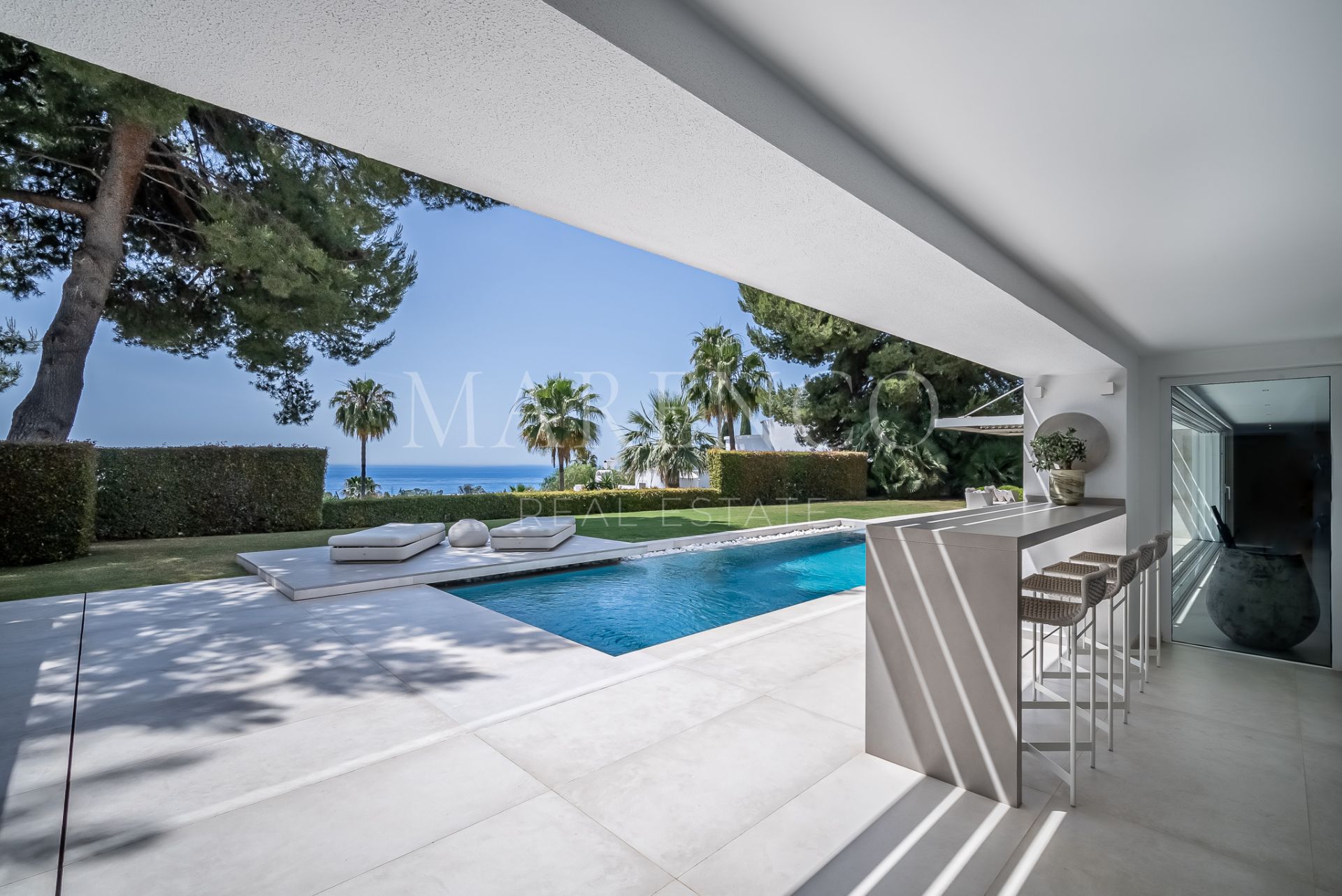 This spectacular modern design Villa located on the Golden Mile with straight lines and its white facade has been designed for those seeking a quiet lifestyle with guaranteed privacy.