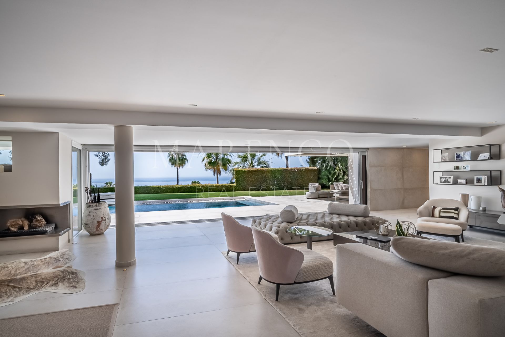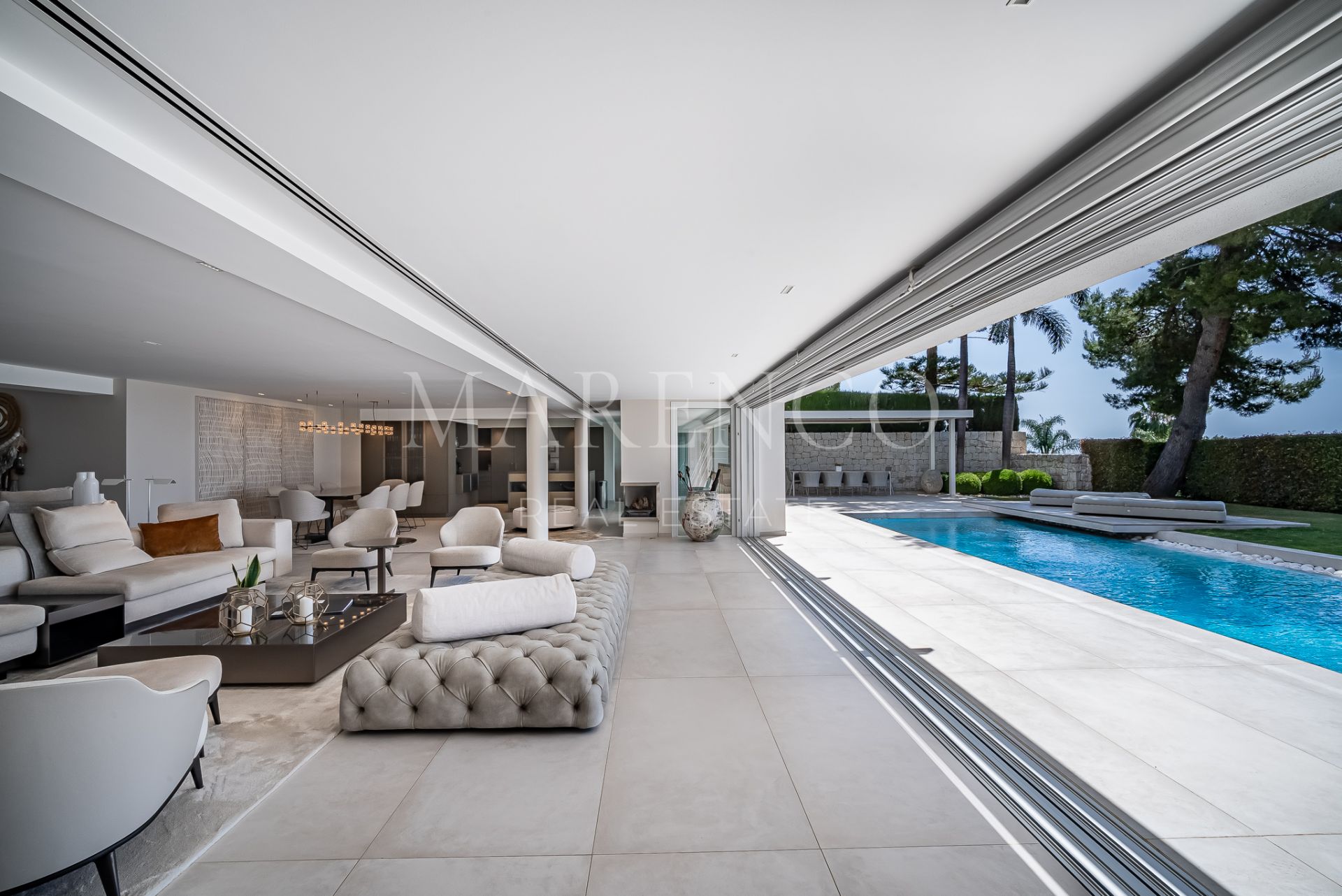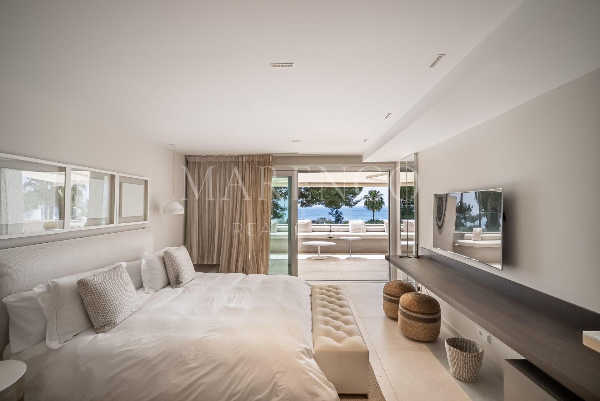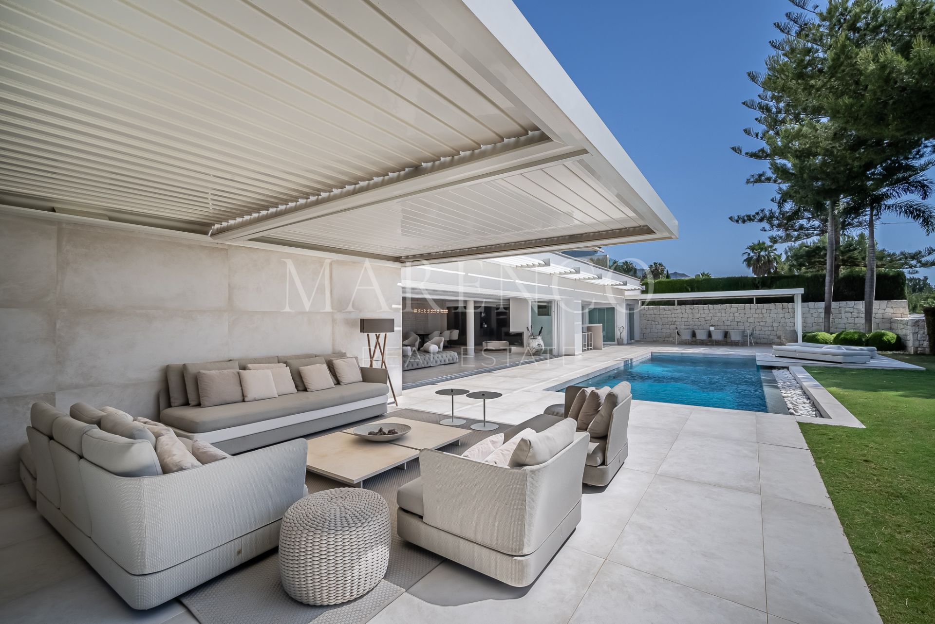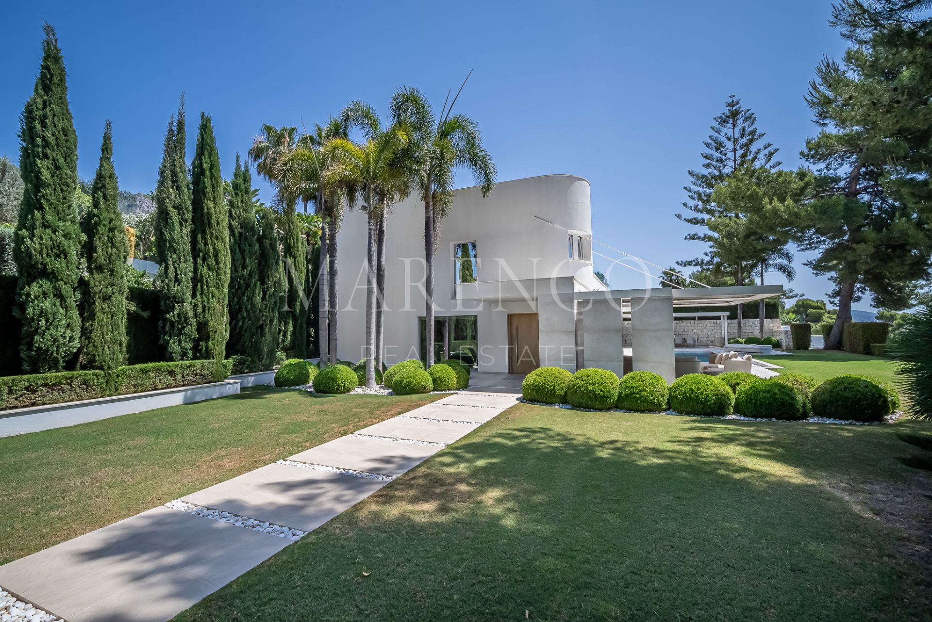 This spectacular modern design Villa located on the Golden Mile with straight lines and its white facade has been designed for those seeking a quiet lifestyle with guaranteed privacy.