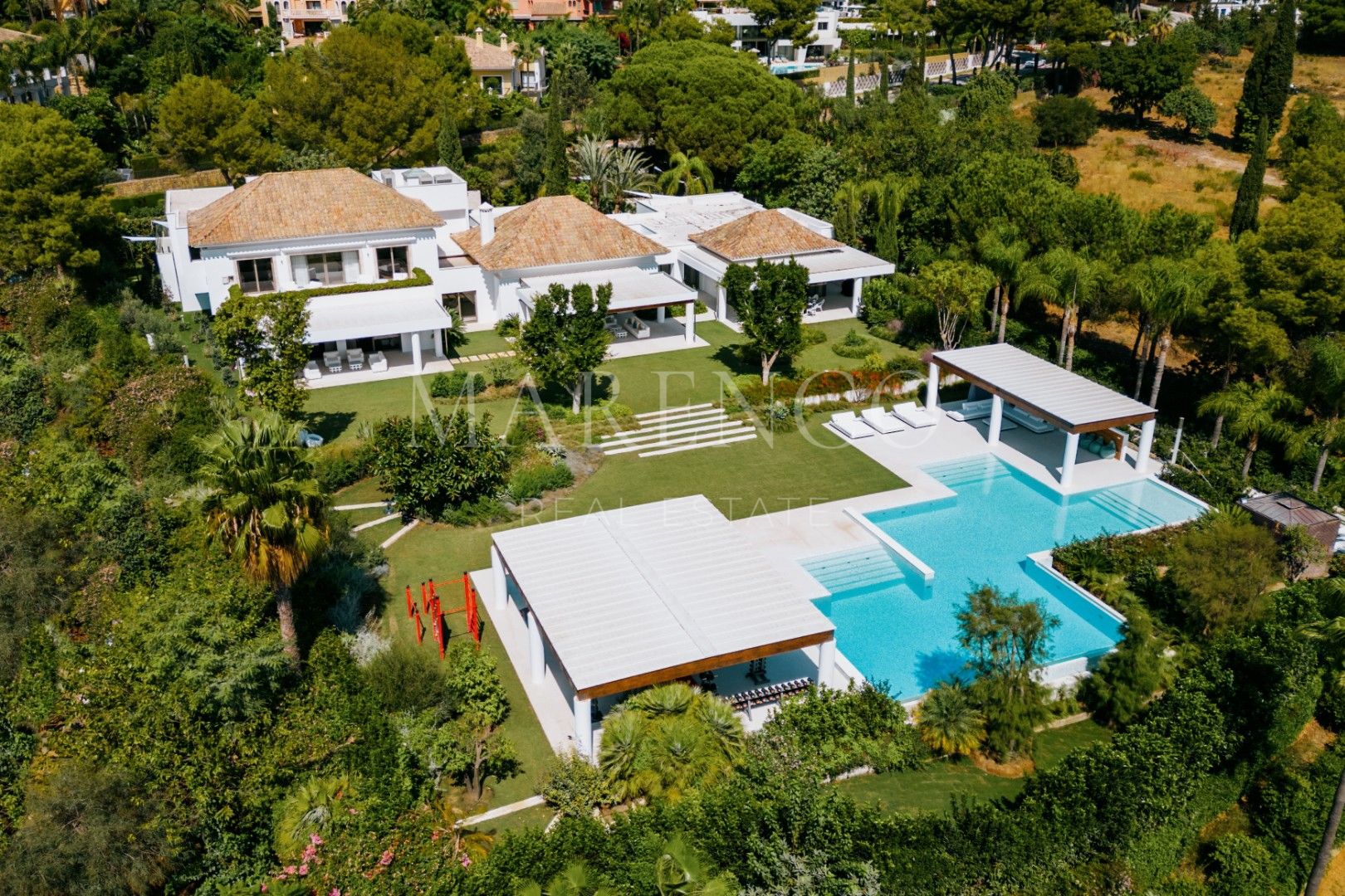 Set on a stunning 4980 m² plot in the foothills of majestic mountains, this south-facing residence extends over 2227 m², including splendid terraces embracing a contemporary and elegant design. Conceived for a truly select lifestyle, it is meticulously decorated and luxuriously appointed, blending seamlessly with the surrounding nature of Sierra Blanca, reflecting its essence with distinction and grace.