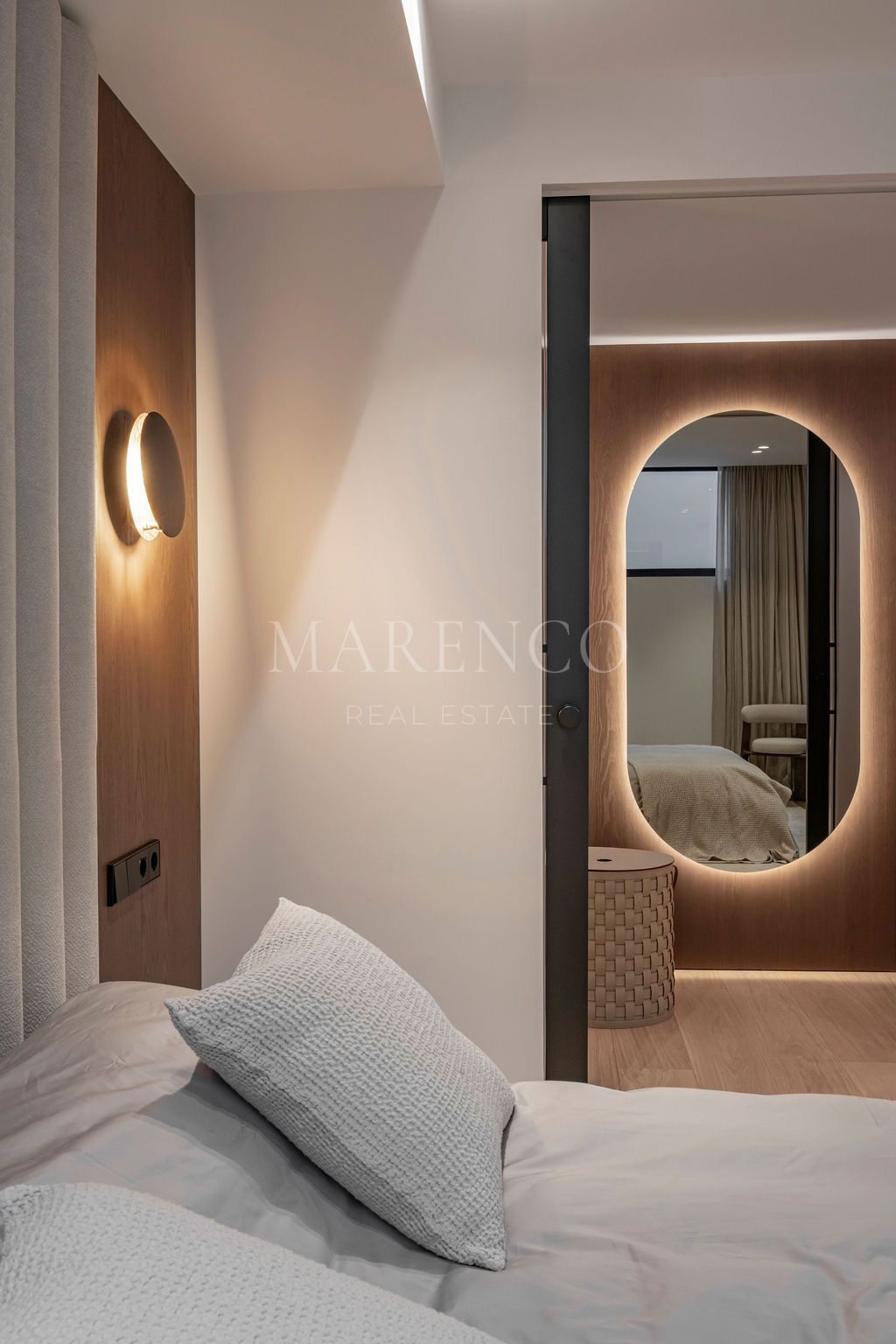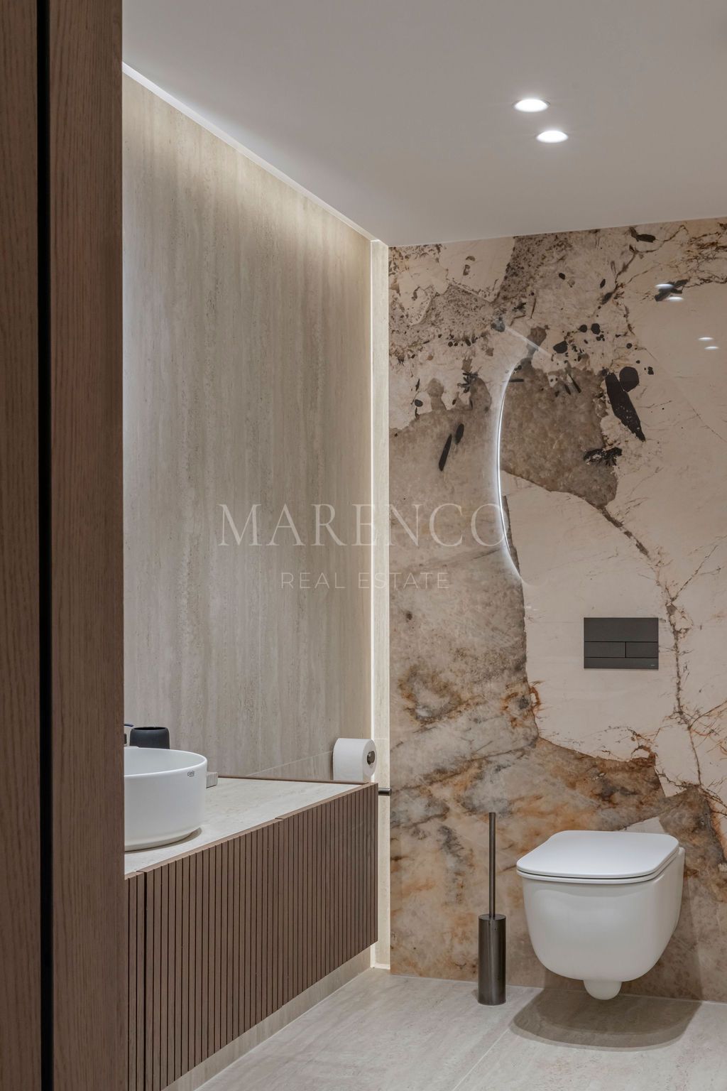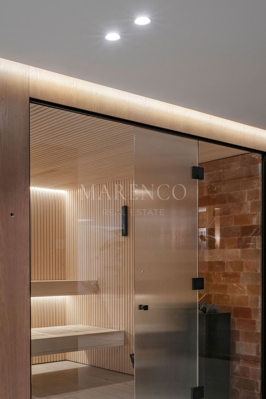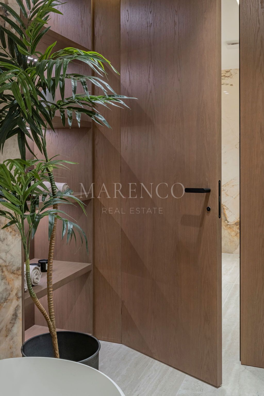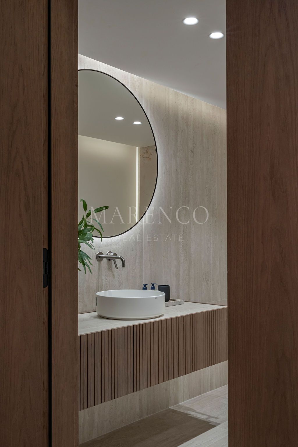 Notable features include a private rooftop solarium with breathtaking sea views, a fully landscaped garden, a luxurious heated pool, and a state-of-the-art smart home system for comfort at your fingertips. Additionally, this villa boasts a spacious garage, offering ample storage space.