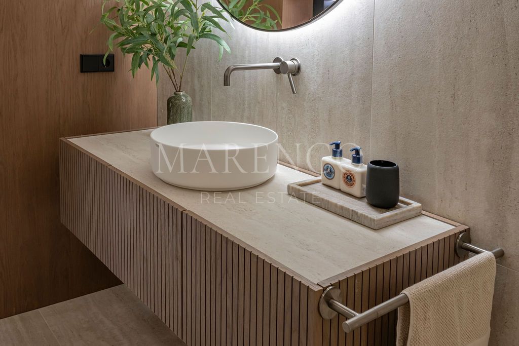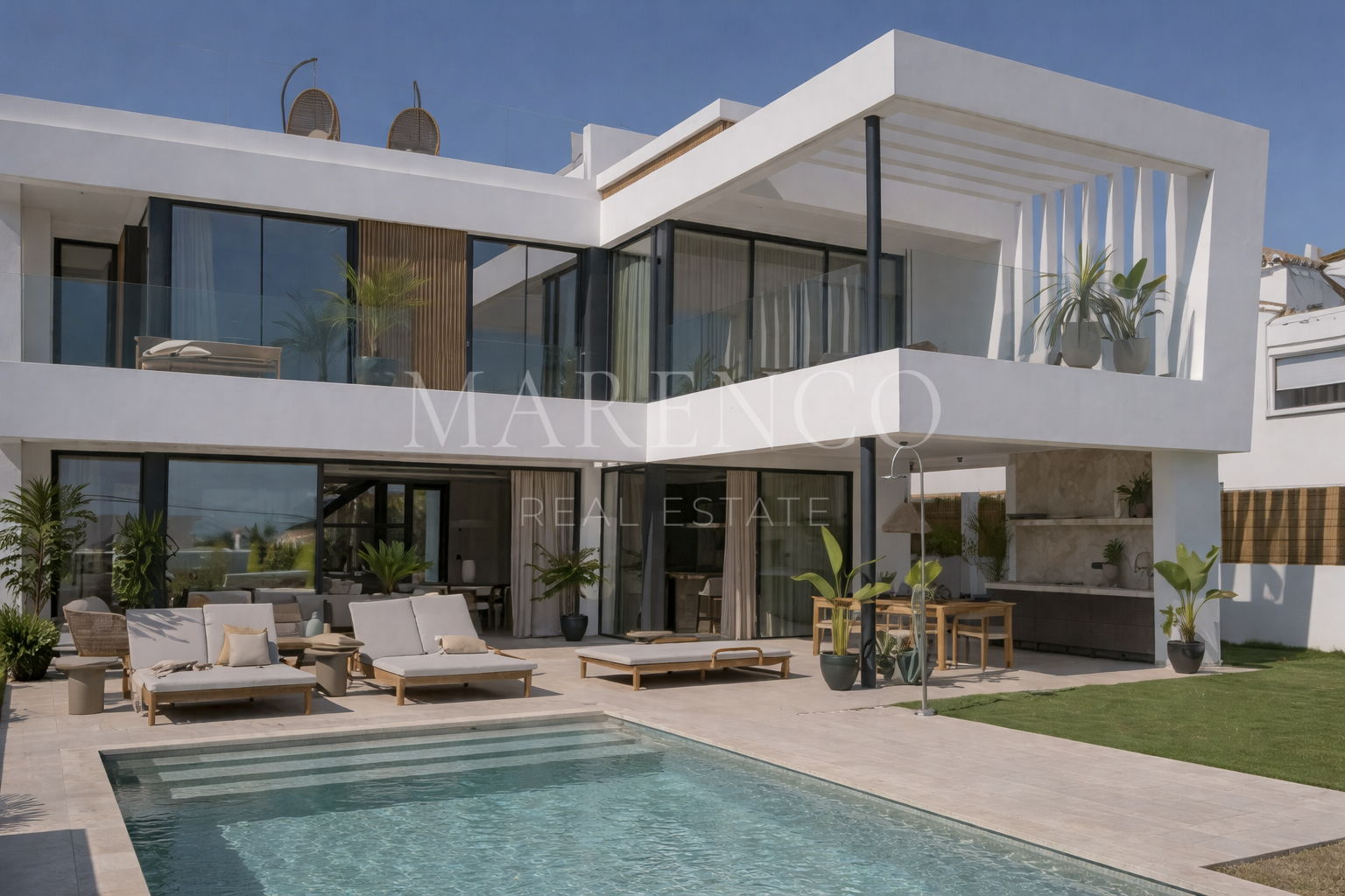 Step into your dream lifestyle with this contemporary, luxury villa located in the prestigious Marbesa area of Marbella East. Just a stone’s throw from the beach and local restaurants, and only minutes away from the vibrant Marbella town centre, this 4-bedroom, 4-bathroom residence offers the ultimate in modern living. The villa’s striking architecture blends natural stone, wood-effect finishes, and lush landscaping, creating a seamless connection with the surrounding coastal views. Imagine relaxing on the expansive terraces, enjoying the panoramic vistas and gentle Mediterranean breeze, making every day feel like a vacation.