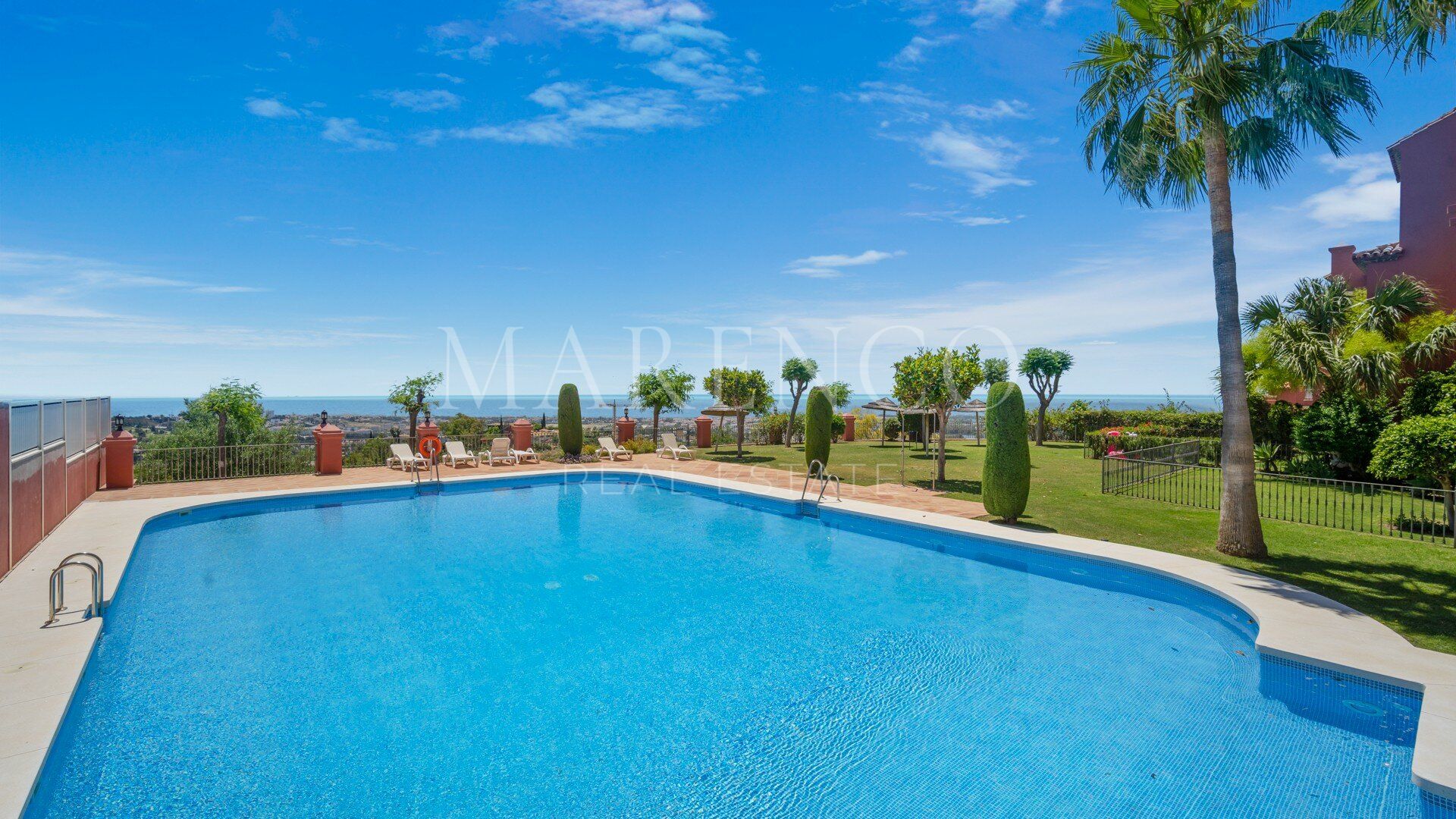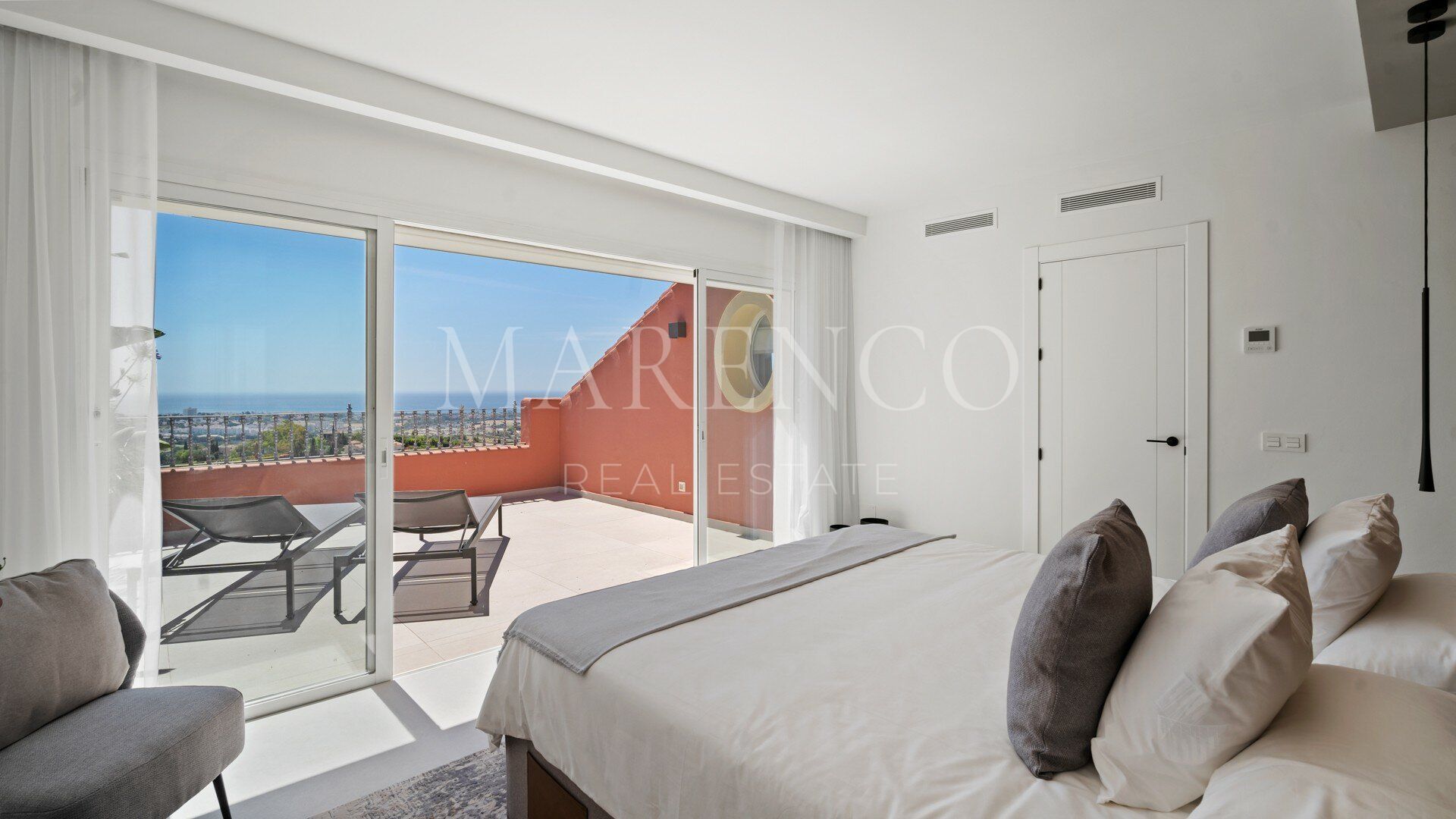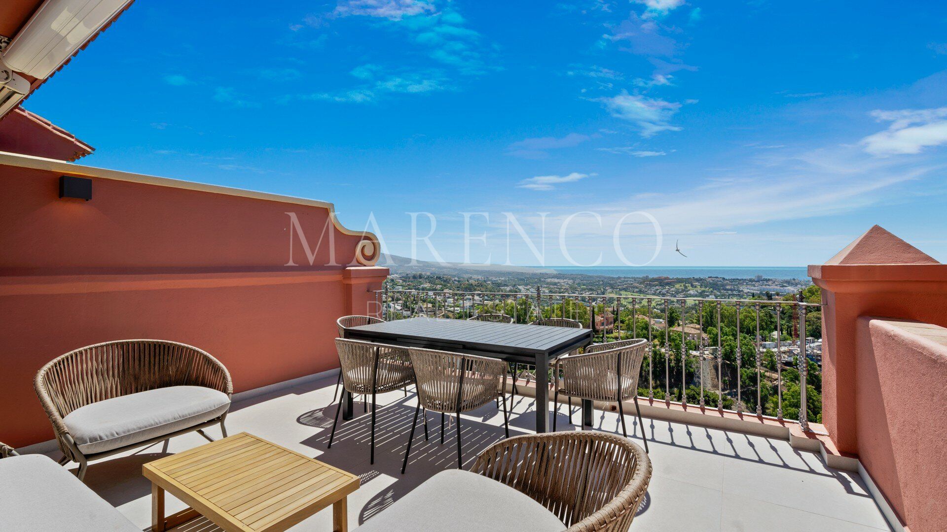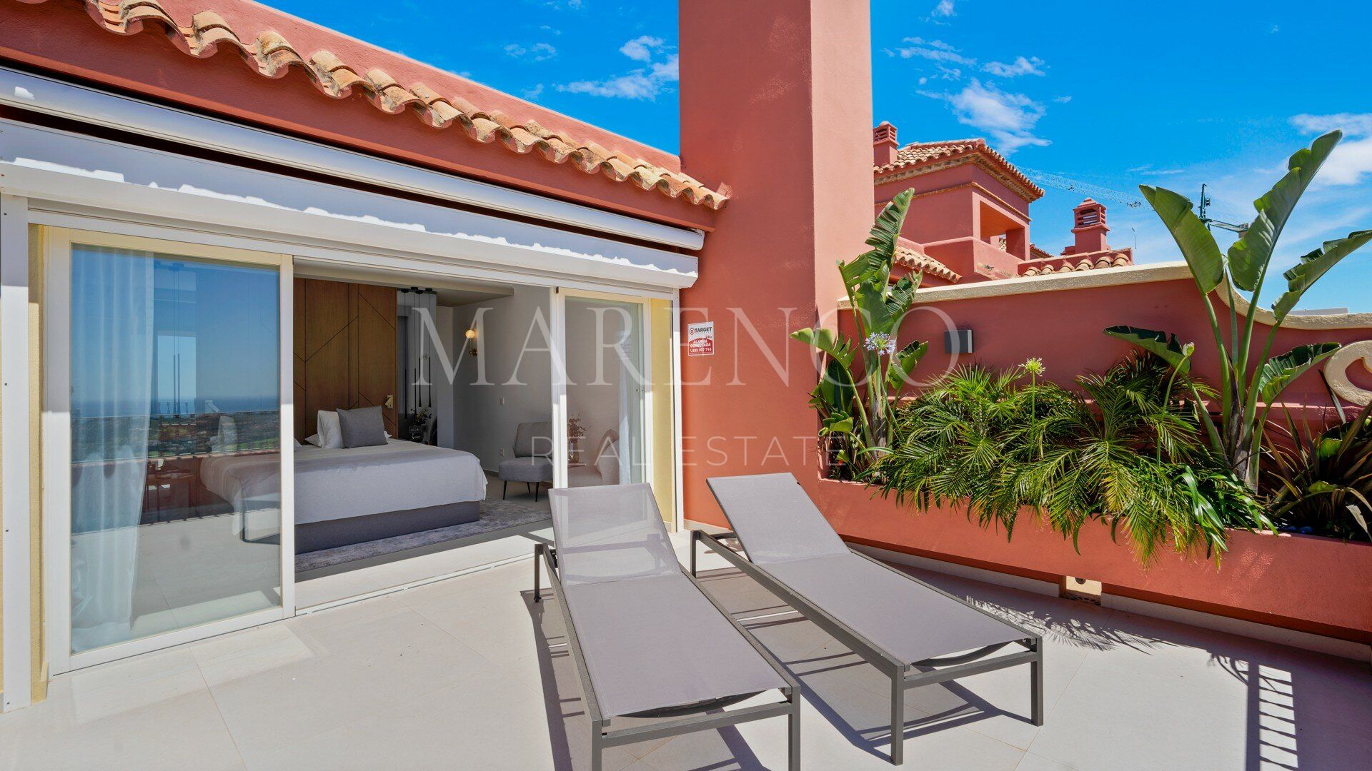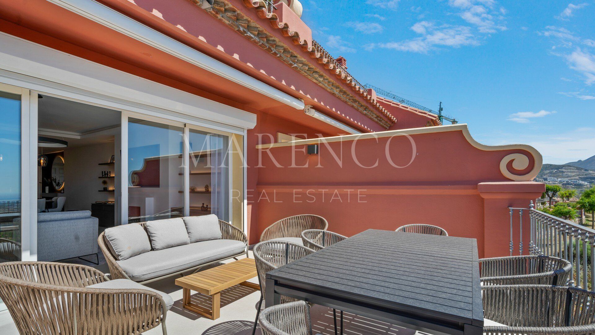 This property is a duplex penthouse located in the exclusive urbanization of Monte Halcones in Benahavis. Only a 10-minute drive to Marbella town and within walking distance of restaurants, shops, and golf courses.