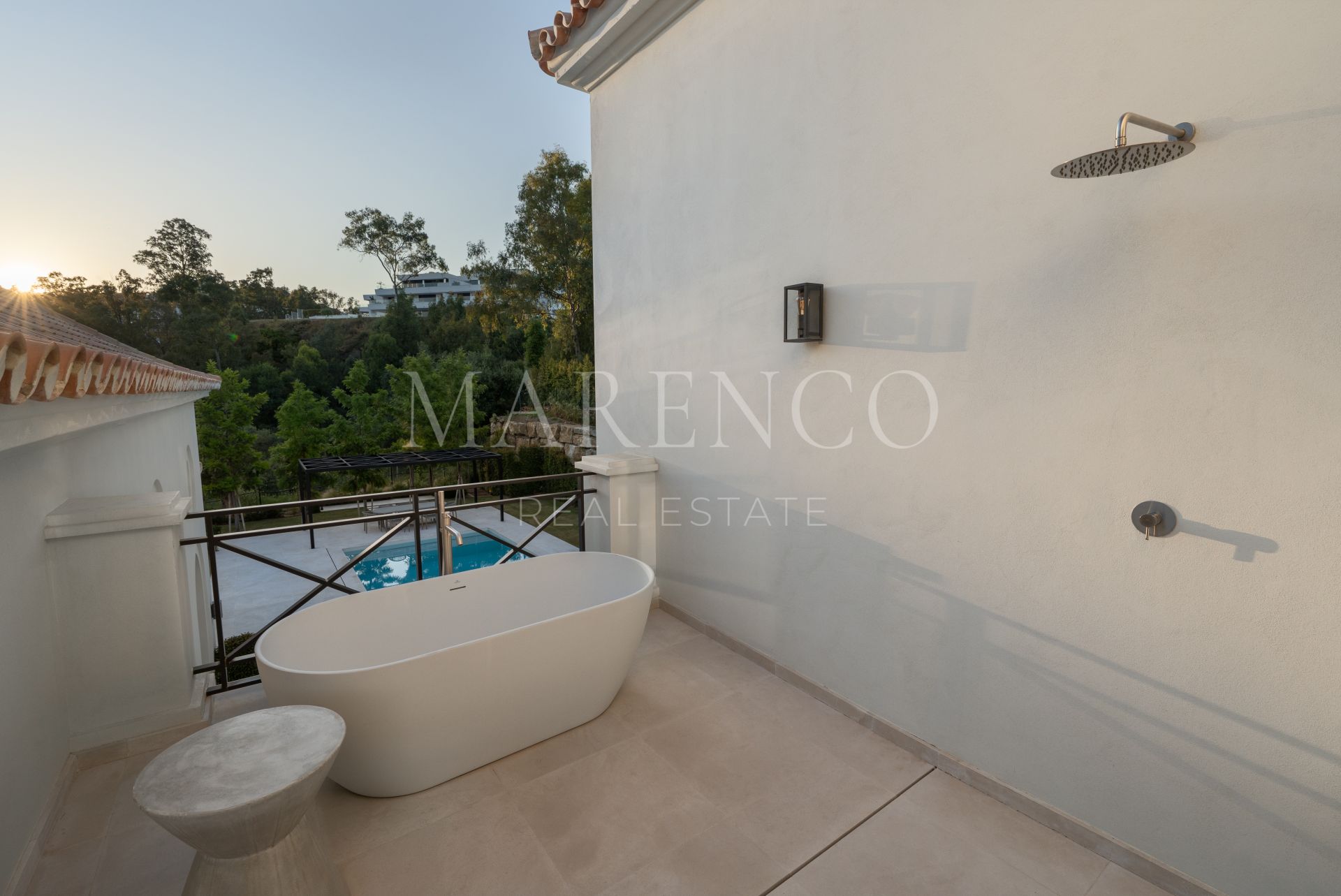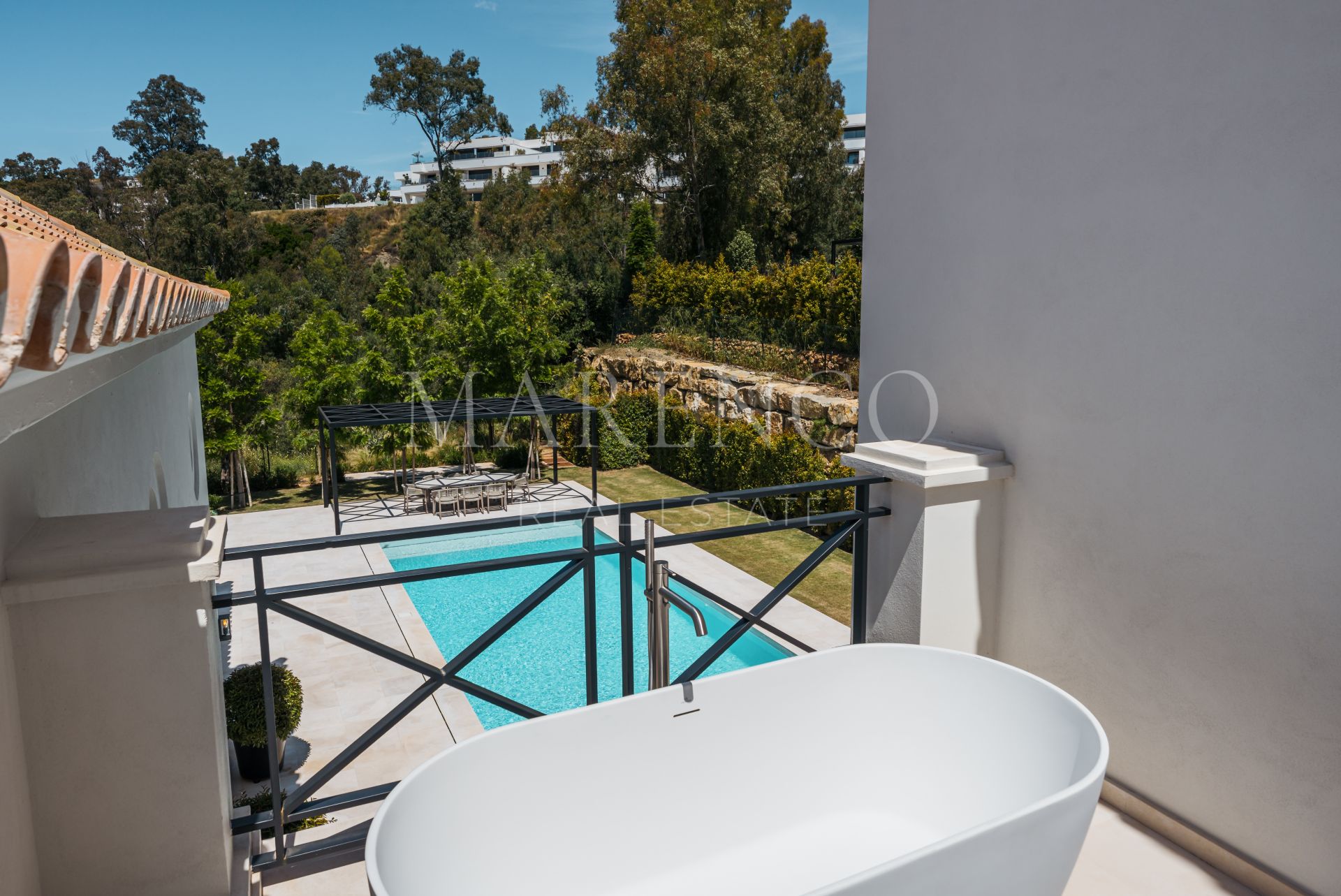 Villa Valora is an exceptional property for sale in La Cerquilla, one of the most prestigious neighborhoods in Nueva Andalucía’s renowned Golf Valley. Completed in 2023, this newly built villa combines modern design with classical influences inspired by French provincial architecture. With 475 square meters of built space and a refined 78-square-meter terrace, it offers generous areas for relaxation and outdoor dining.