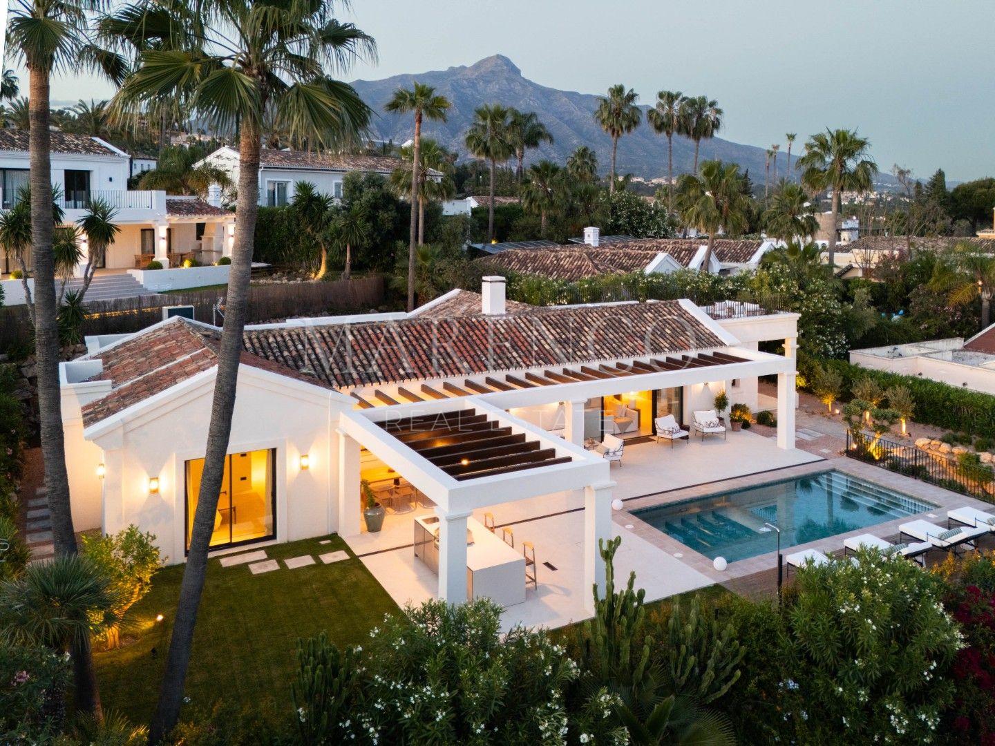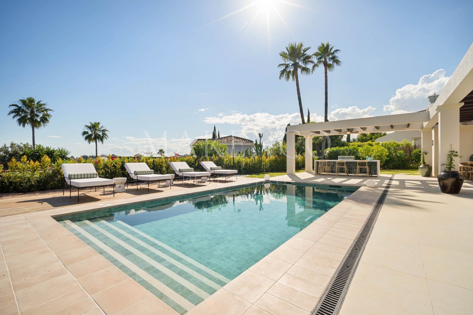 Outside, manicured gardens surround multiple alfresco living zones, ideal for entertaining or unwinding in complete seclusion. A rooftop terrace captures stunning views, while a peaceful courtyard with a water feature offers an intimate retreat. With four spacious bedrooms, including a serene master suite with garden access, and luxurious amenities throughout, Casa Olivo is a rare fusion of sophisticated living and relaxed coastal charm in one of Marbella’s most desirable locations.
