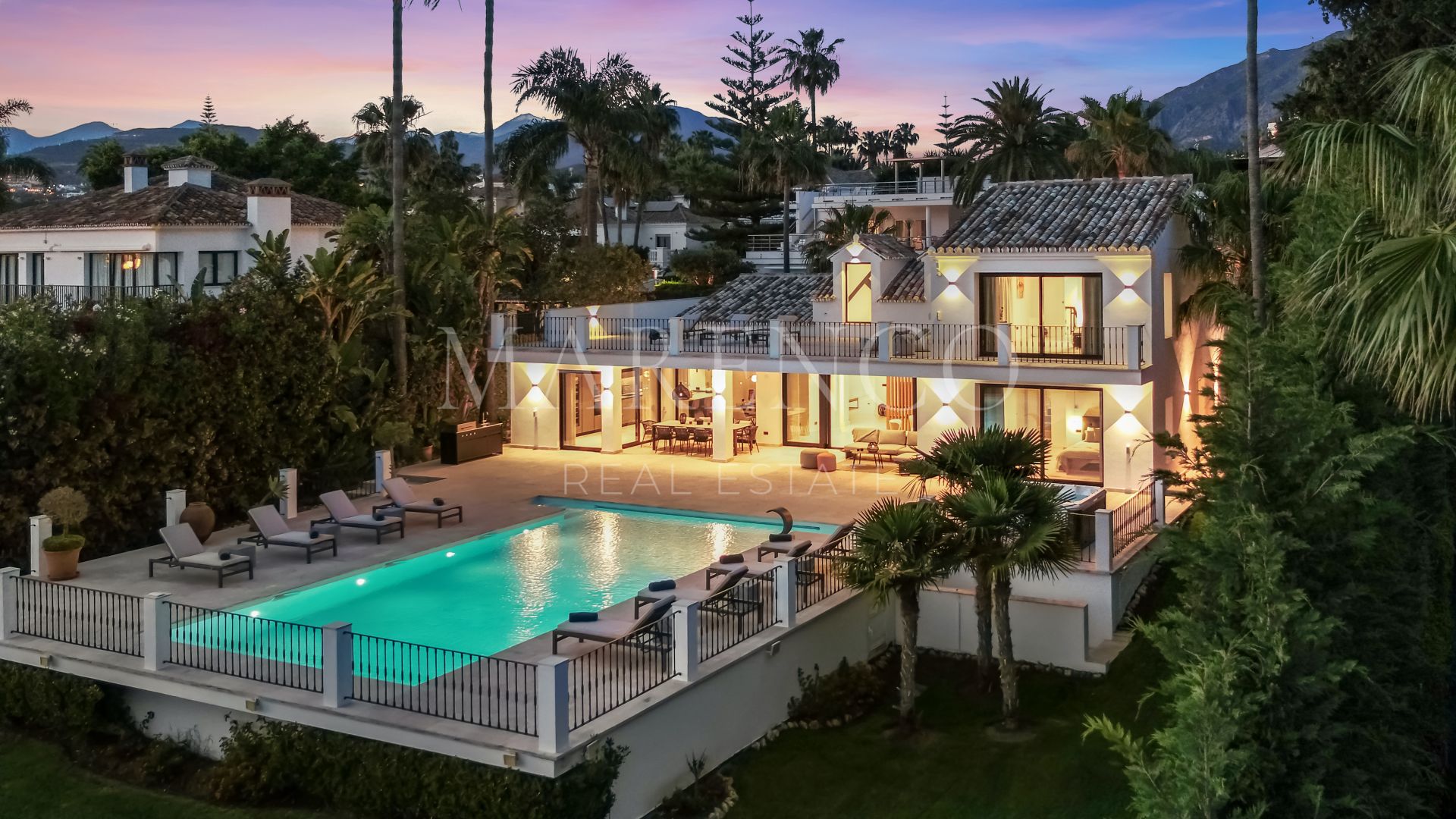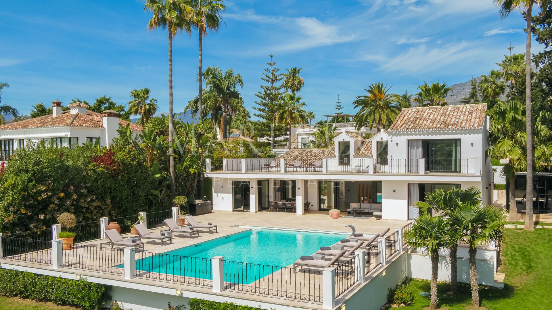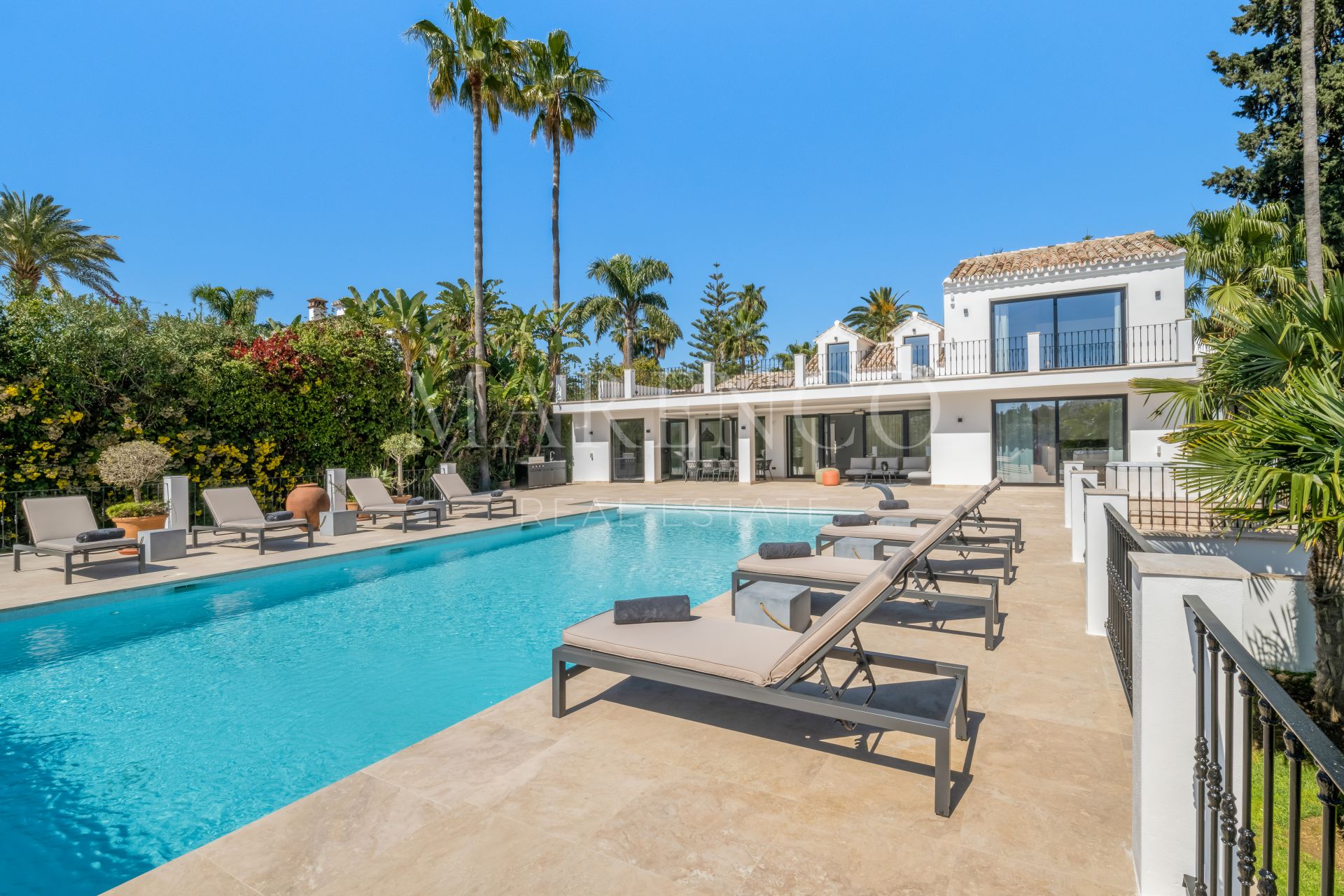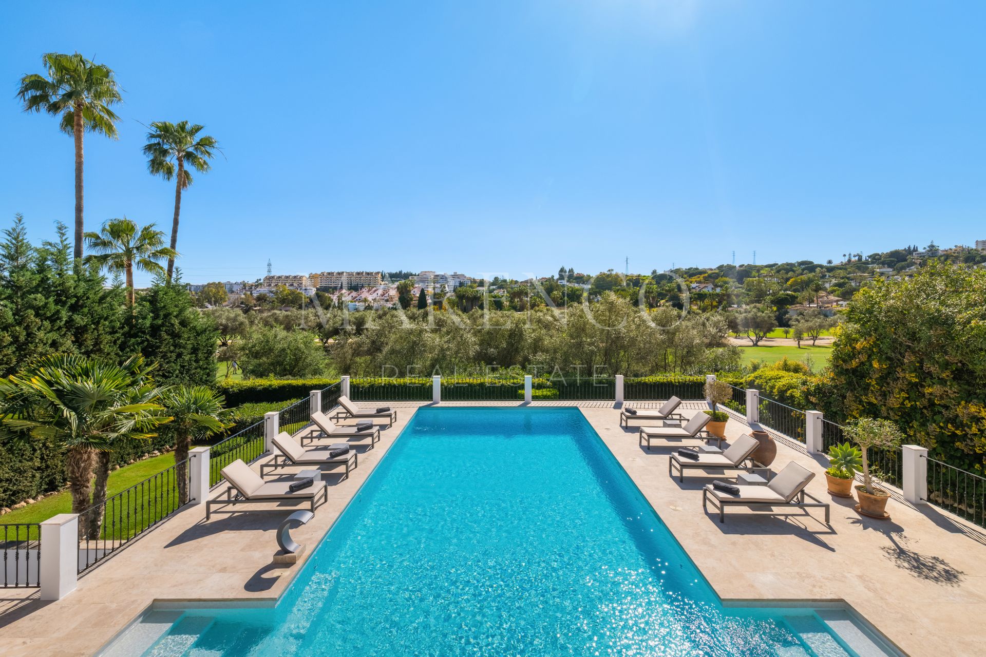 This beautiful villa is located in the Golf Valley in Nueva Andalucia. An ideal location for golf lovers, as it is front line to the Las Brisas golf course and only a few minutes away from different golf courses. Within the Parcelas del Golf community with 24-hour security, privacy, and tranquillity are guaranteed. Only a few minutes’ drive to Puerto Banus and Marbella town.