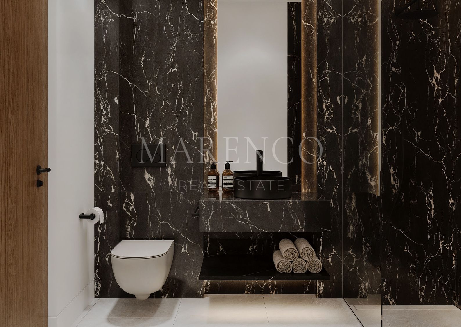 Expansive terraces allow for outdoor dining and leisure, while the lush landscaping enveloping the property guarantees privacy.
