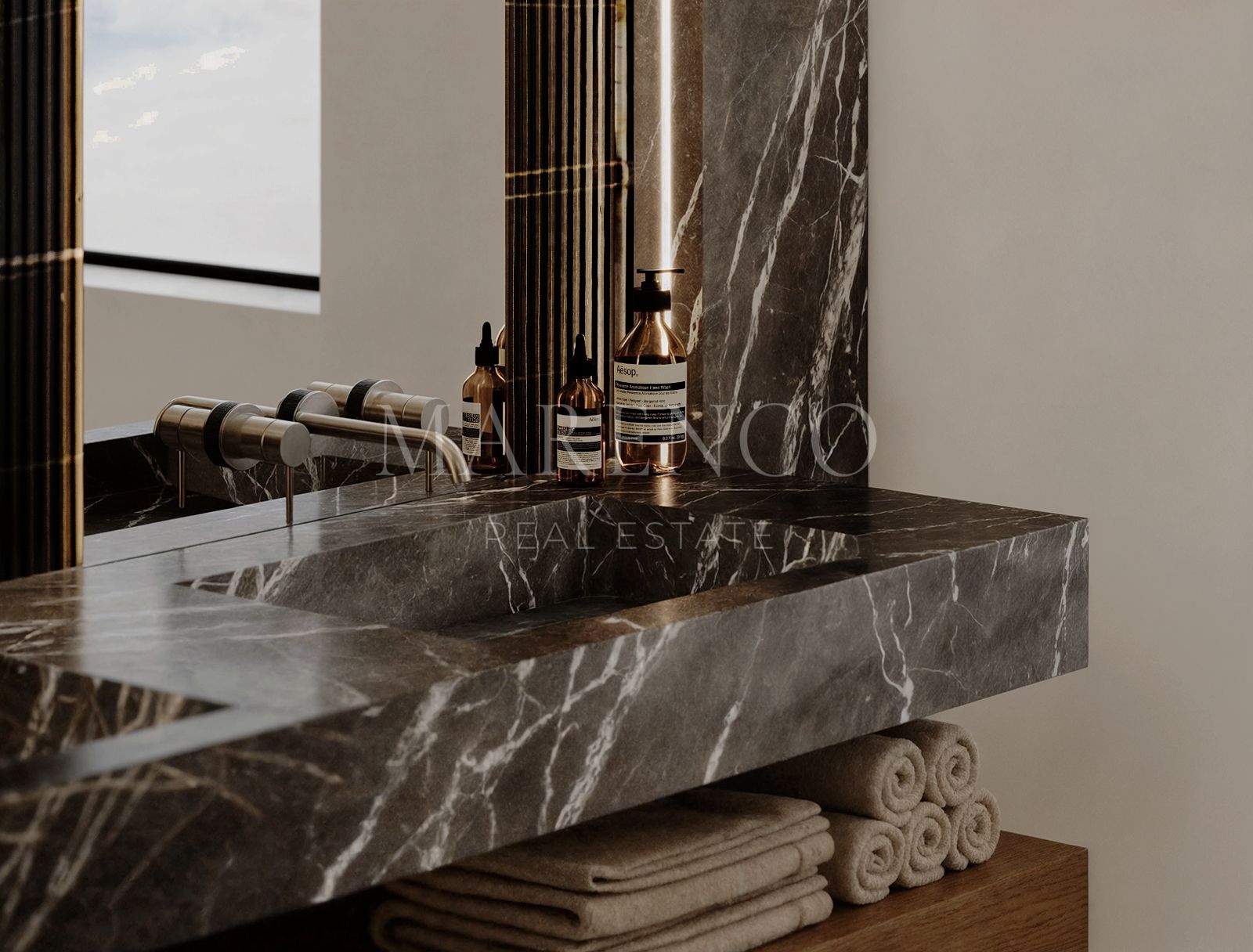 Crafted by the renowned Tobal Arquitectos architecture studio, Villa Celestia mesmerises with its modern flair and flawless craftsmanship. High ceilings amplify the sense of spaciousness and light throughout the residence. With sweeping views of the sea and mountains, the villa’s privileged position in Rocio de Nagüeles offers a picturesque backdrop for luxurious coastal living. Villa Celestia seamlessly blends contemporary elegance and unmatched comfort, promising an unparalleled lifestyle for its residents.