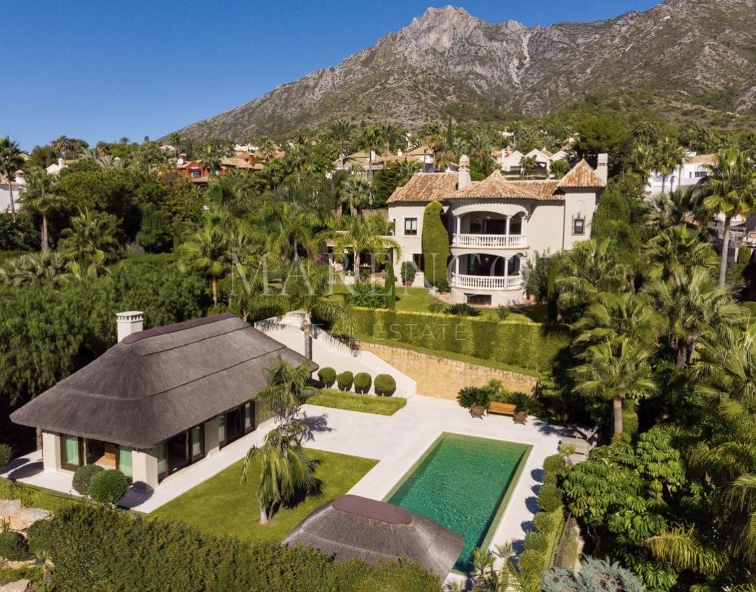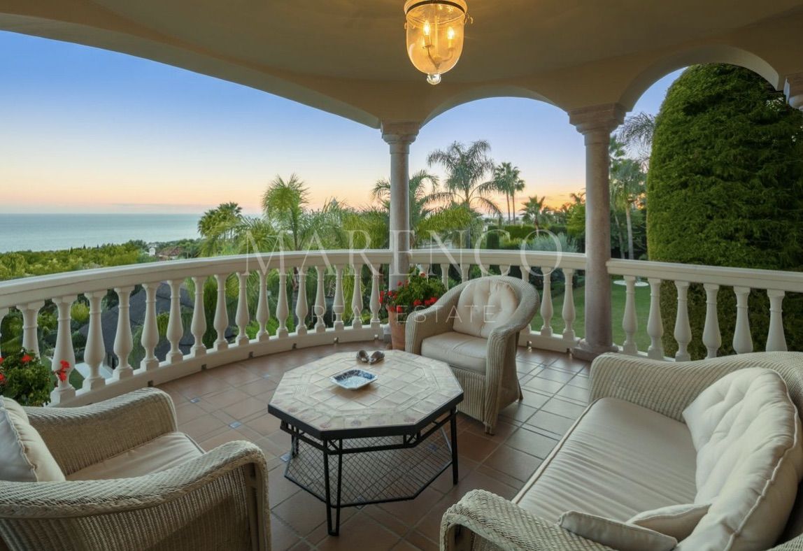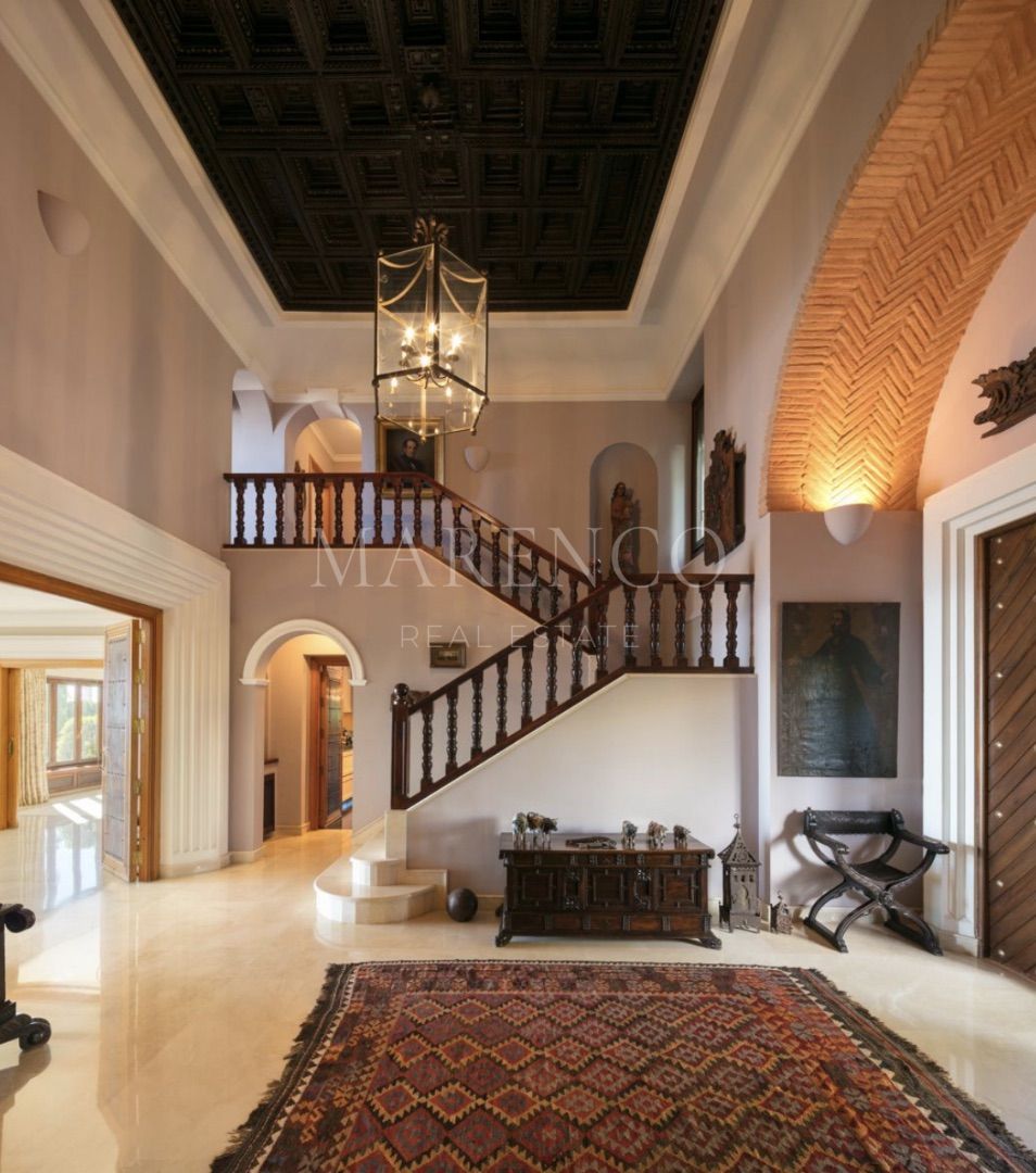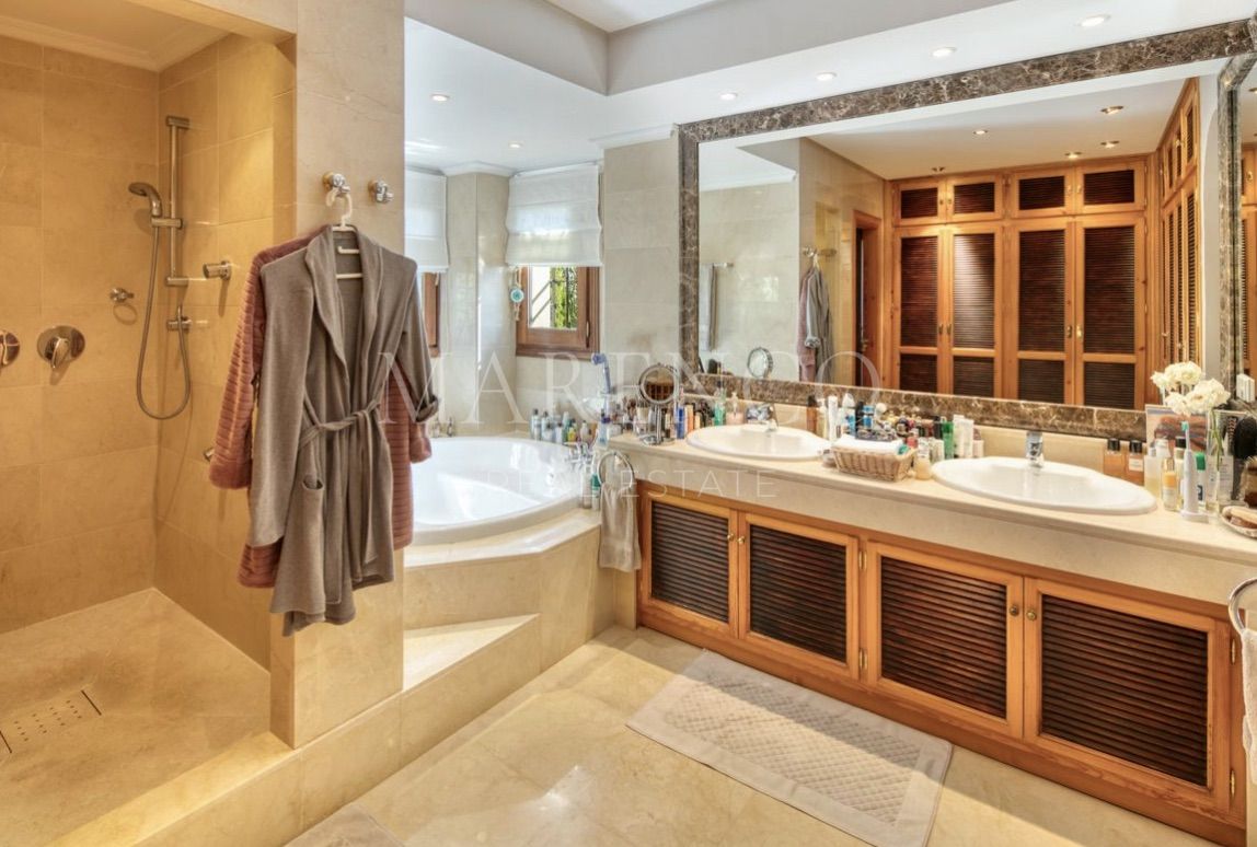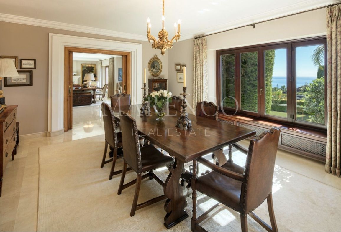 Magnificent classic style villa situated in one of the most prestigious locations on the Costa del Sol, Sierra Blanca, which is located on Marbella’s coveted Golden Mile. Thanks to its south orientation, it offers unrivaled panoramic views of the glittering Mediterranean Sea, which stretches as far as the eye can see. The sense of spaciousness and tranquillity experienced from this location is truly unparalleled. Just 10 minutes from the beach and marina.