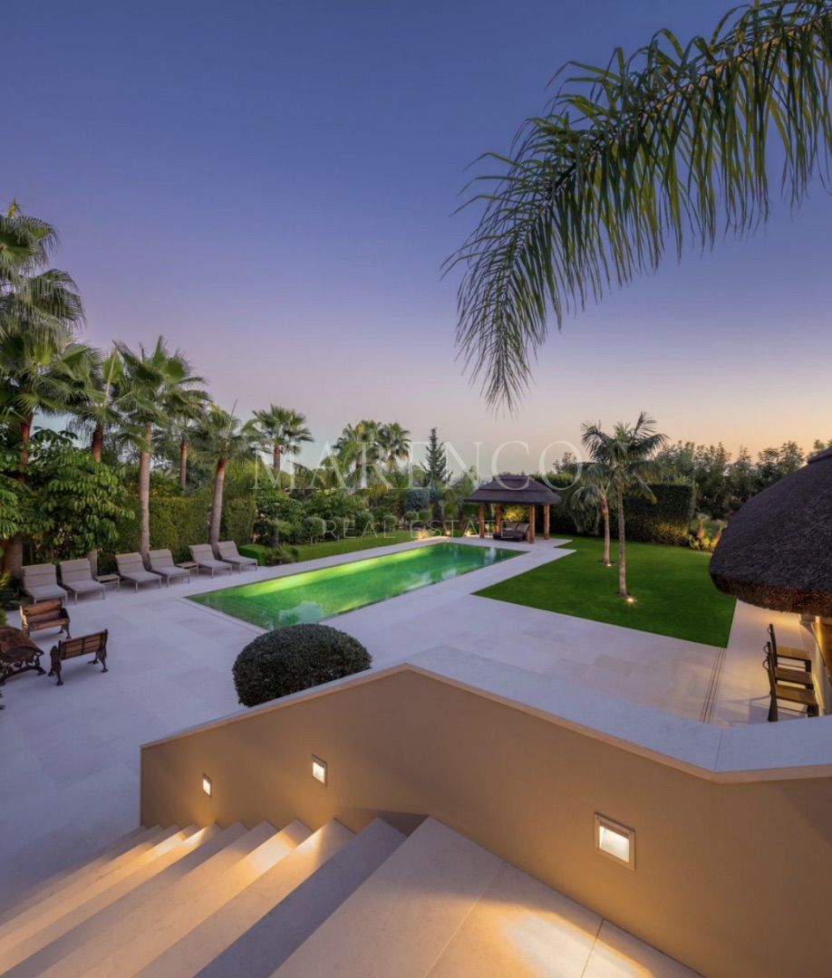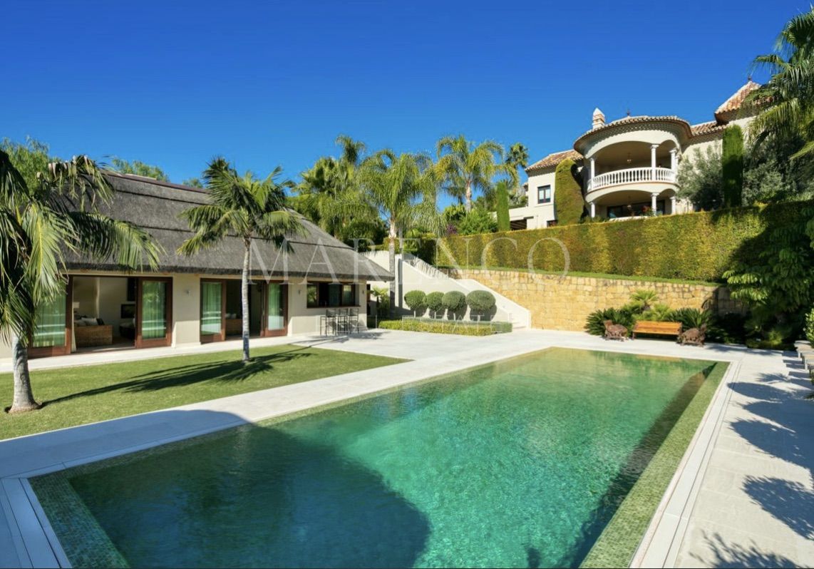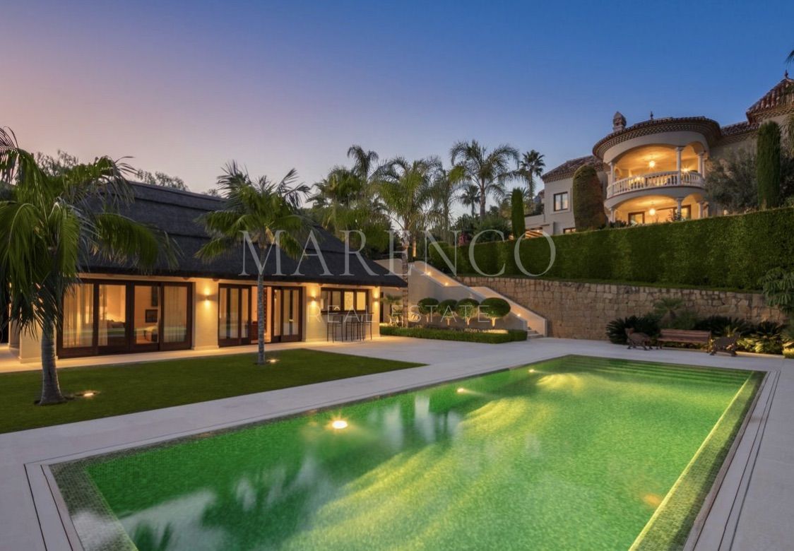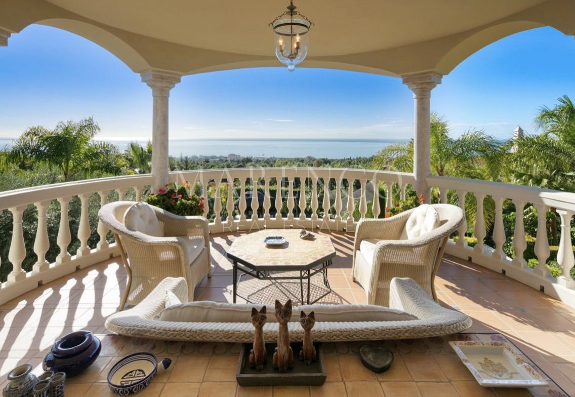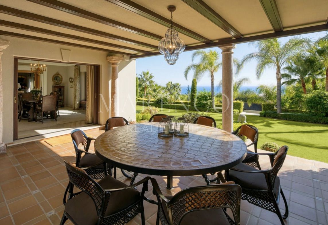 Magnificent classic style villa situated in one of the most prestigious locations on the Costa del Sol, Sierra Blanca, which is located on Marbella’s coveted Golden Mile. Thanks to its south orientation, it offers unrivaled panoramic views of the glittering Mediterranean Sea, which stretches as far as the eye can see. The sense of spaciousness and tranquillity experienced from this location is truly unparalleled. Just 10 minutes from the beach and marina.