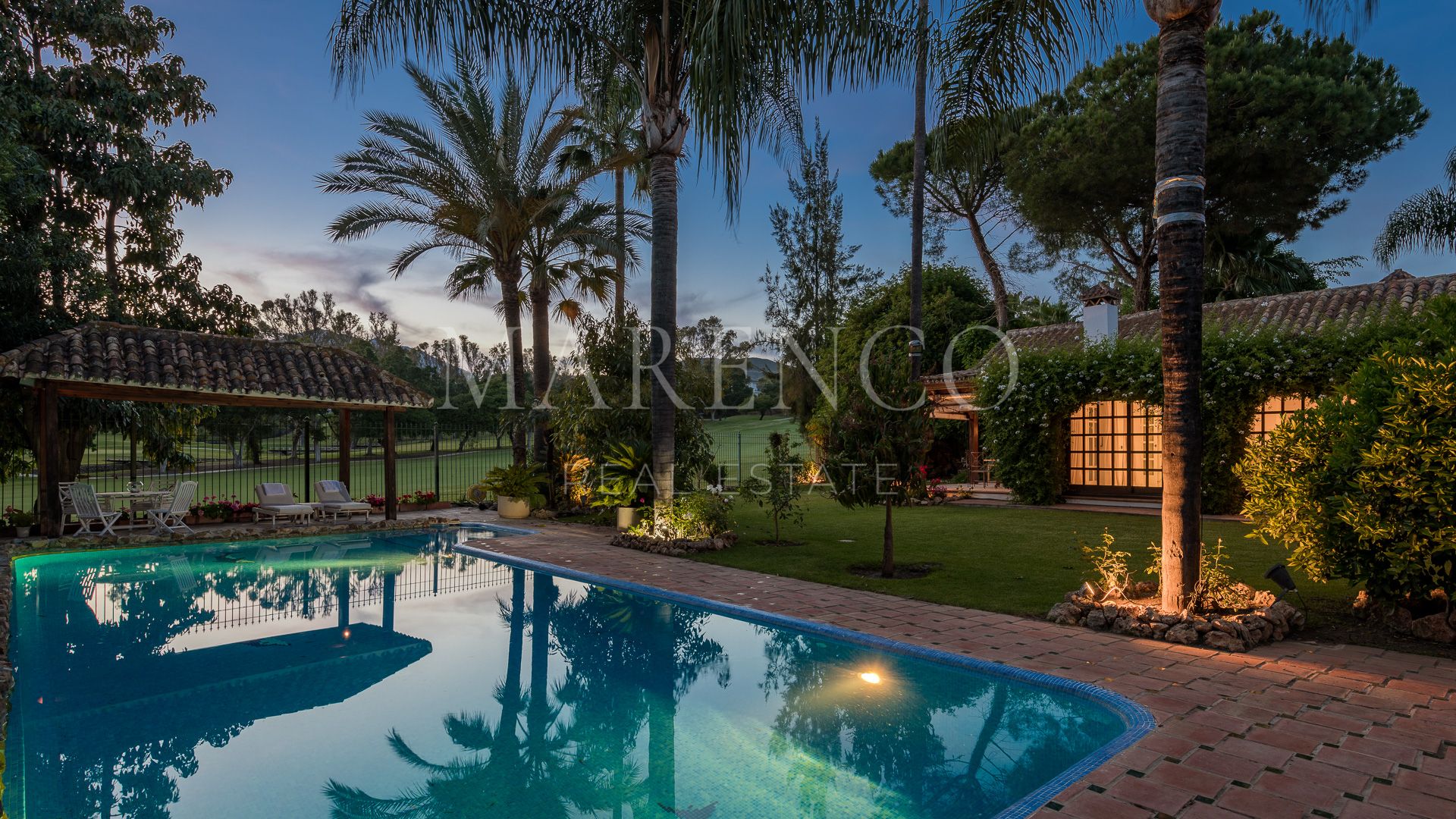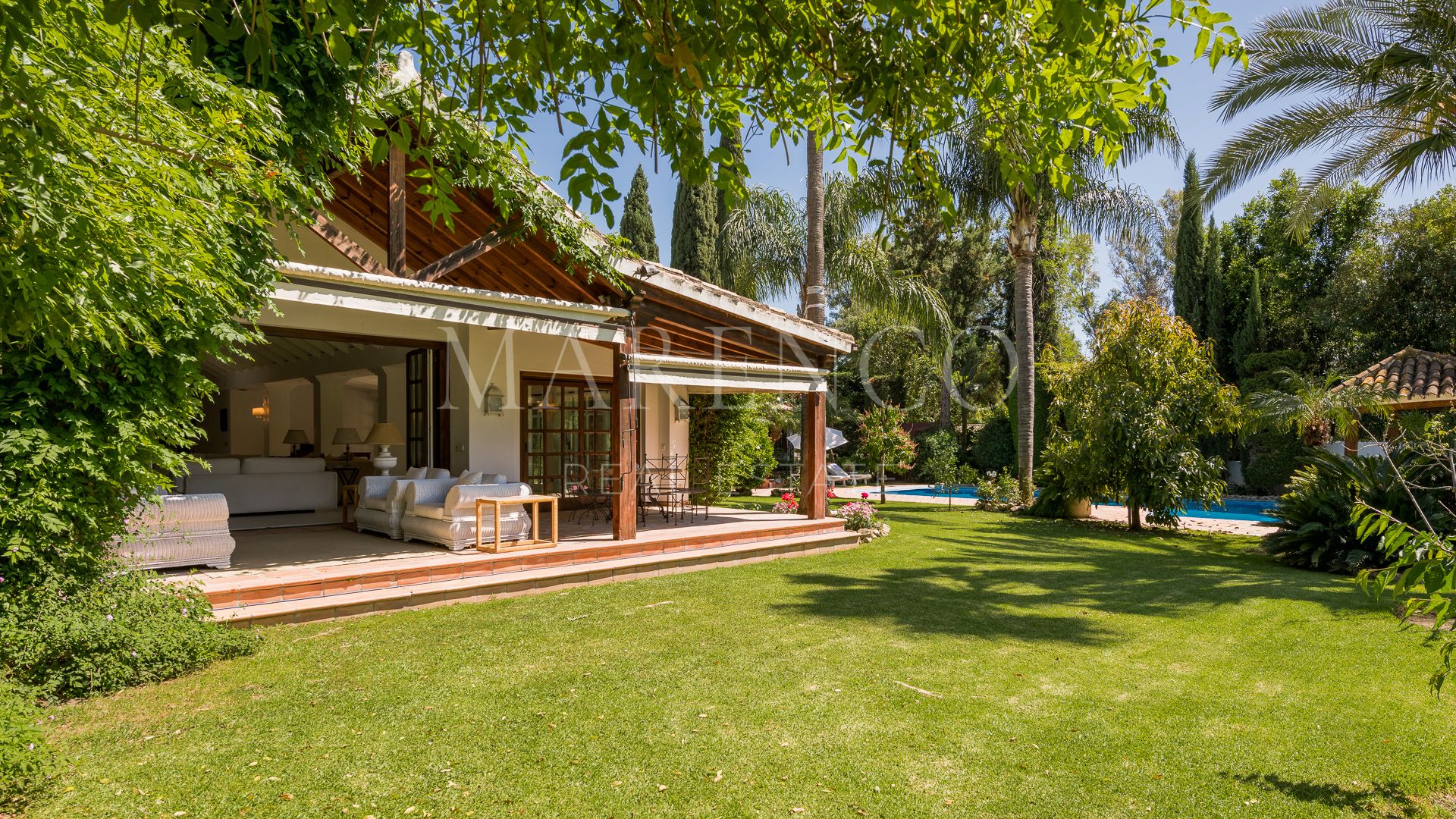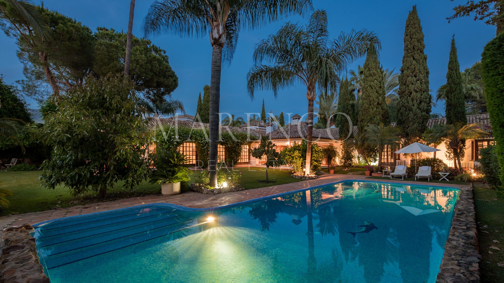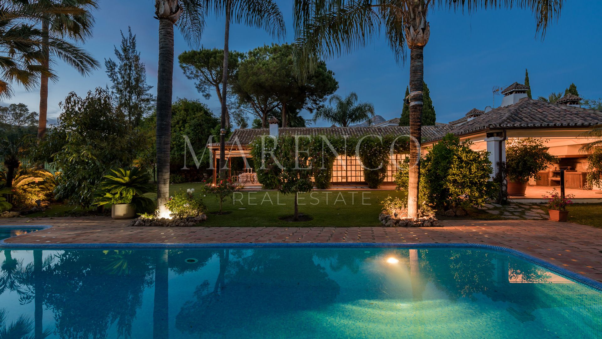 This exquisite villa is located in the heart of the Golf Valley in Nueva Andalucía, in a privileged residential area with privacy and very peaceful.