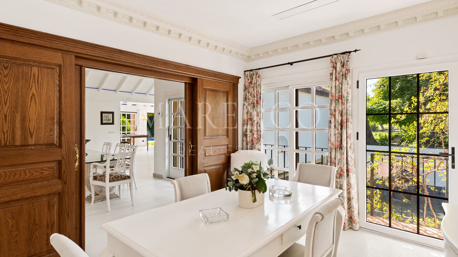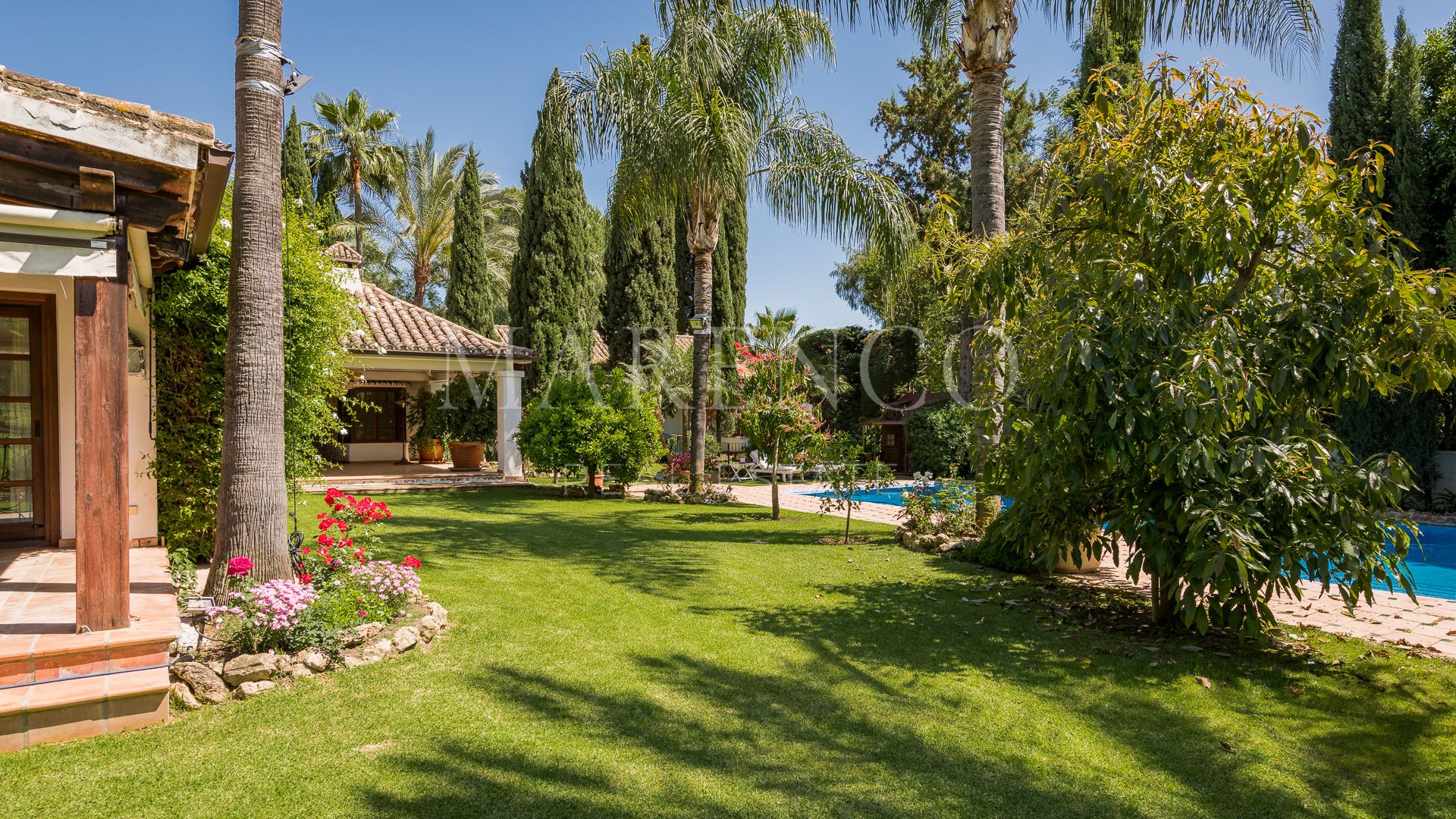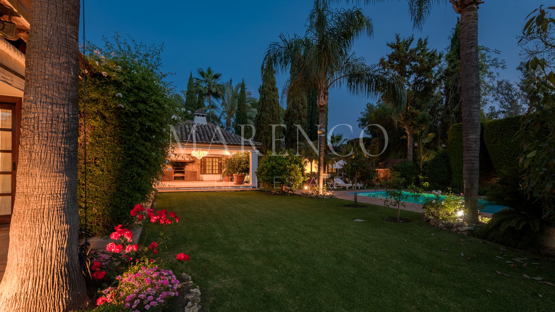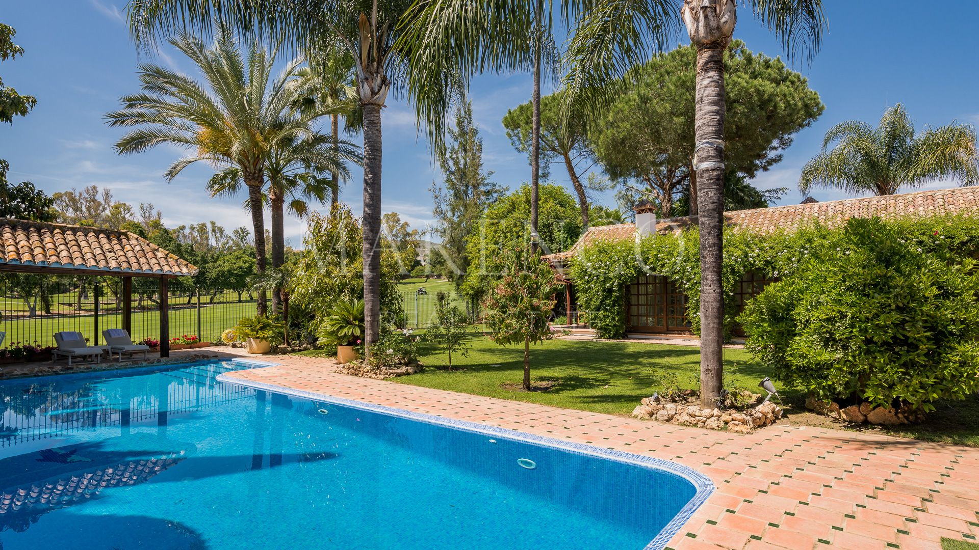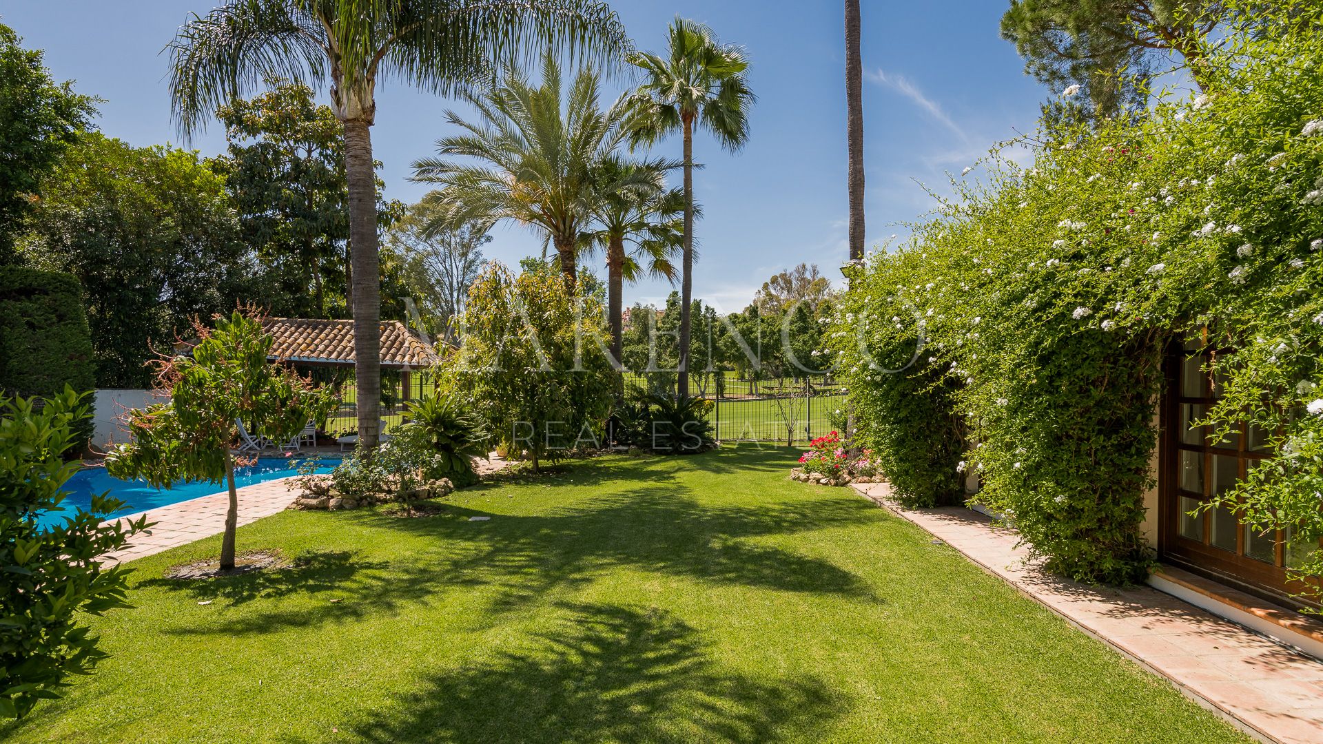 This exquisite villa is located in the heart of the Golf Valley in Nueva Andalucía, in a privileged residential area with privacy and very peaceful.