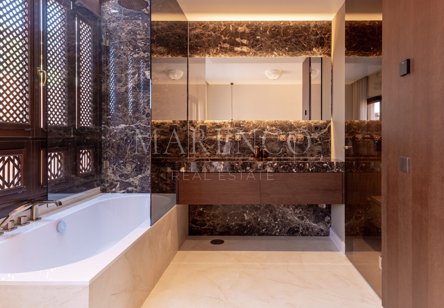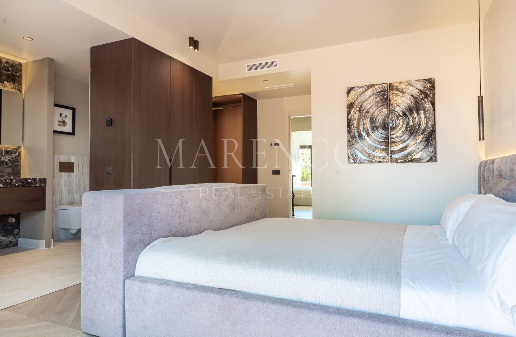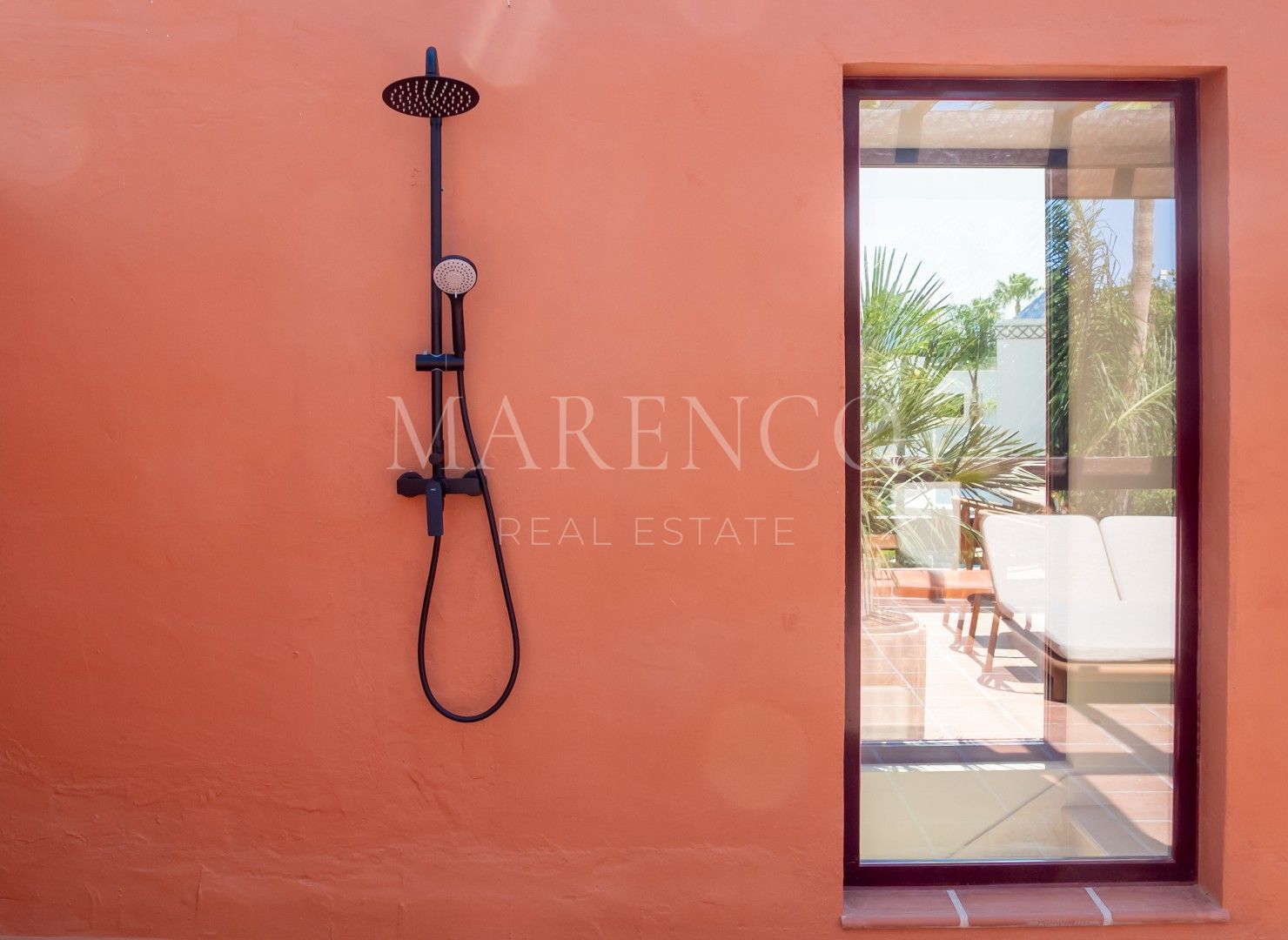 Esta propiedad totalmente reformada se encuentra en la codiciada zona de Altos de Puente Romano, a menos de 20 minutos a pie del reconocido Hotel Puente Romano, la playa y el paseo marítimo que conecta con el centro de Marbella y el famoso Puerto Banús.