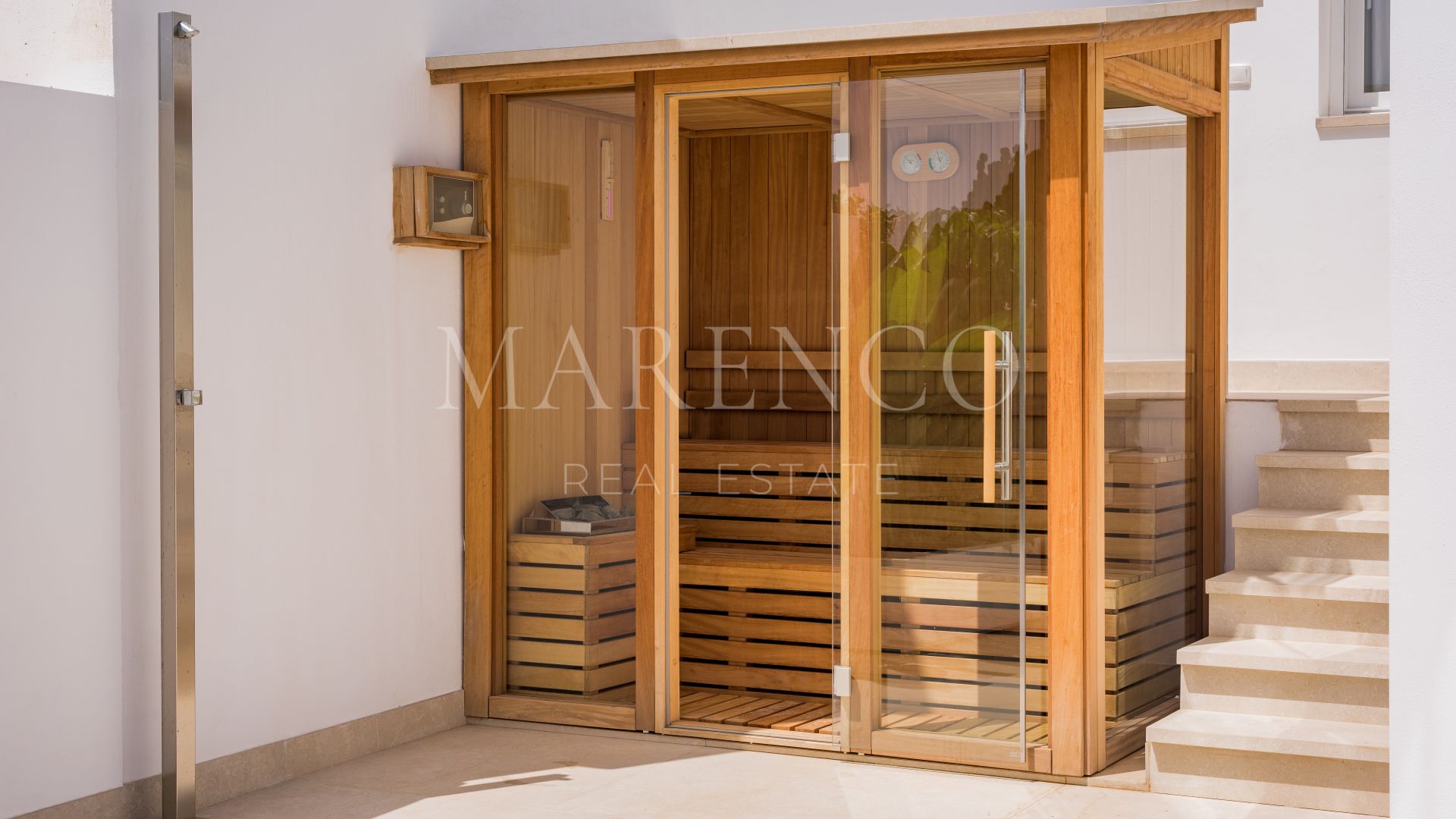 La residencia ha sido completamente reformada, desde ventanas y azulejos hasta cocina y armarios, todo al más alto nivel de calidades. Su zona exterior de aproximadamente 300 metros cuadrados ofrece zona ajardinada con limoneros y naranjos, una gran piscina y una sauna, es el lugar perfecto para relajarse.