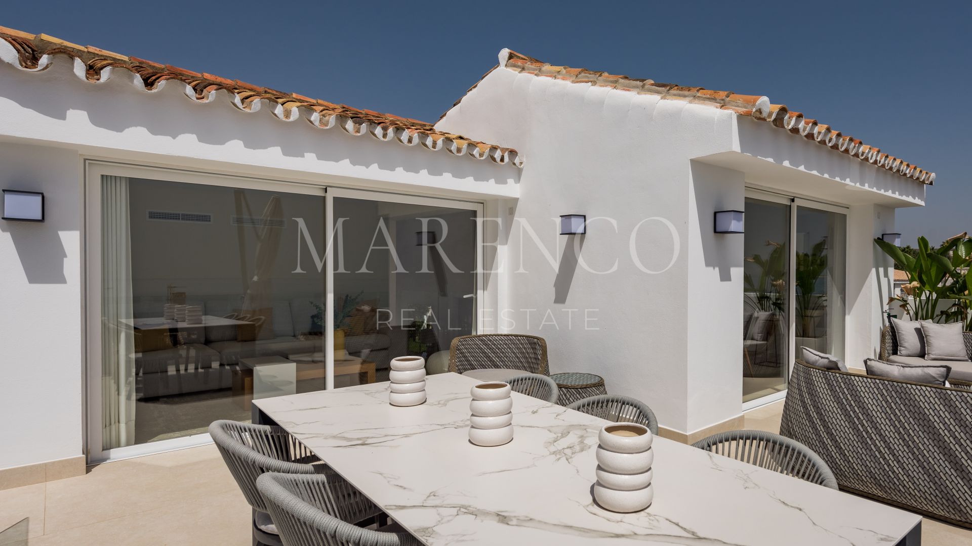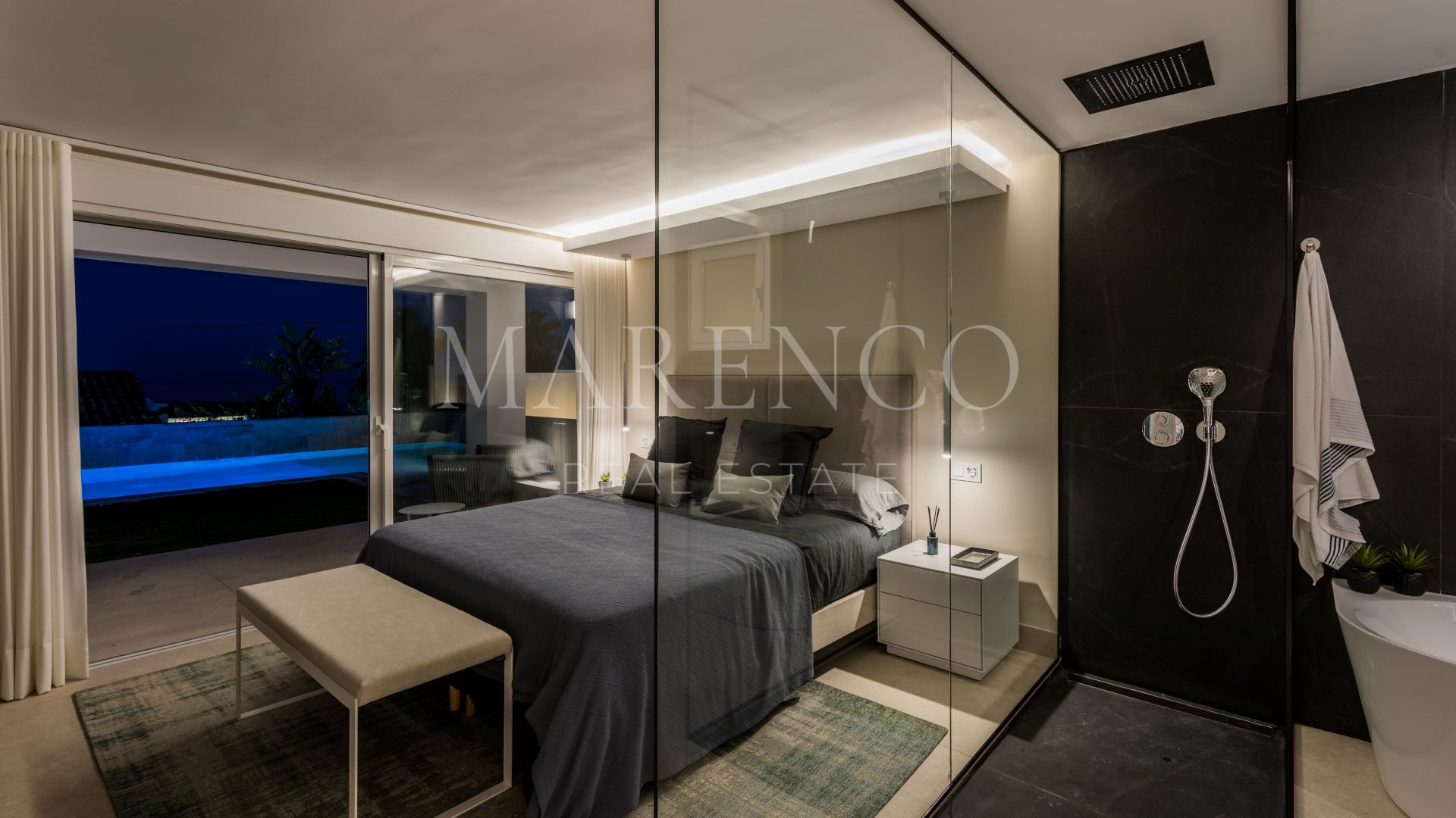 Esta villa está ubicada en Arena Beach, cerca del centro de la ciudad de Estepona. En una zona tranquila y a pocos minutos en coche de campos de golf, tiendas y restaurantes. Su localización es perfecta para los amantes del mar, ya que se encuentra a pocos pasos de una de las playas más bonitas de la región.