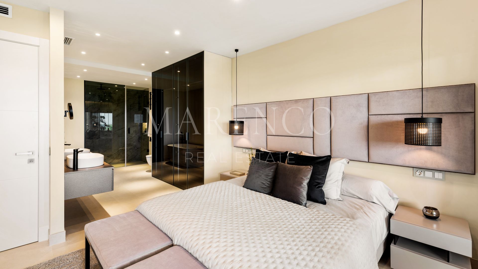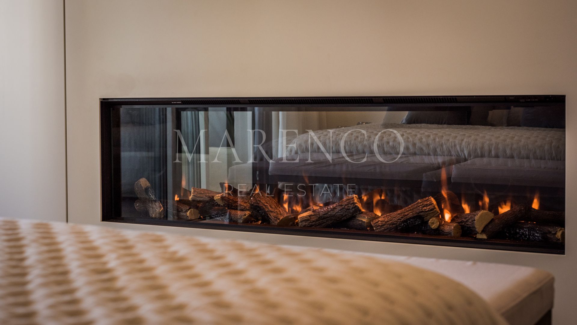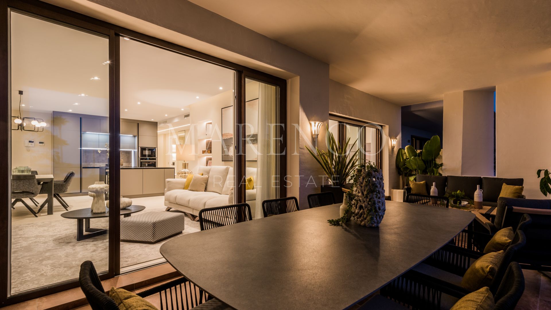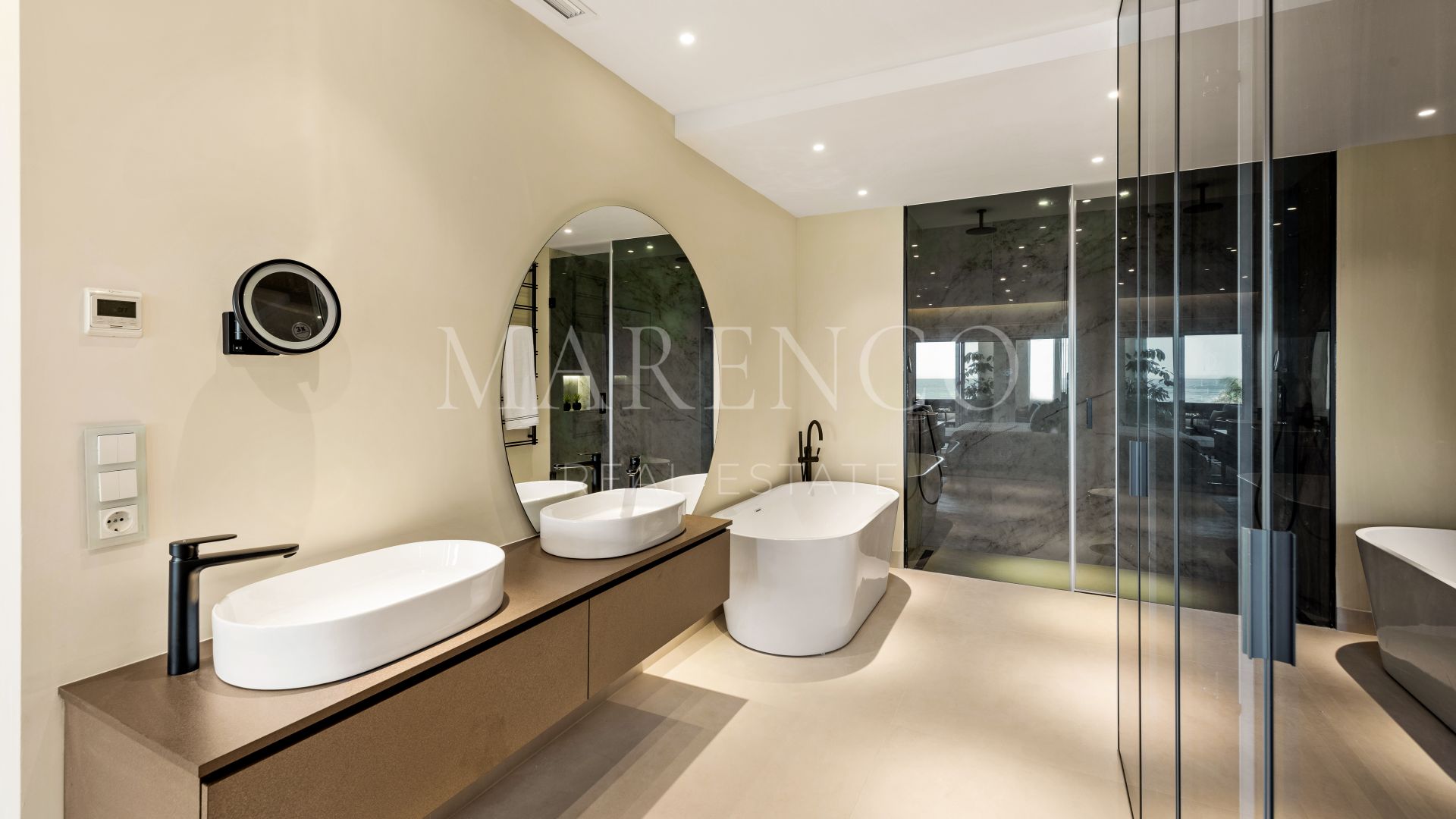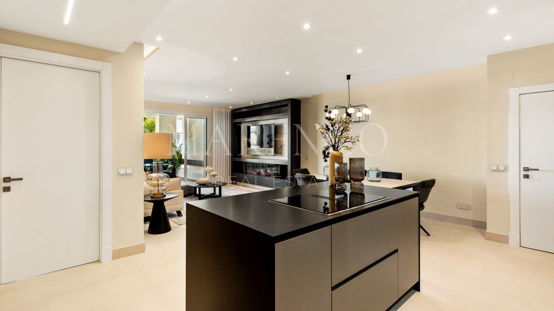 La propiedad tiene un amplio salón con chimenea y salida directa a la terraza con increíbles vistas al mar, al jardín y a la piscina de la comunidad. Además, con zona de comedor y con cocina americana totalmente equipada con los mejores electrodomésticos Neff.