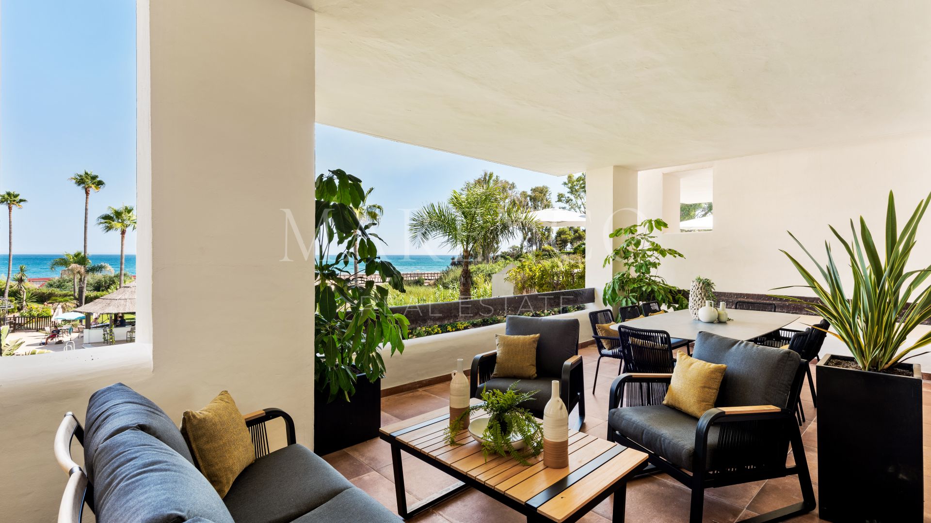 Este encantador apartamento recientemente reformado con las mejores calidades, sus mágicas vistas al mar y su acceso directo a la playa, hacen de esta propiedad un lugar único.