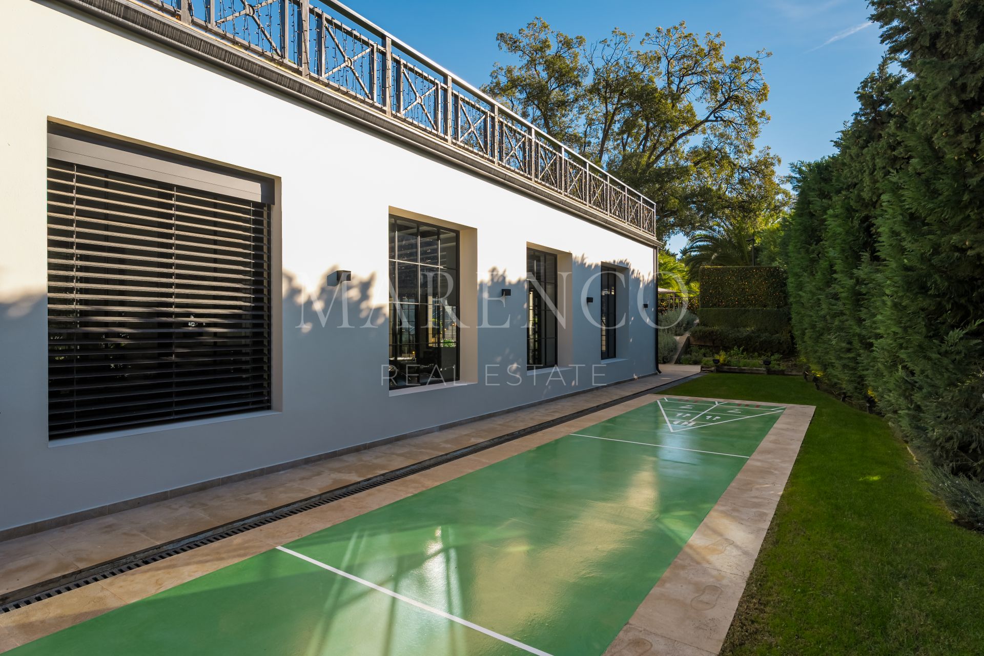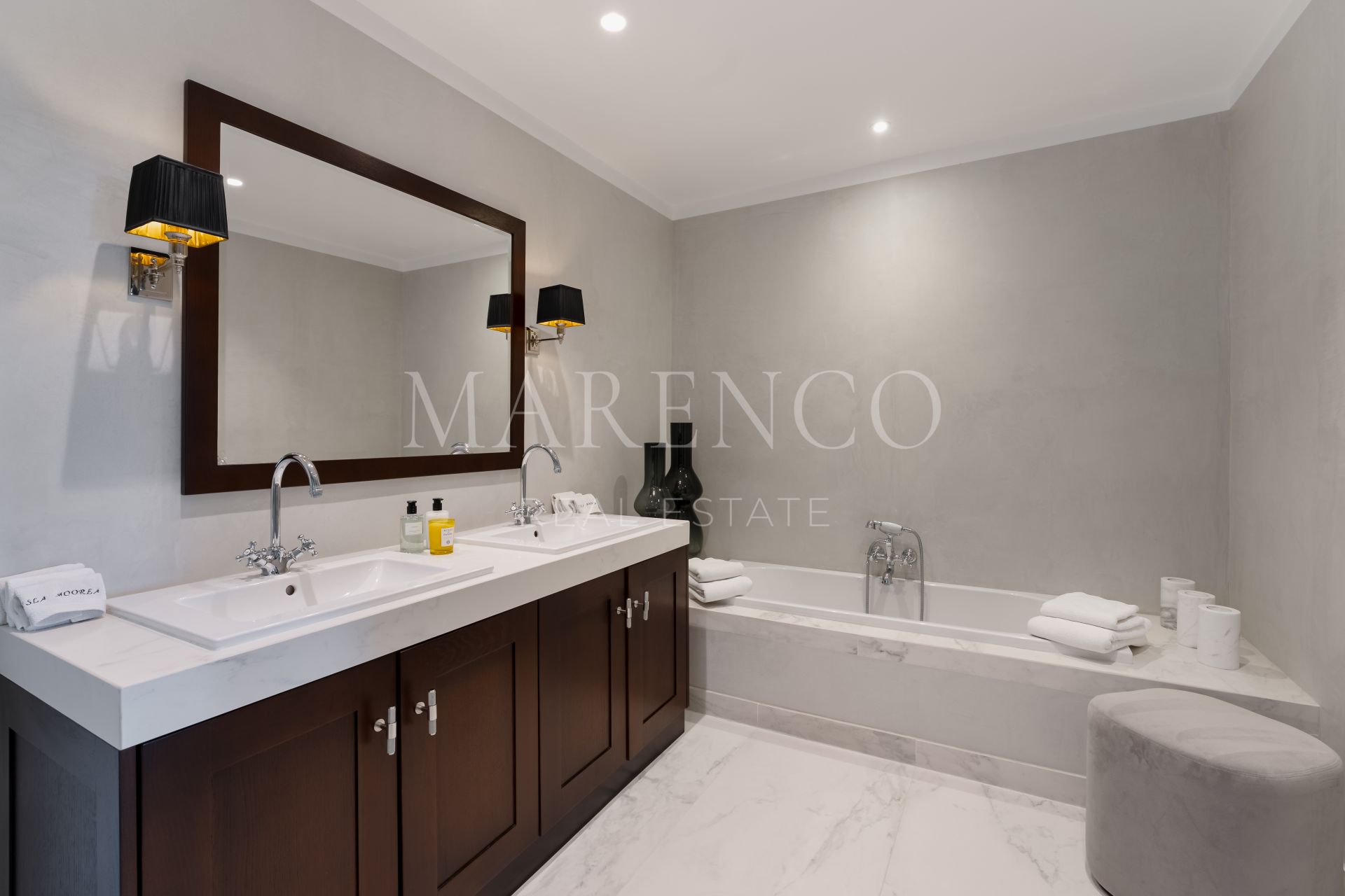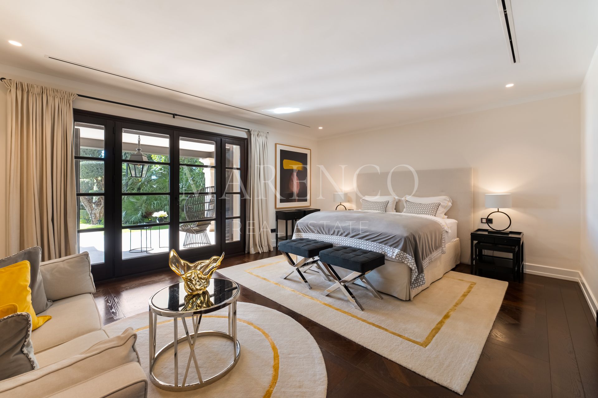 Esta villa ejemplifica el máximo lujo en Marbella, fusionando elegancia atemporal con funcionalidad moderna. Perfecta para familias o quienes buscan un refugio tranquilo, ofrece acceso conveniente a tiendas, escuelas y el vibrante centro de Marbella. Ya sea relajándose en el spa privado o celebrando reuniones en la terraza con impresionantes vistas al mar, esta propiedad ofrece un estilo de vida inigualable.