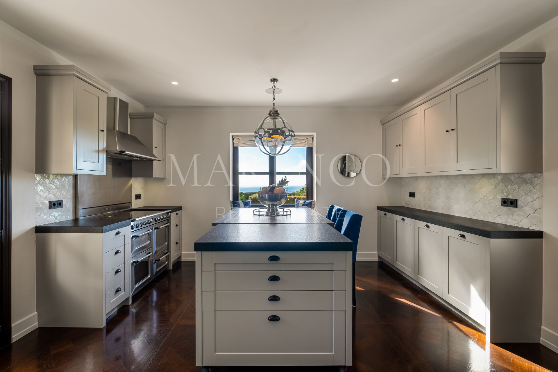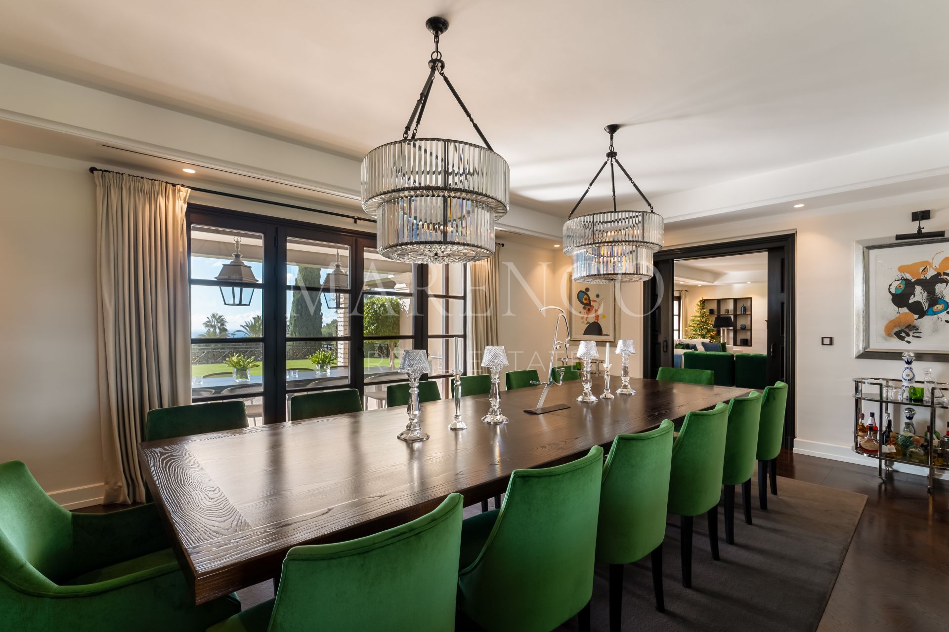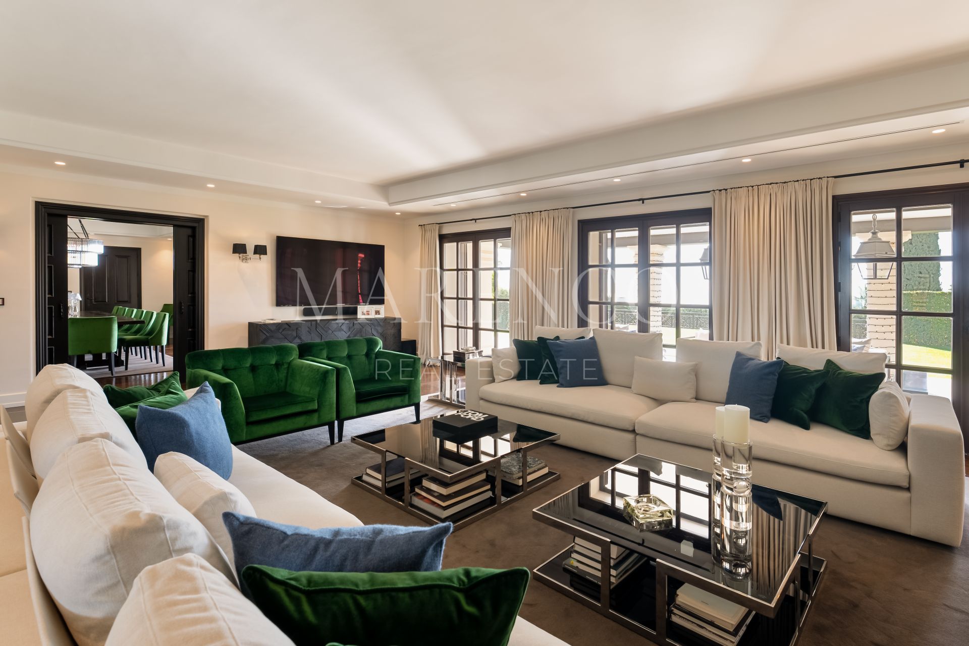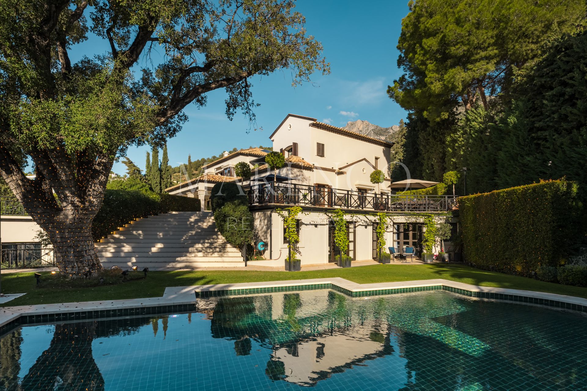 Esta villa de 7 dormitorios está disponible para la venta en la exclusiva zona de Cascada de Camoján, en la Milla de Oro de Marbella. Ubicada en una privilegiada posición en la ladera de la montaña, la propiedad ofrece impresionantes vistas panorámicas al mar, jardines exuberantes y montañas circundantes. Reconocida por su tranquilidad, seguridad y proximidad a servicios de primer nivel, este prestigioso vecindario es una de las áreas más codiciadas de Marbella.