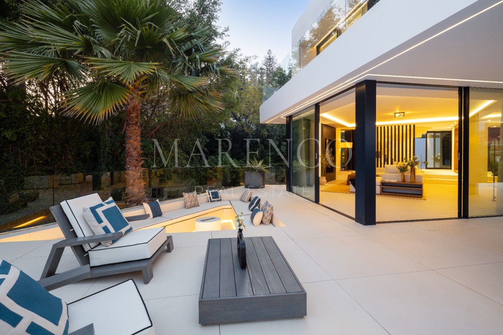 Diseñada por el renombrado arquitecto Antonio Morillo, de AMES Architects, y completamente renovada en 2020 por Palmeras, esta propiedad representa a la perfección el lujo moderno. La villa se distribuye en tres niveles, con una superficie construida total de 555 m² y amplias terrazas de 530 m², todo ello en una parcela de 1.941 m².