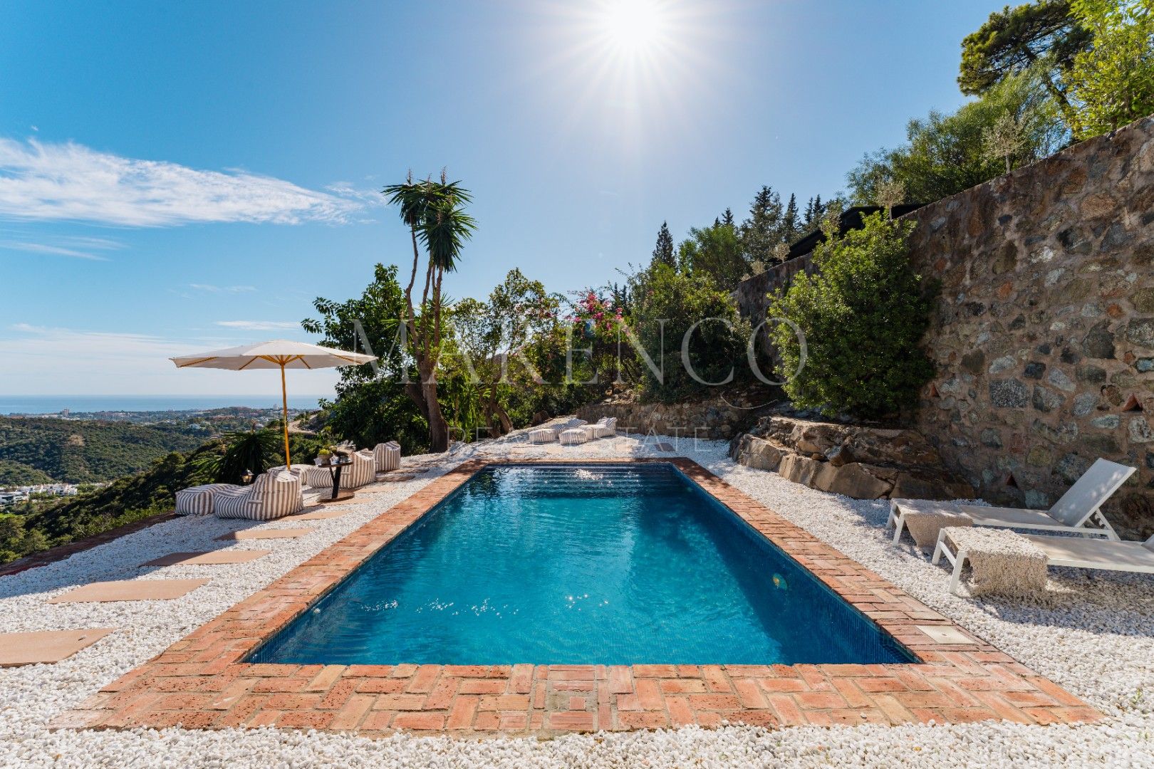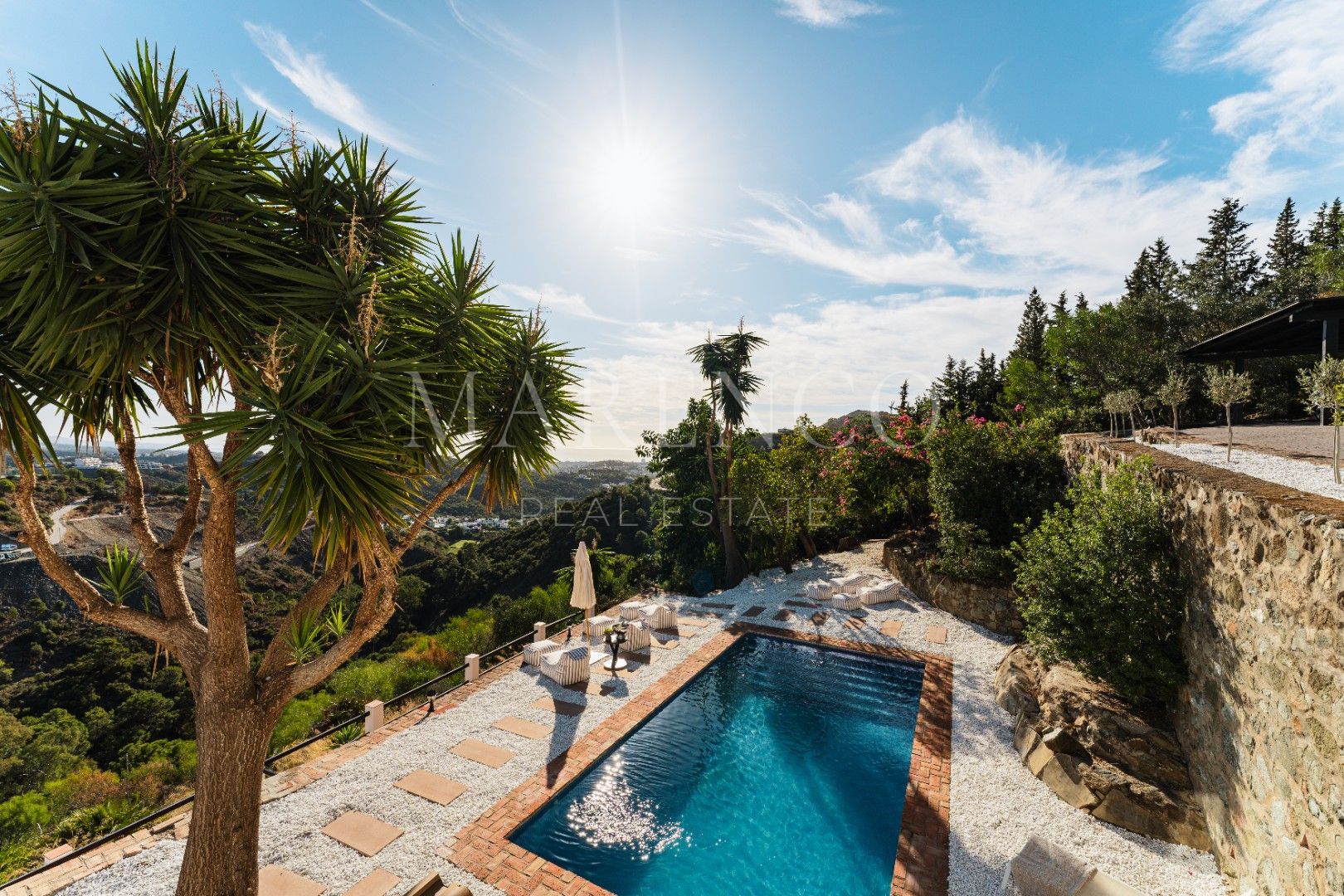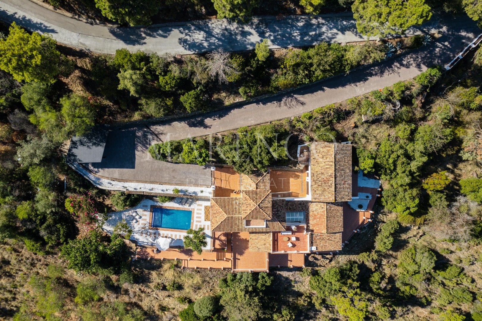 En lo alto de la codiciada comunidad privada de El Madroñal, esta impresionante villa andaluza en El Madroñal se alza entre montes de pinos y cielos abiertos, ofreciendo un paisaje sereno que se funde con el Mediterráneo en la distancia. Cada amanecer ilumina sus terrazas y jardines naturales, mientras que las vistas panorámicas del mar y las montañas envuelven la propiedad en una sensación de privacidad, amplitud y belleza que invita a imaginar una vida en calma, sofisticada y conectada con la naturaleza.