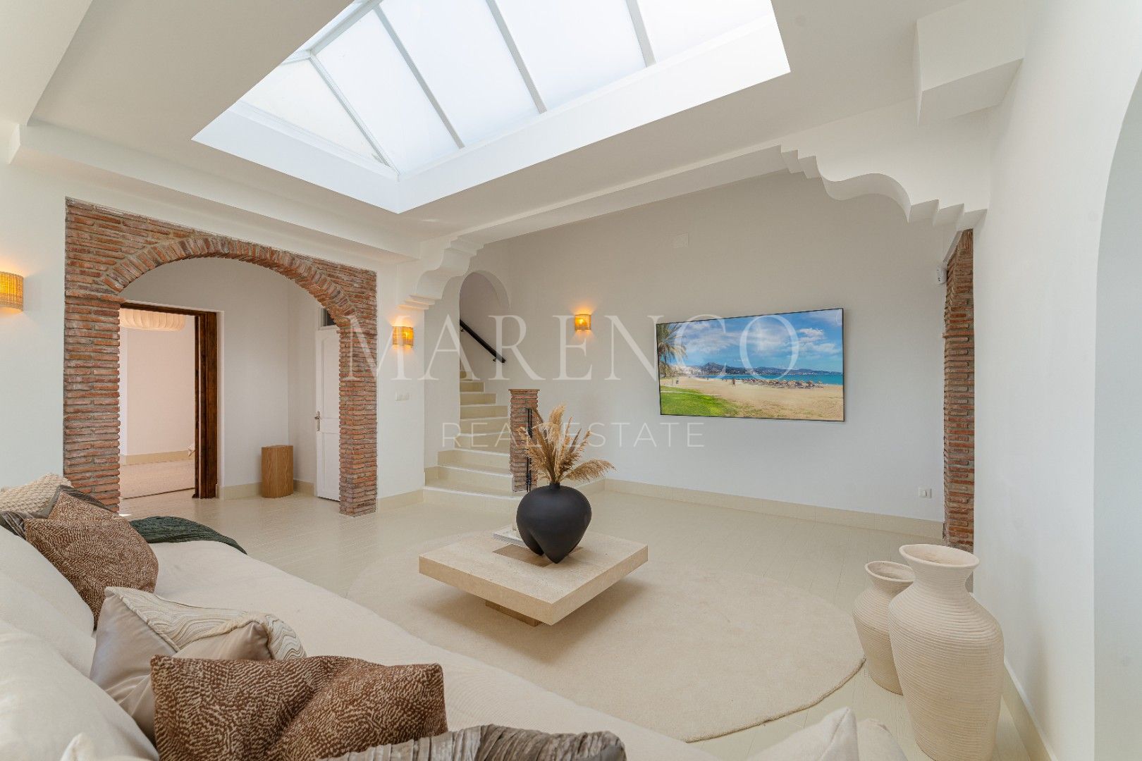 Con 531 m² construidos sobre una amplia parcela elevada de 4.795 m², esta villa de seis dormitorios y cinco baños combina la calidez del estilo andaluz con detalles contemporáneos cuidadosamente actualizados