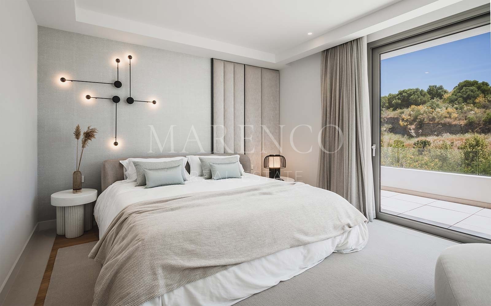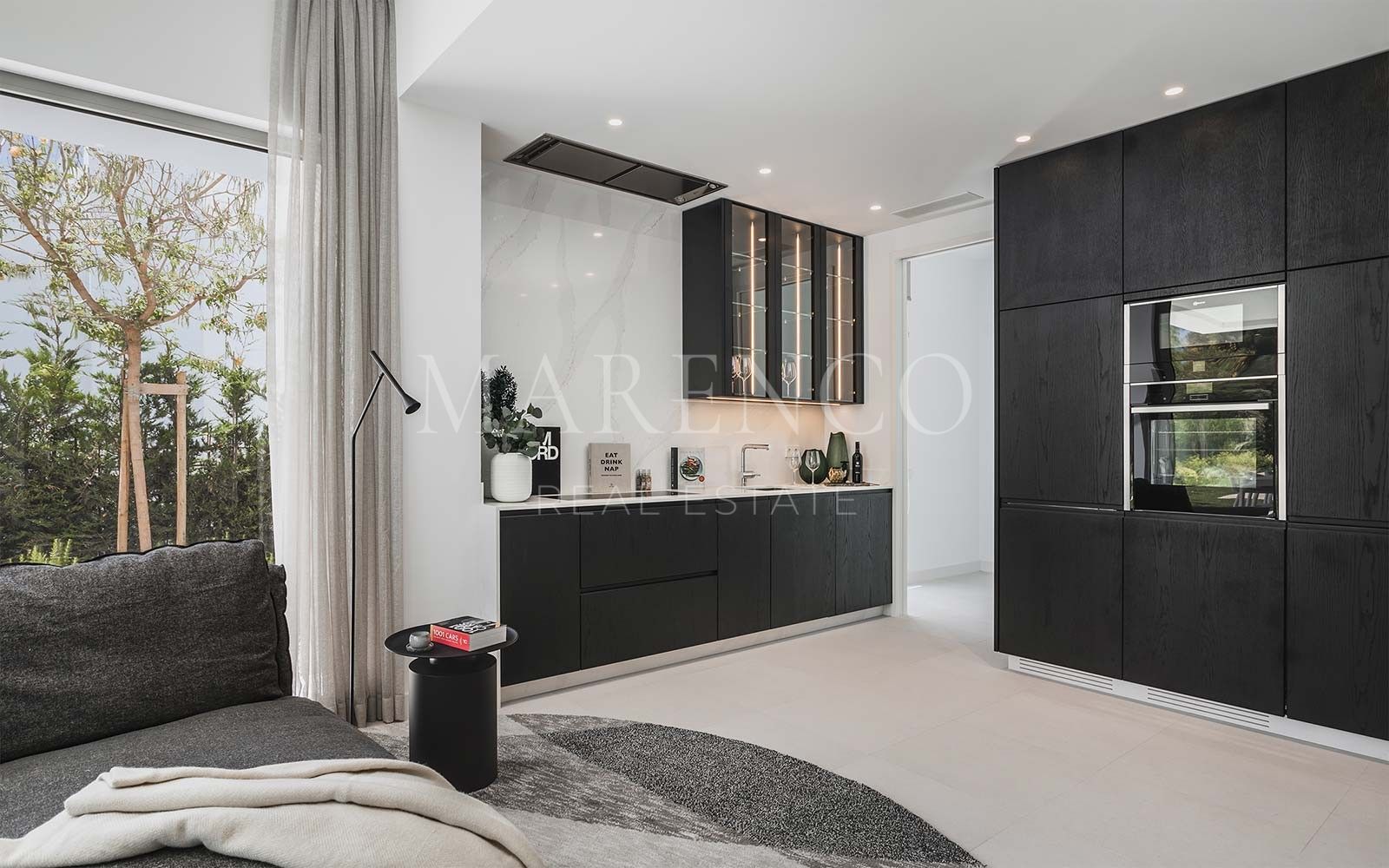 Distribuida en tres niveles y orientada al sureste para aprovechar al máximo la luz natural, la villa ofrece espacios amplios y cuidadosamente diseñados. La planta principal cuenta con un elegante salón y comedor de concepto abierto que conecta de manera fluida con una cocina alemana de alta gama. Grandes ventanales permiten una transición natural hacia el jardín privado y la piscina, creando un ambiente perfecto para disfrutar del clima de la Costa del Sol durante todo el año. Los dormitorios, todos con baño en suite, están diseñados para ofrecer confort y privacidad, e incorporan suelos de madera, persianas eléctricas y calefacción por suelo radiante.
