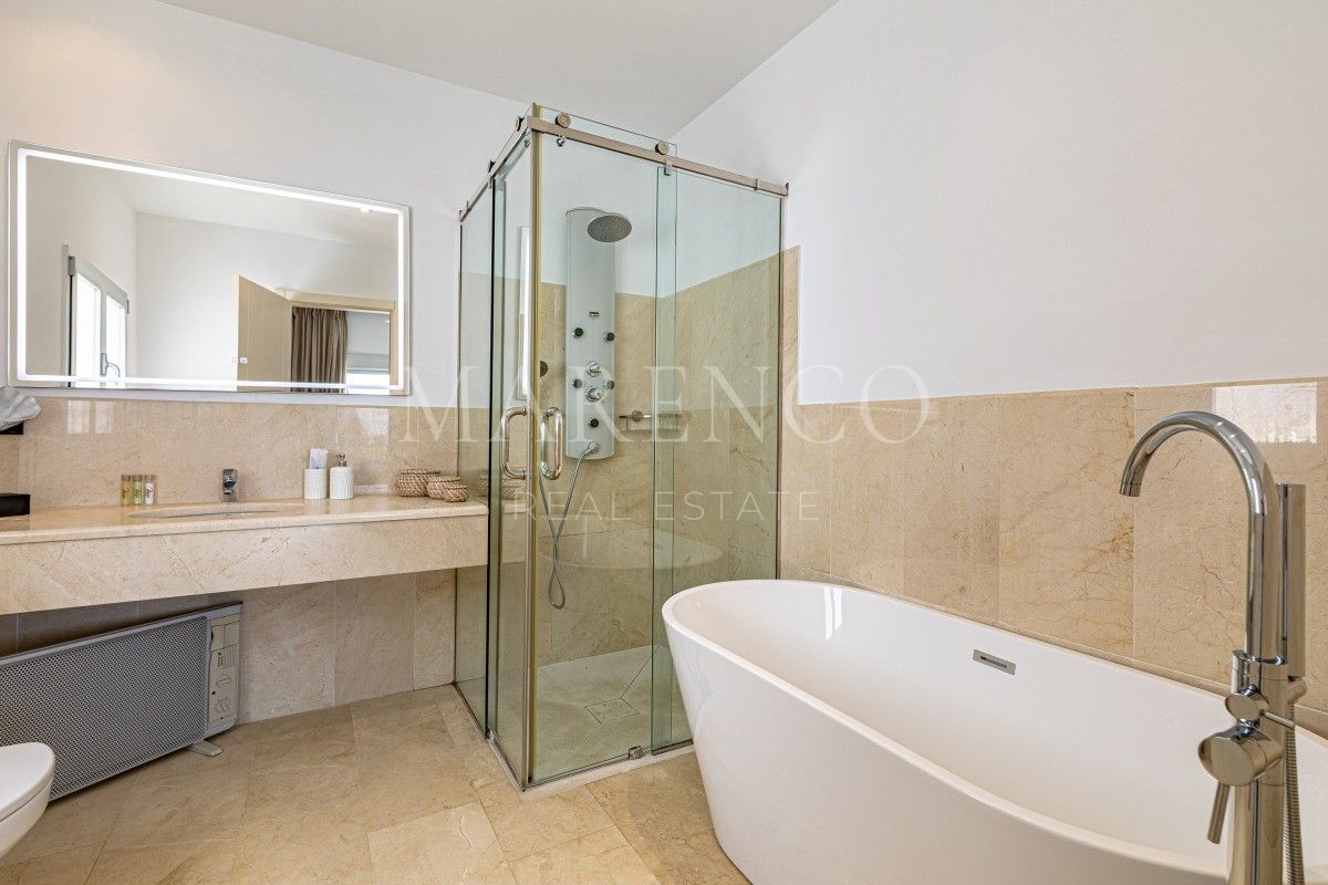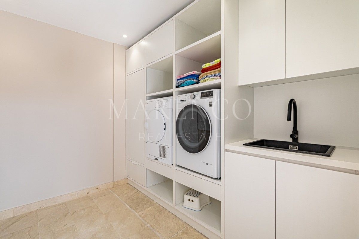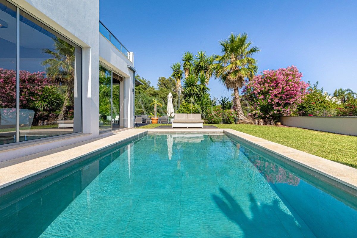Desde el primer paso, esta impresionante villa en Marbella East transmite la sensación de estar entrando en un refugio de paz y luz. Sus líneas arquitectónicas contemporáneas, el jardín maduro que la envuelve y la belleza de su piscina privada crean un ambiente donde el tiempo parece ralentizarse. Imagina despertar con el sol filtrándose por los amplios ventanales, sentir la brisa del mar y disfrutar de un desayuno al aire libre rodeado de vegetación mediterránea: cada día aquí se vive con una serenidad excepcional.