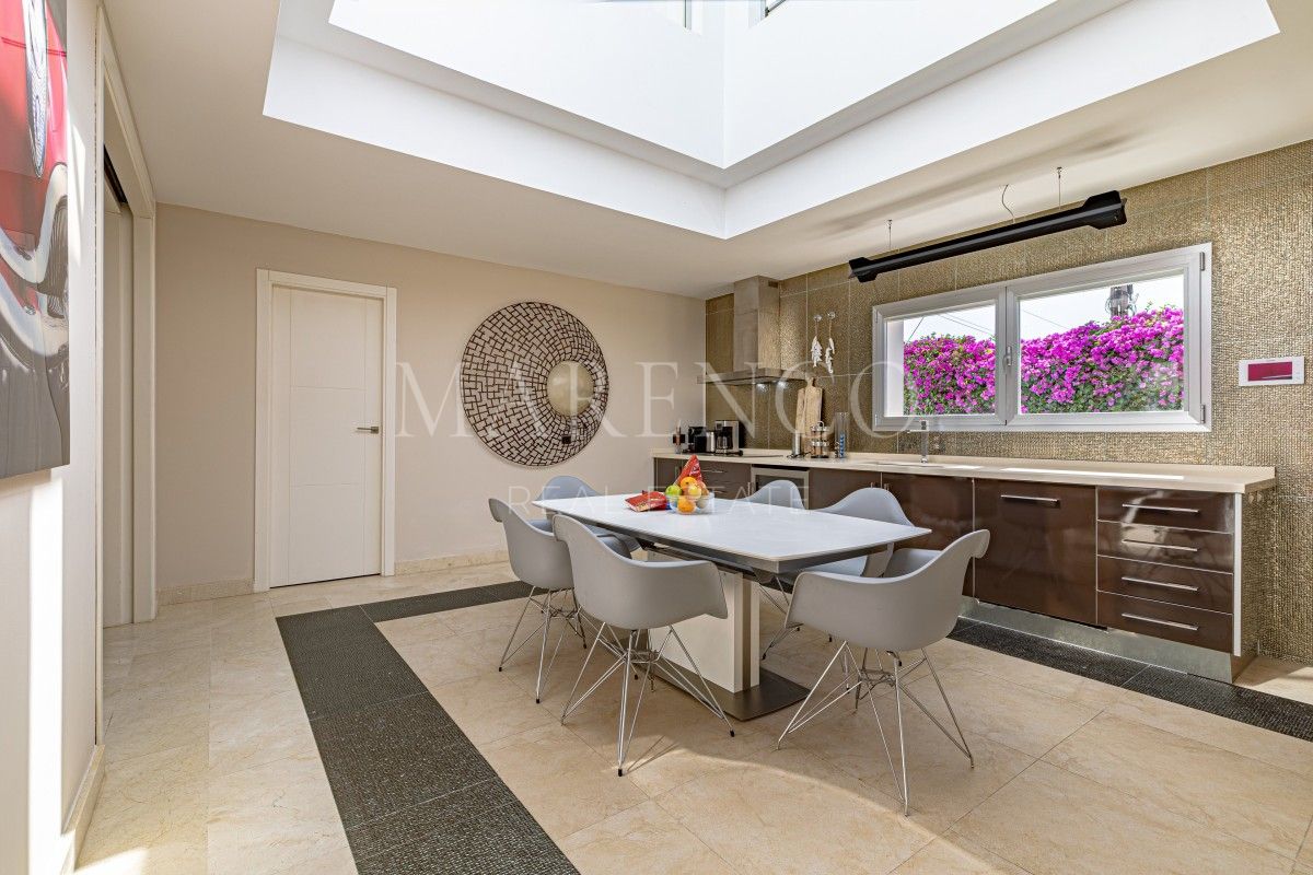 La villa se ubica dentro de una urbanización cerrada en El Rosario, una de las zonas más tranquilas y prestigiosas de Marbella East, disfrutando de total privacidad y un ambiente natural incomparable.